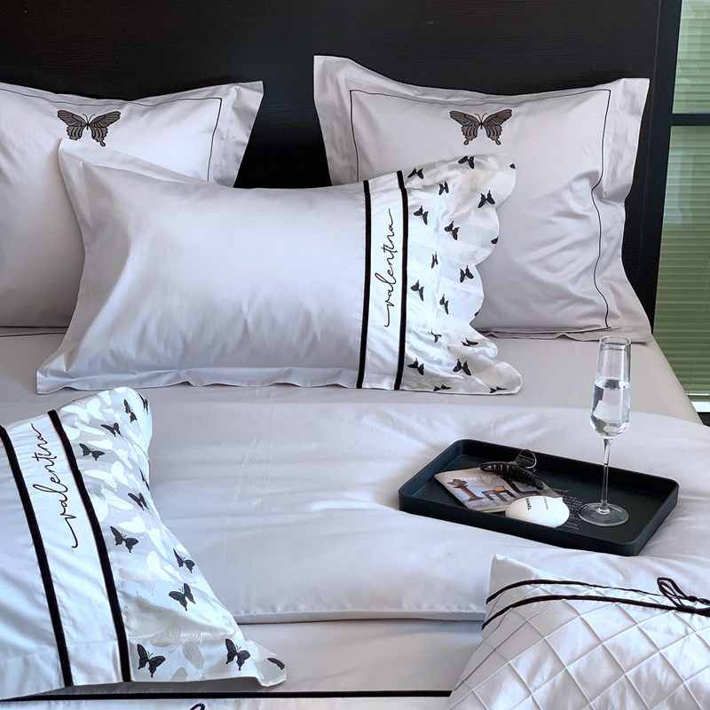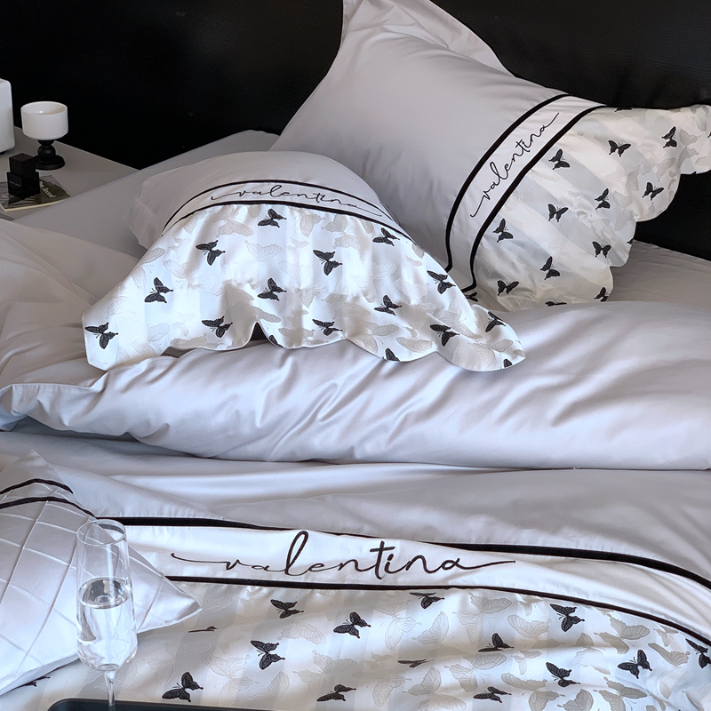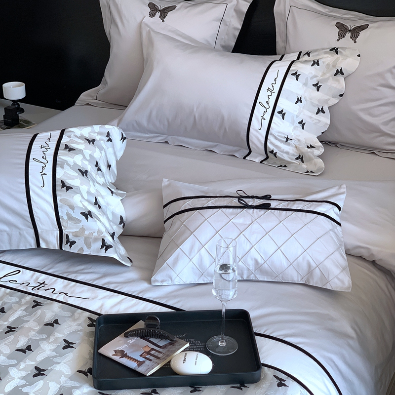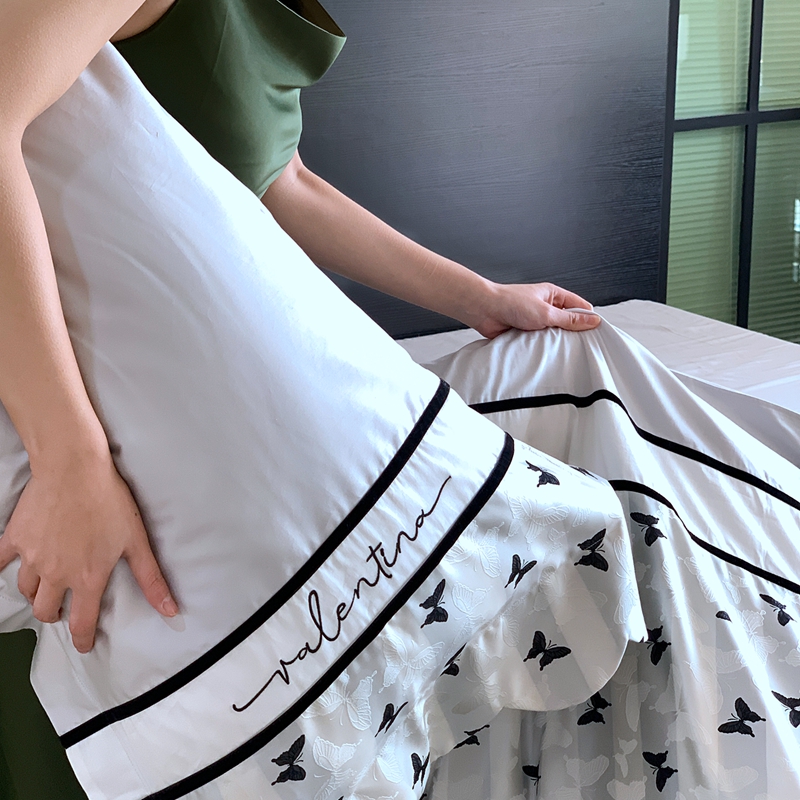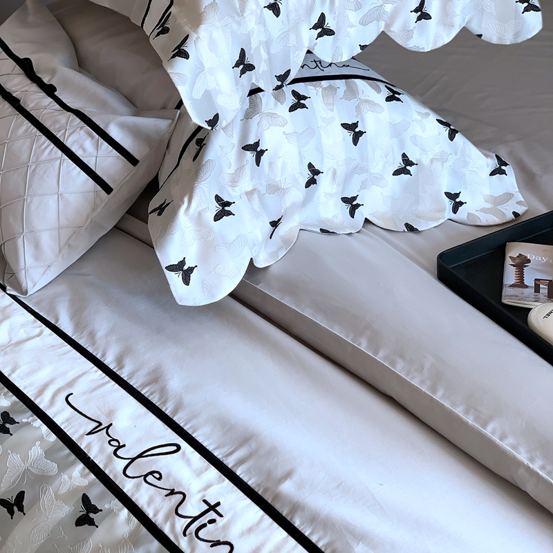 (总)涞澳家纺 2026新款全棉纯棉水洗棉纯色花边款四件套-珠若,珠若-米白,珠若-浅灰,珠若-浅绿,珠若-浅玉