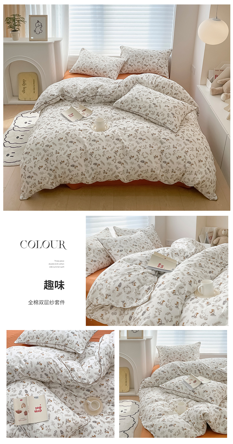 蜜柚 2024新款直播款全棉A类有氧双层纱印花四件套 趣味