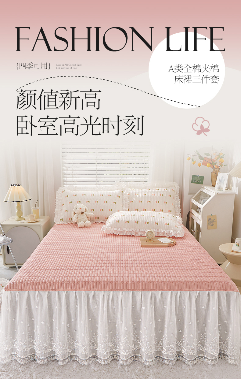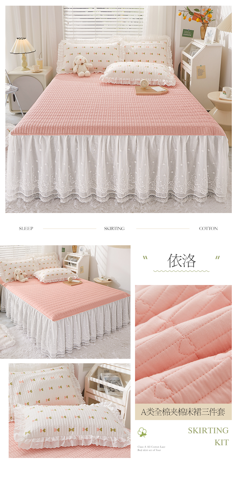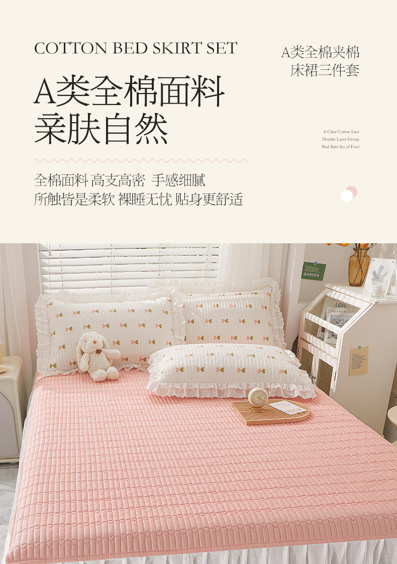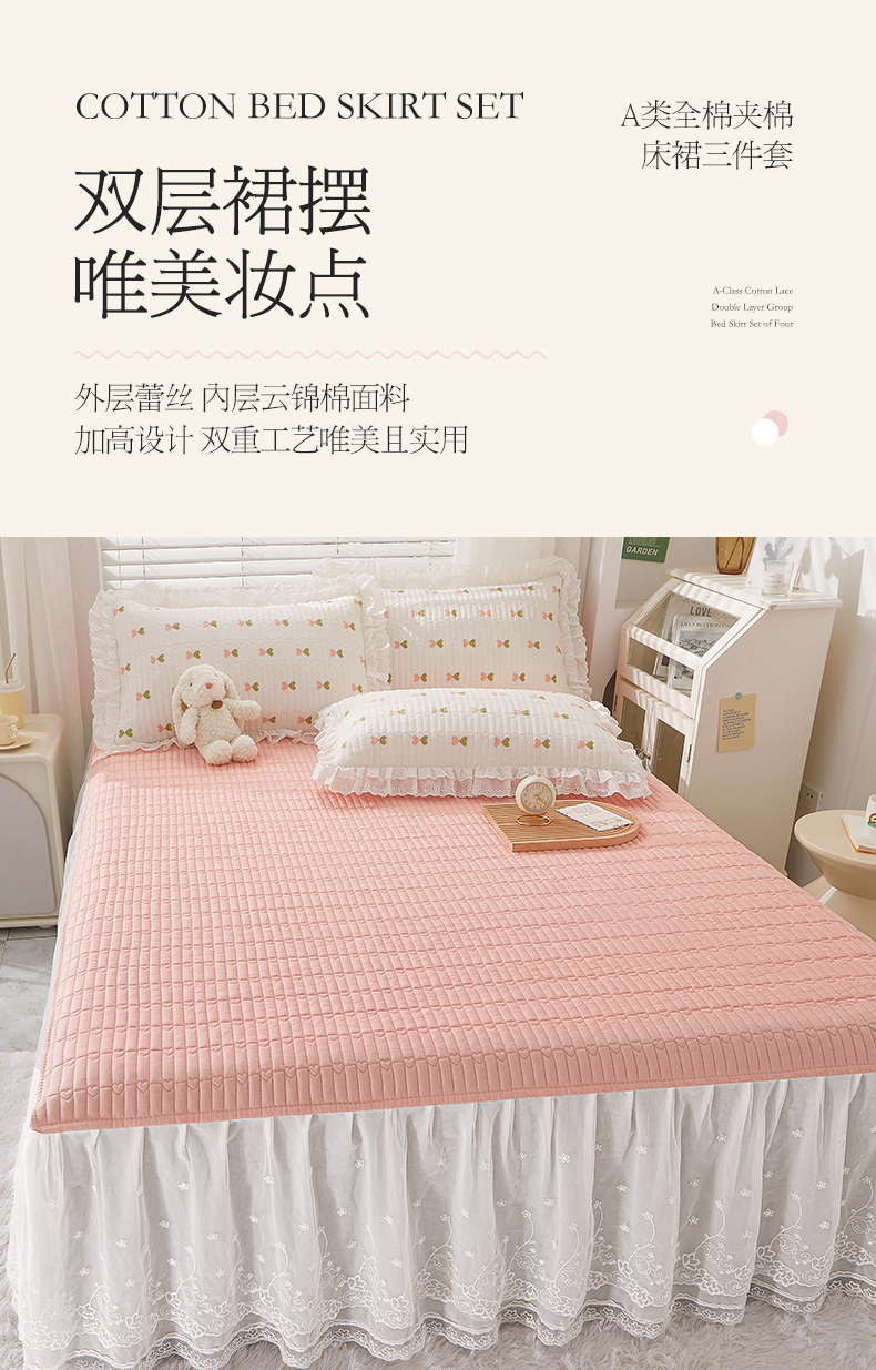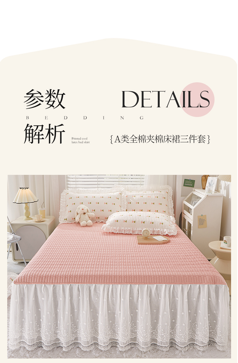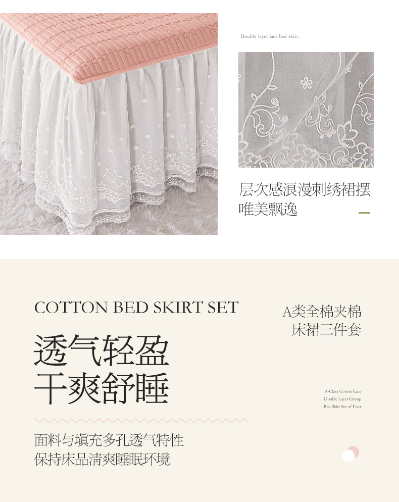 商品名称:宜凡家纺2023新款A类全棉夹棉床裙三件套 伊洛