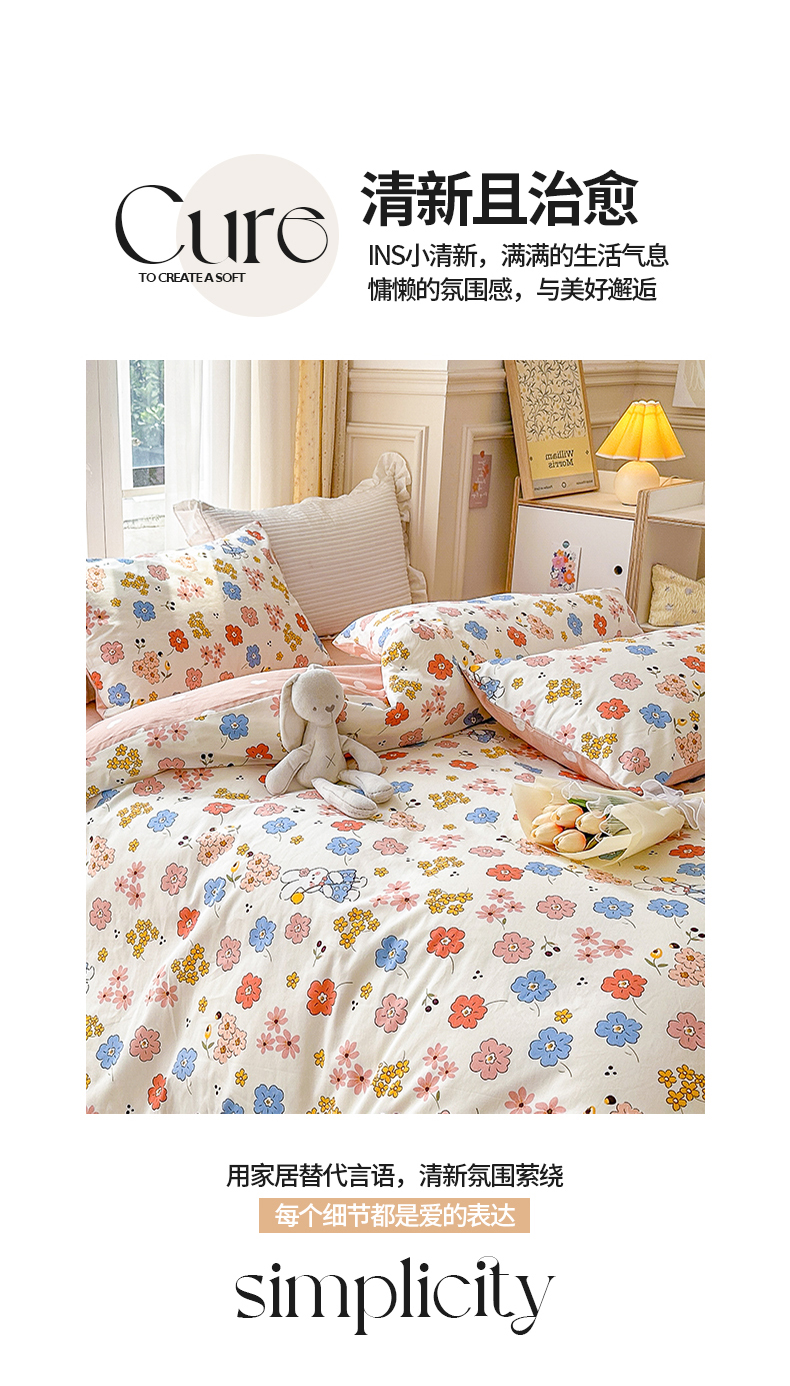 商品名称:清雅福 2023新款春夏13372小清新系列床上四件套 花仙兔