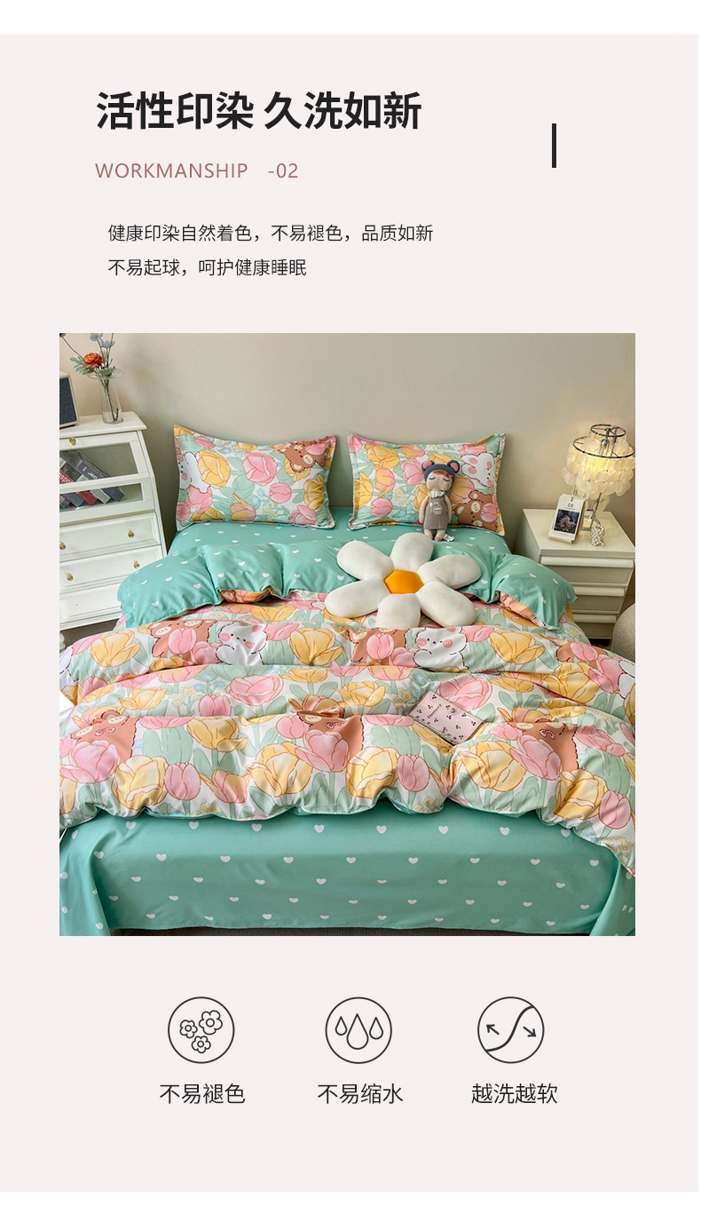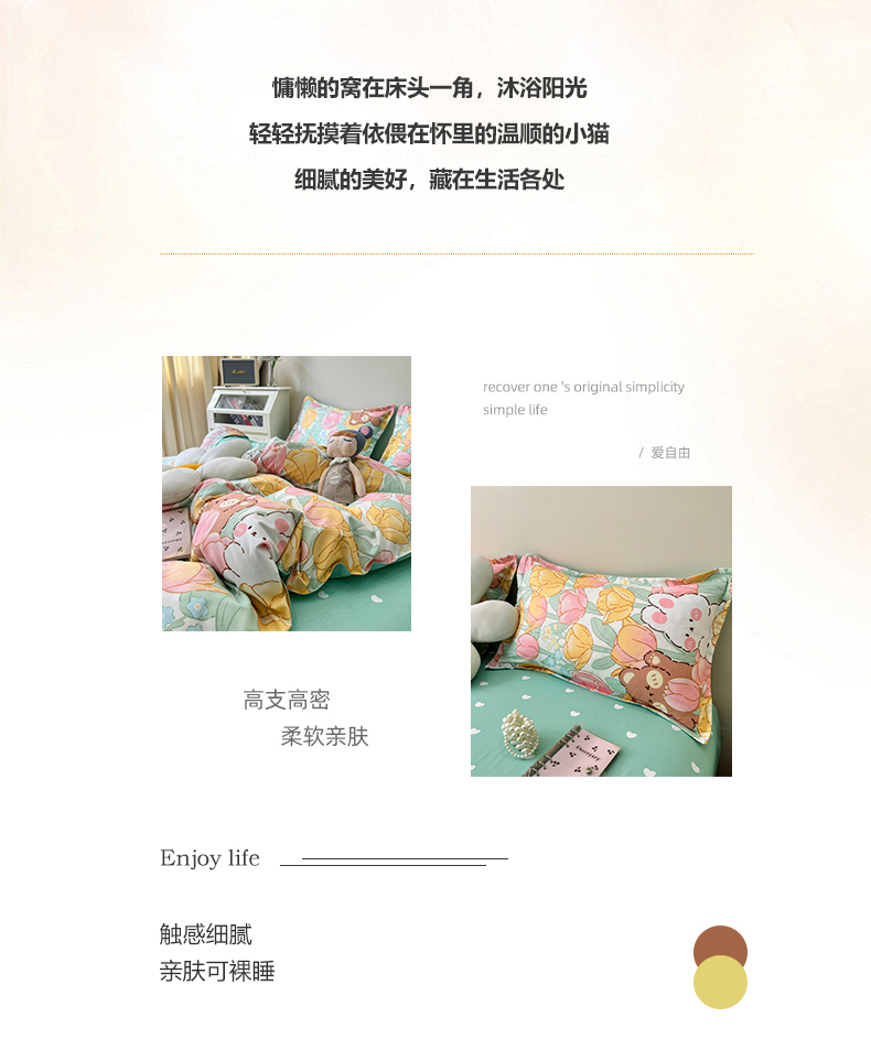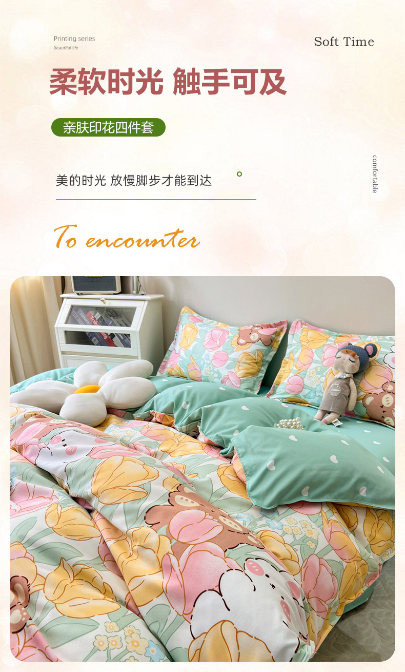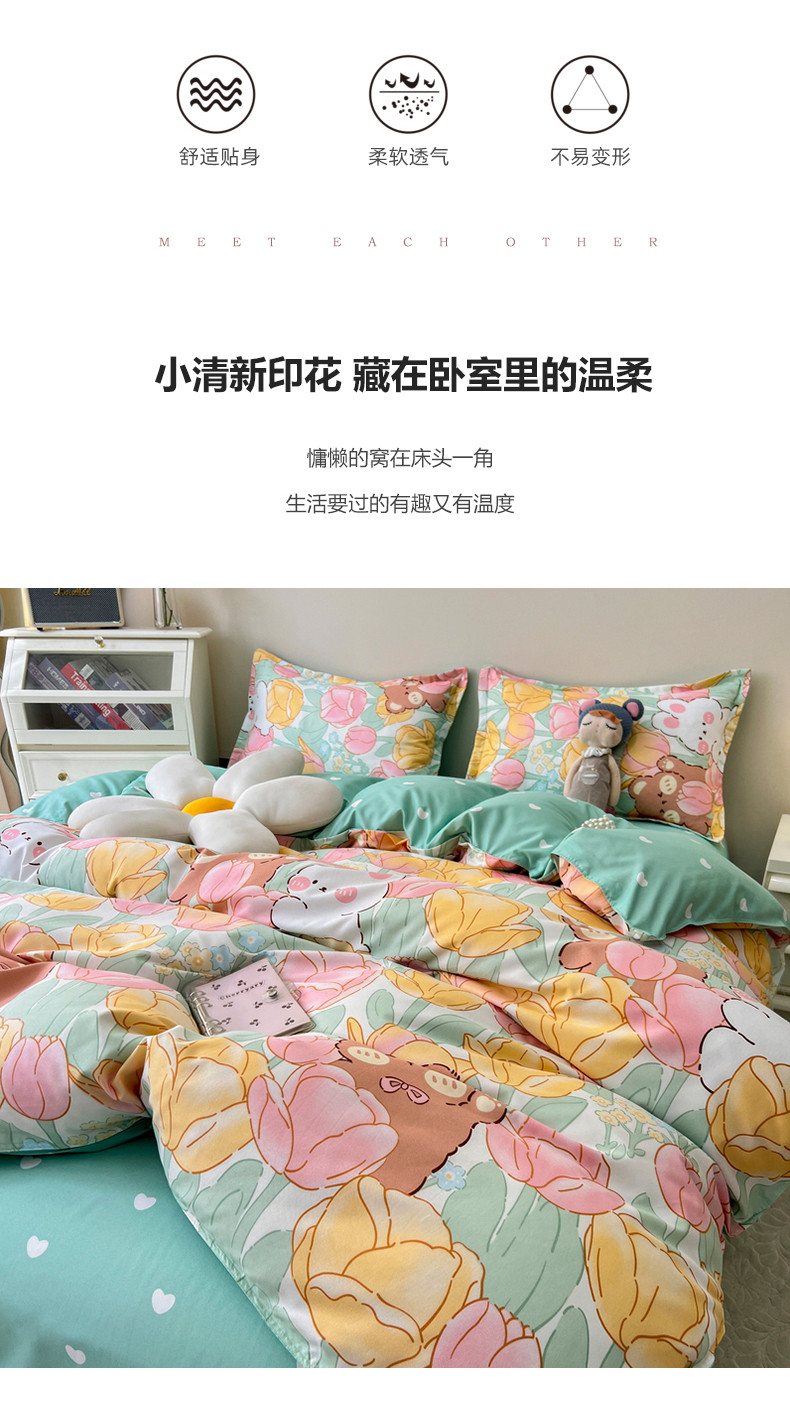 商品名称:宏源家纺 2023新款芦荟棉亲肤四件套 小伙伴