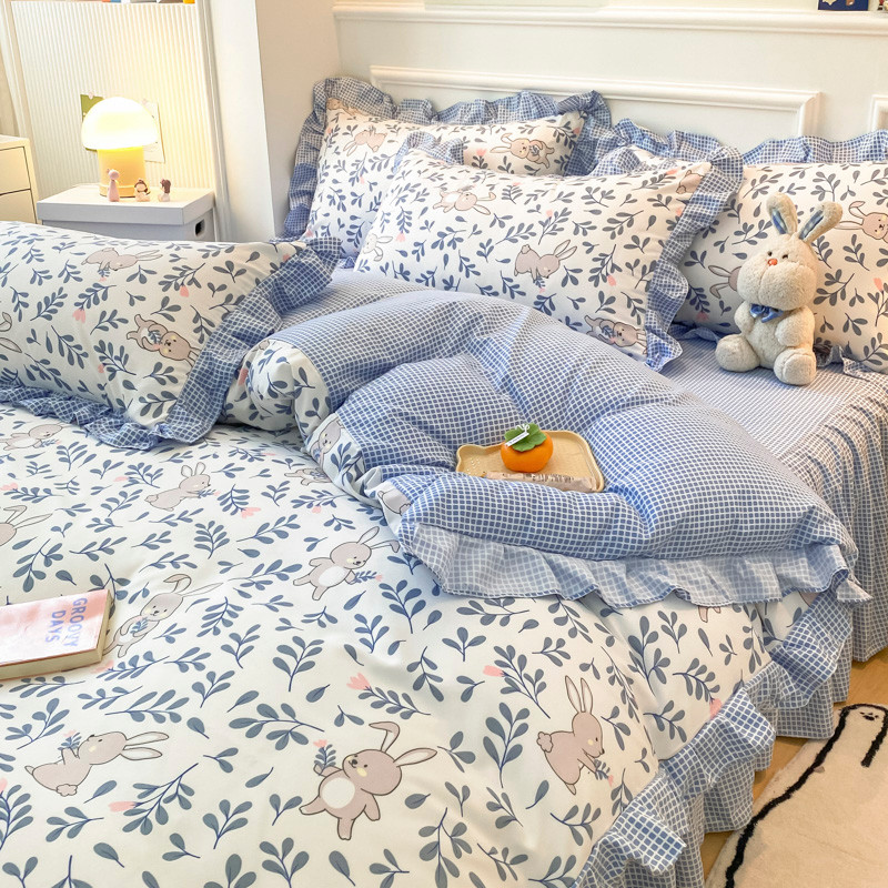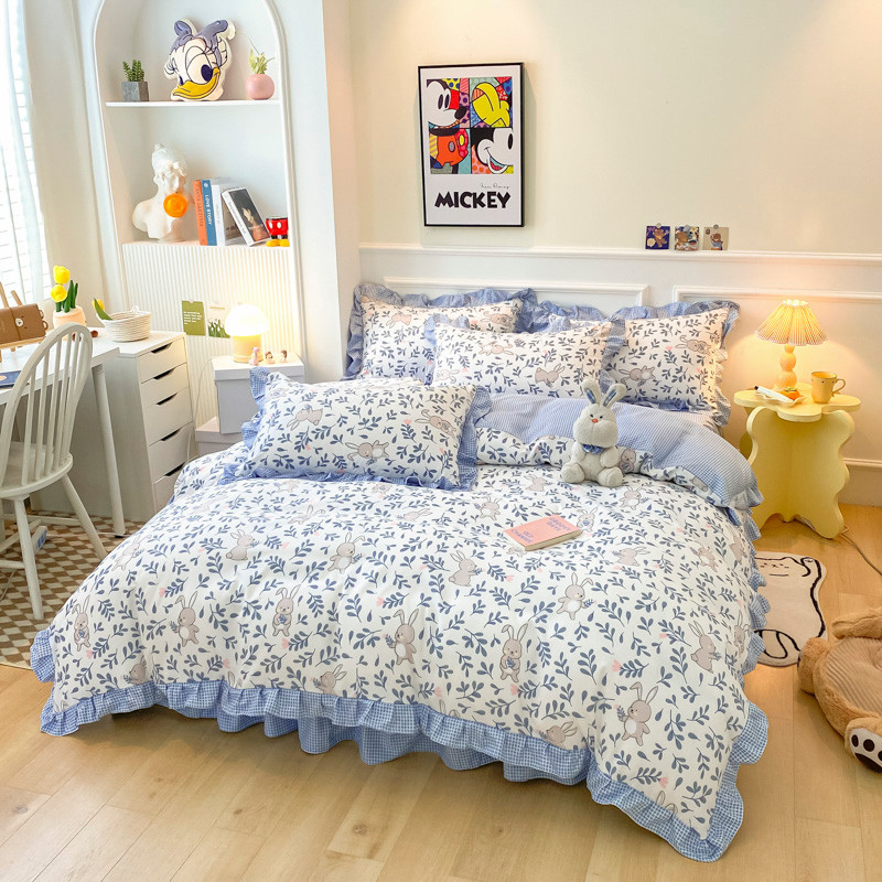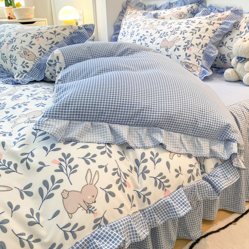 当前位置: 91家纺网 > 商品网购 > 床品套件 > 四件套 > 普通磨毛四件套 > 艾橙家纺 2023新款小清新韩版磨毛花边四件套 菲菲兔