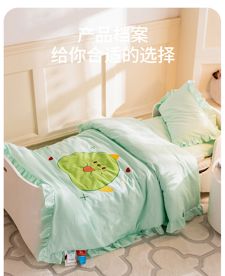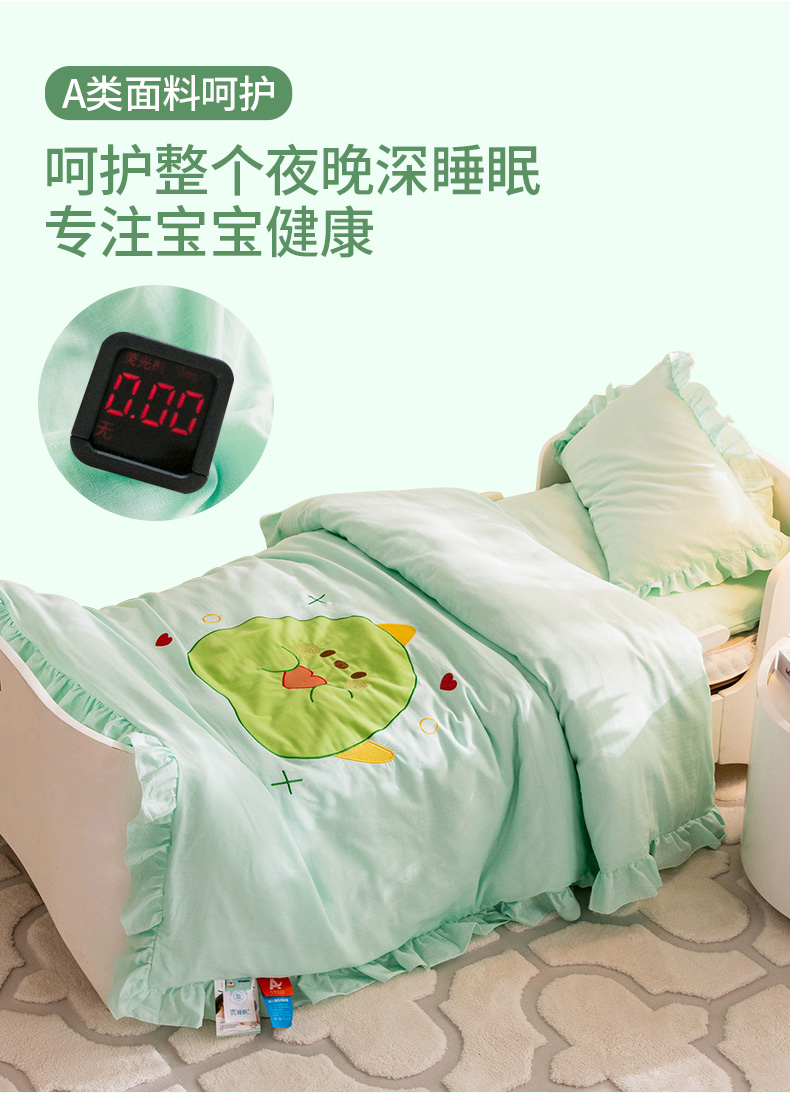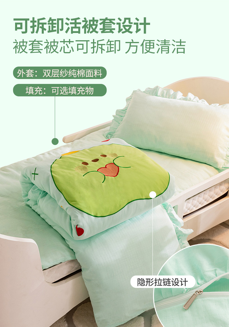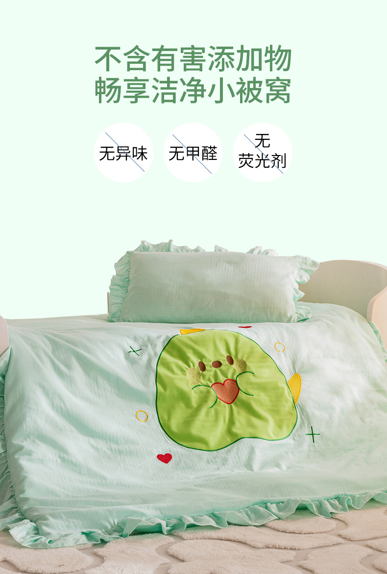 当前位置: 91家纺网 > 商品网购 > 床品套件 > 三件套 > 喜多兔 2023新款纯棉双层纱绣花幼儿园三件套 绿色Q恐龙