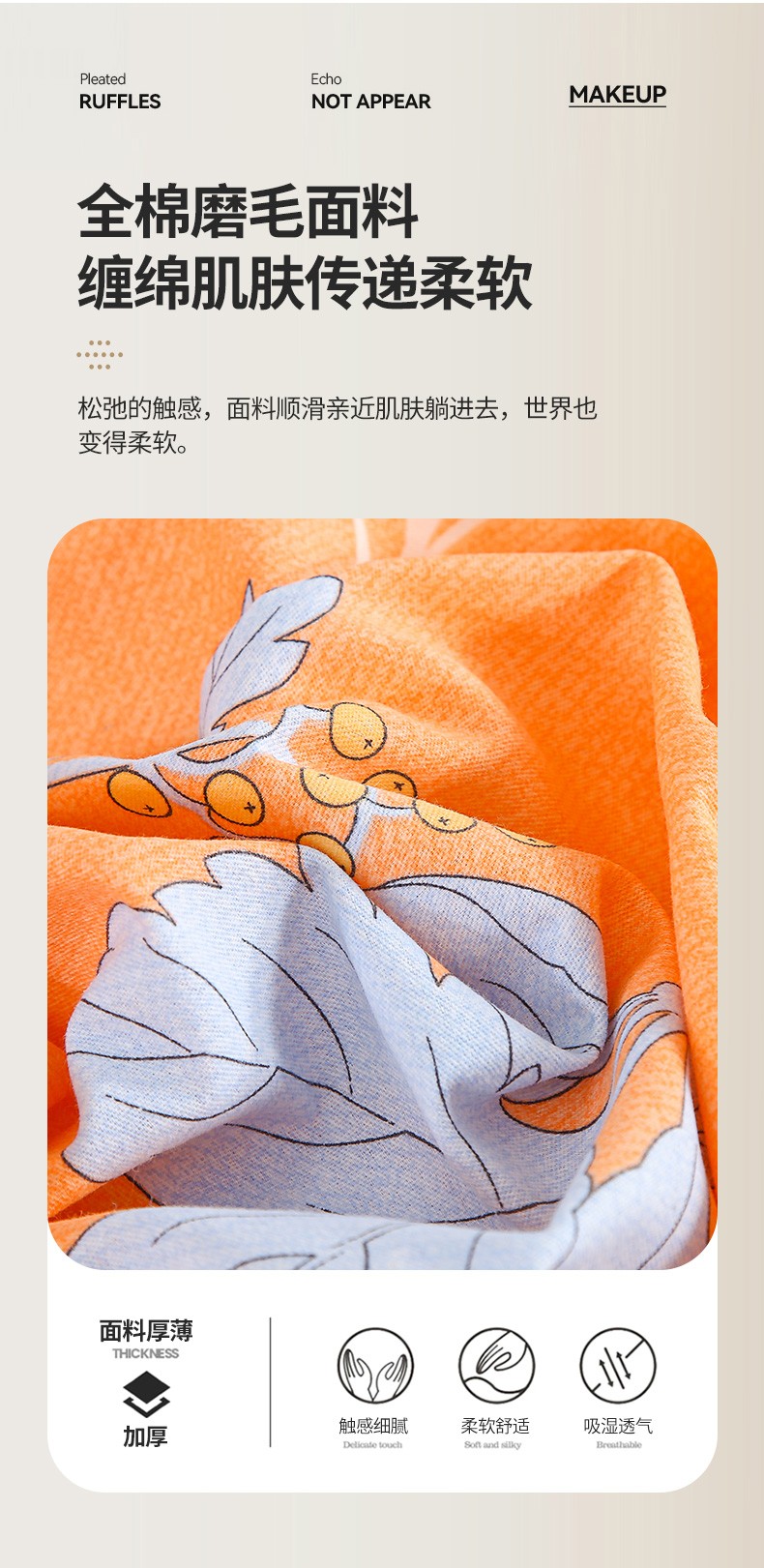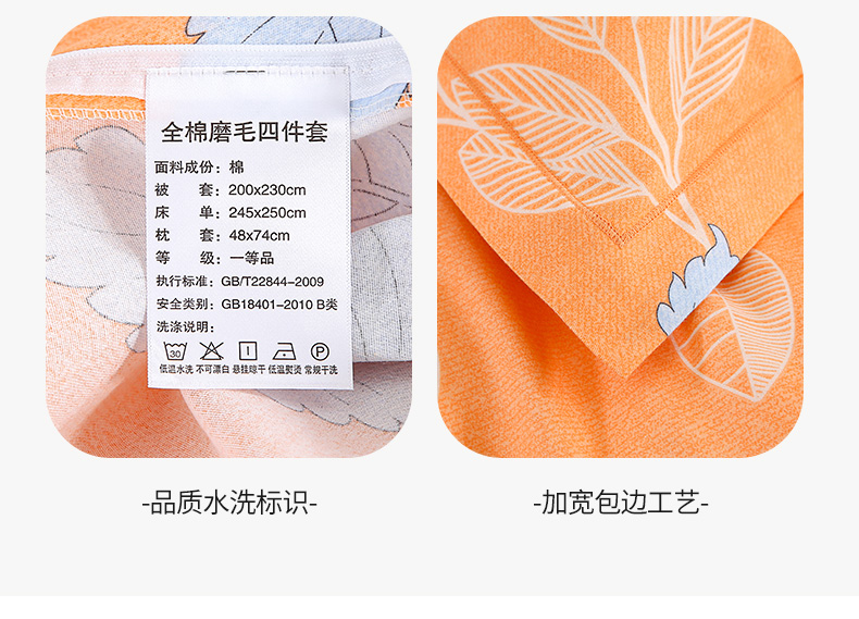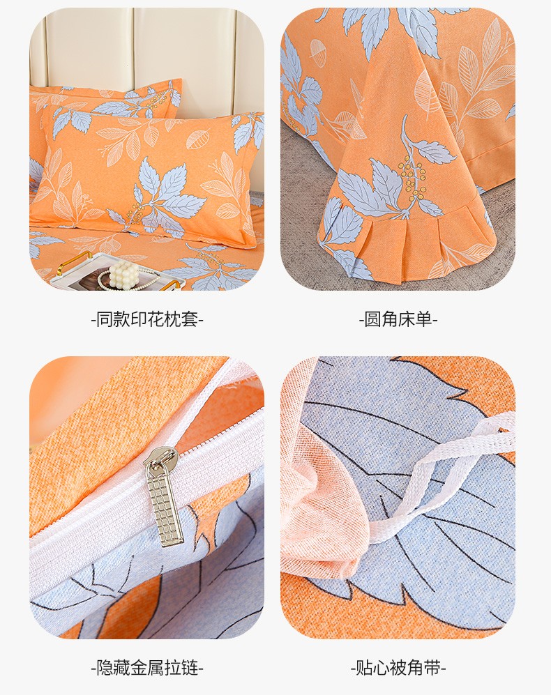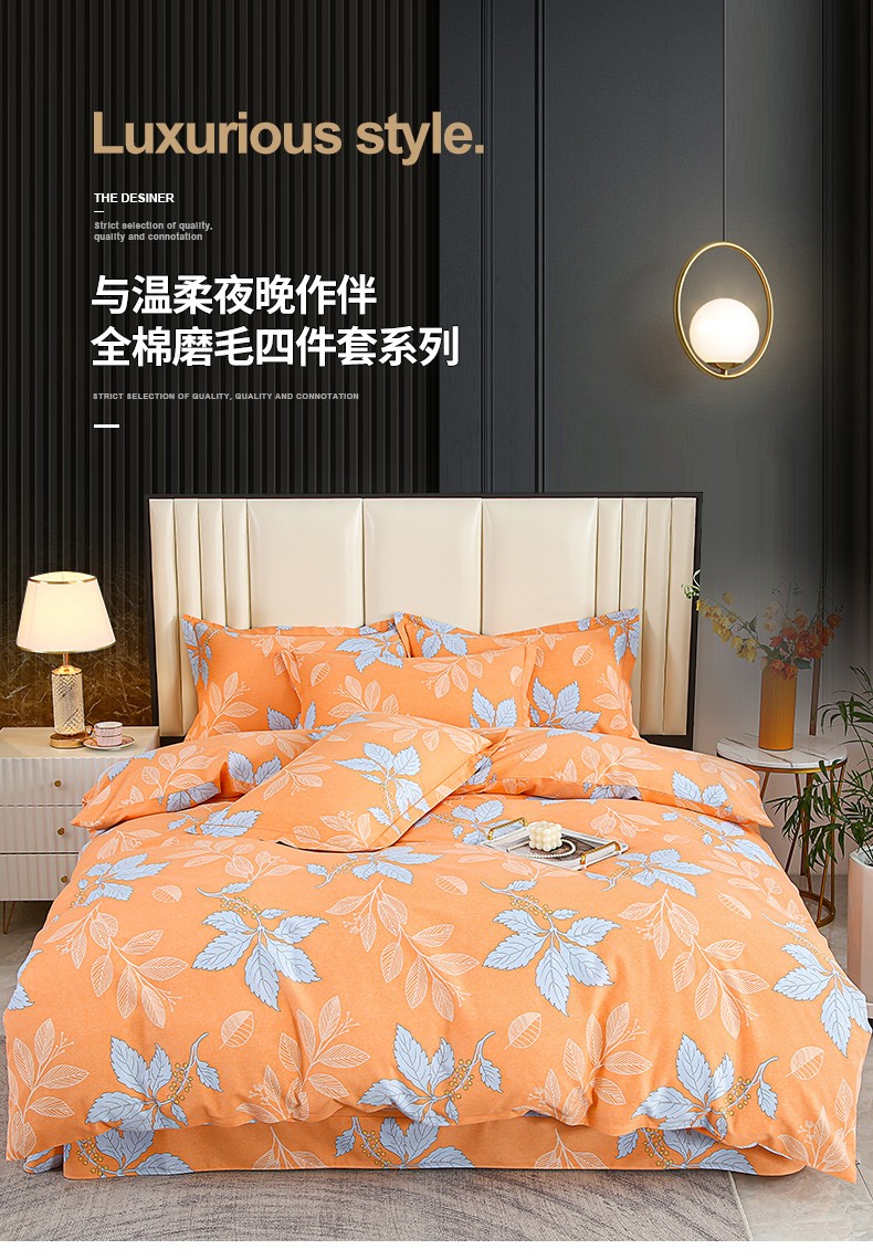 商品名称:畅畅 2024爆款全棉喷气活性印花磨毛四件套 HMJ枫叶-桔