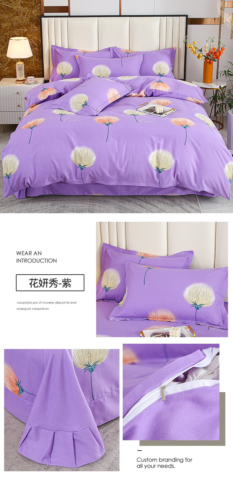 商品名称:畅畅 2024爆款全棉喷气活性印花磨毛四件套 花妍秀-紫
