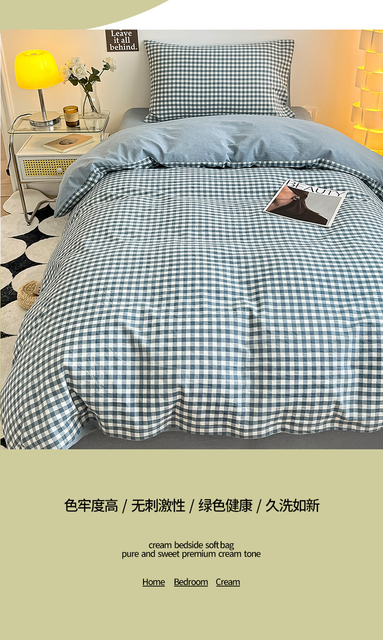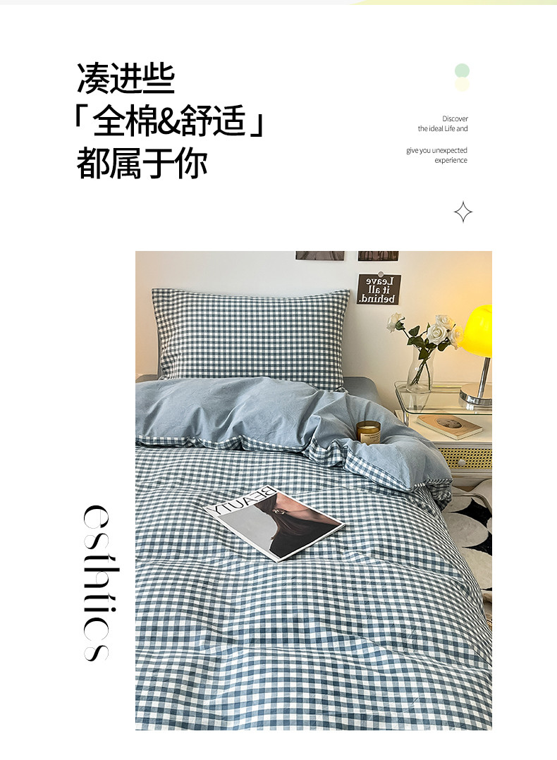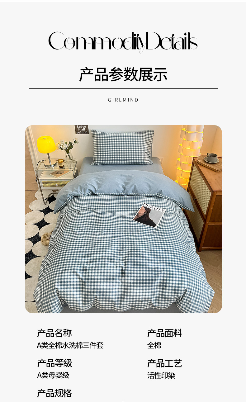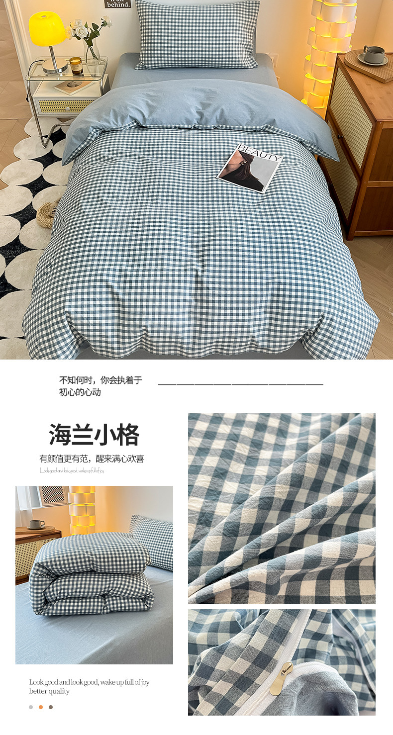 当前位置: 91家纺网 > 商品网购 > 床品套件 > 四件套 > 全棉普通四件套 > 蓝邻 2023新款学生季全棉色织水洗棉三件套四件套 海兰小格