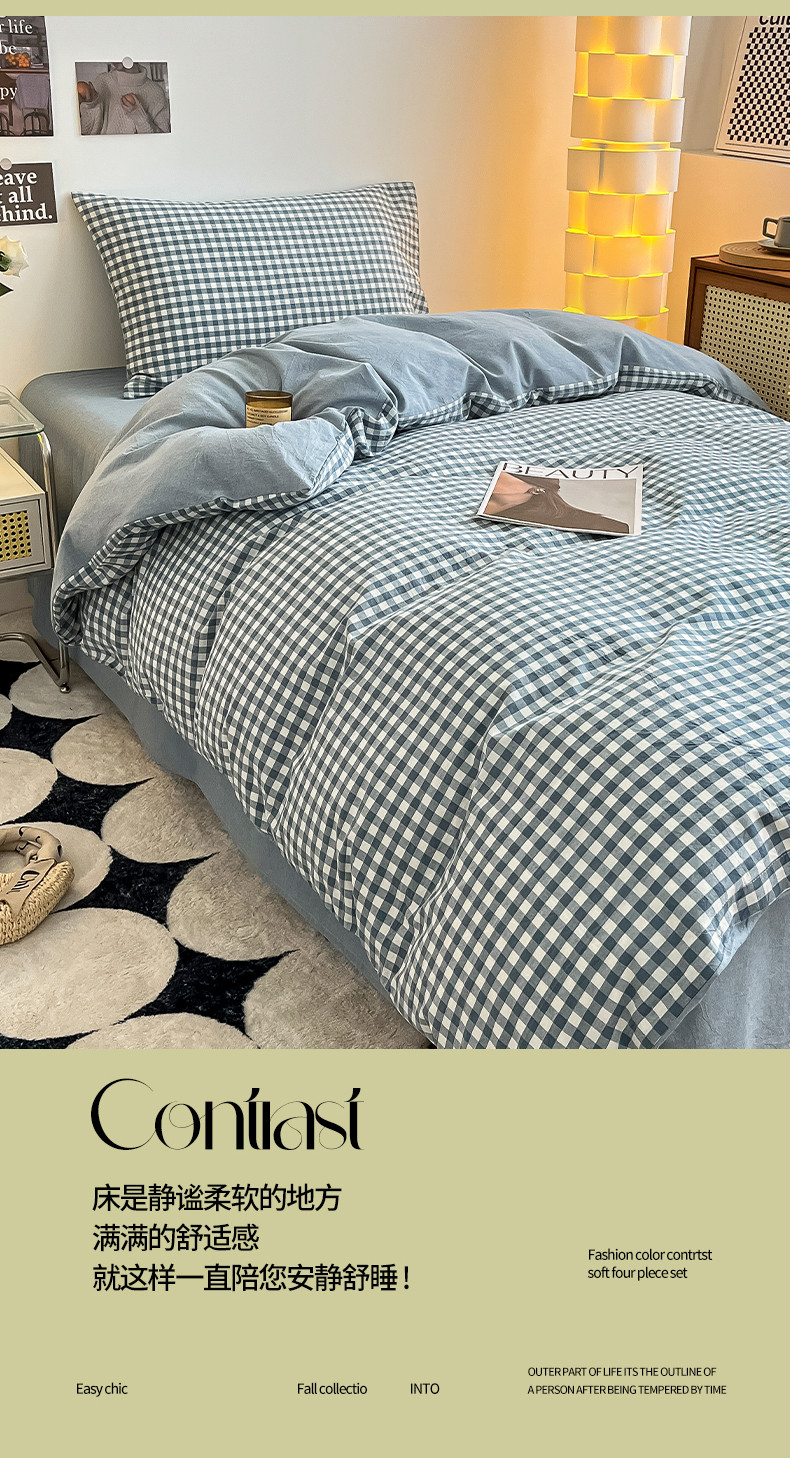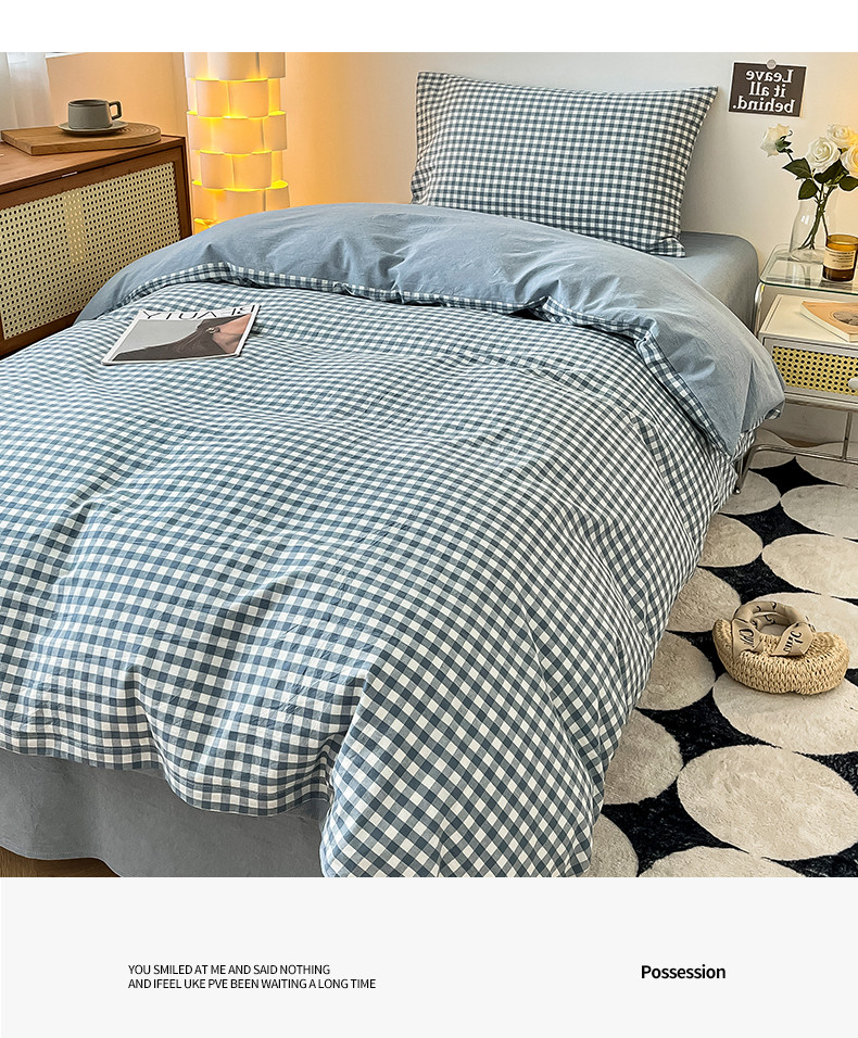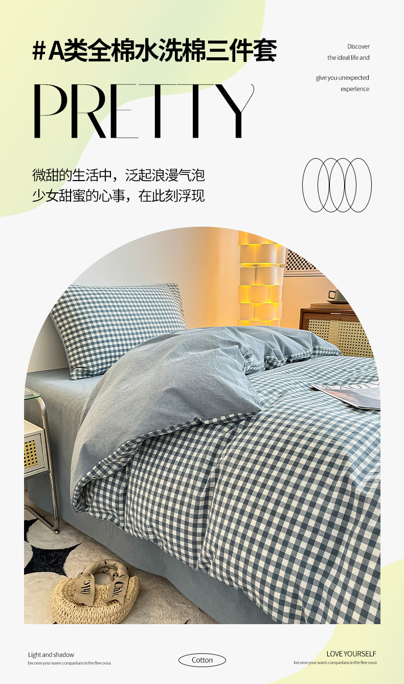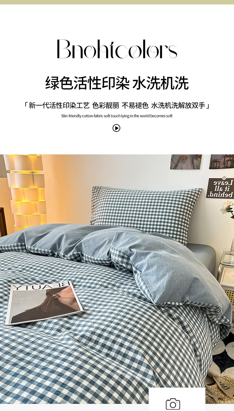 当前位置: 91家纺网 > 商品网购 > 床品套件 > 四件套 > 全棉普通四件套 > 蓝邻 2023新款学生季全棉色织水洗棉三件套四件套 海兰小格
