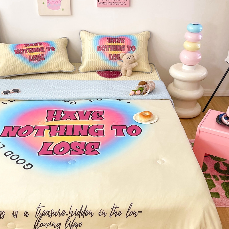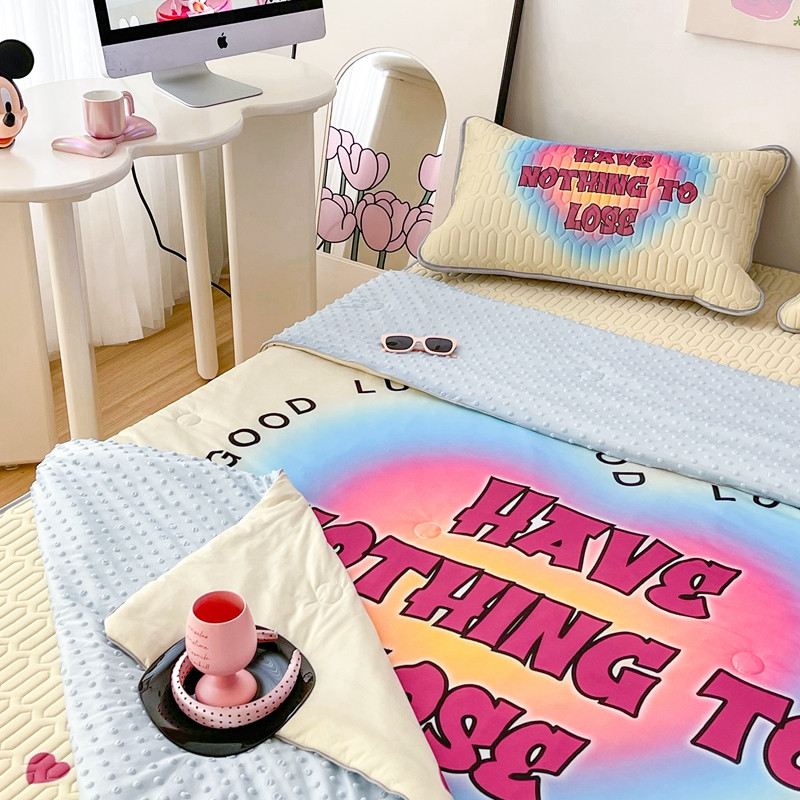 当前位置: 91家纺网 > 商品网购 > 床上用品 > 凉席 > 乳胶凉席 > 顾里家纺 2023新款凉席豆豆夏被套件 甜酷爱心