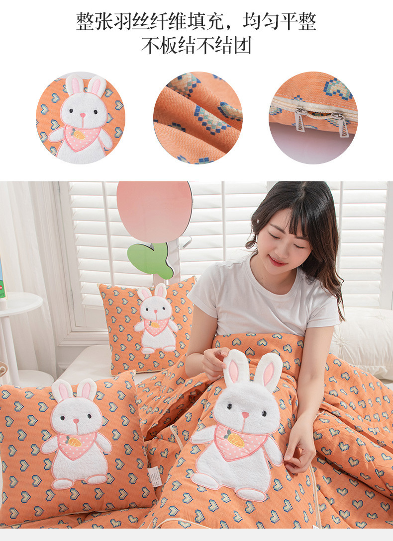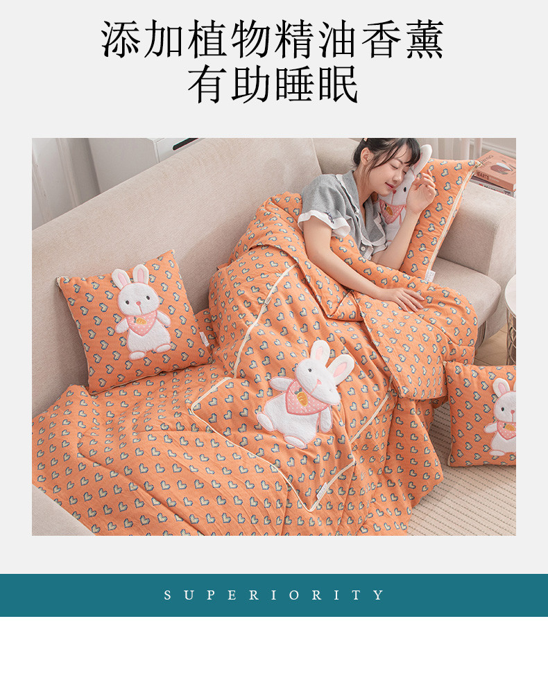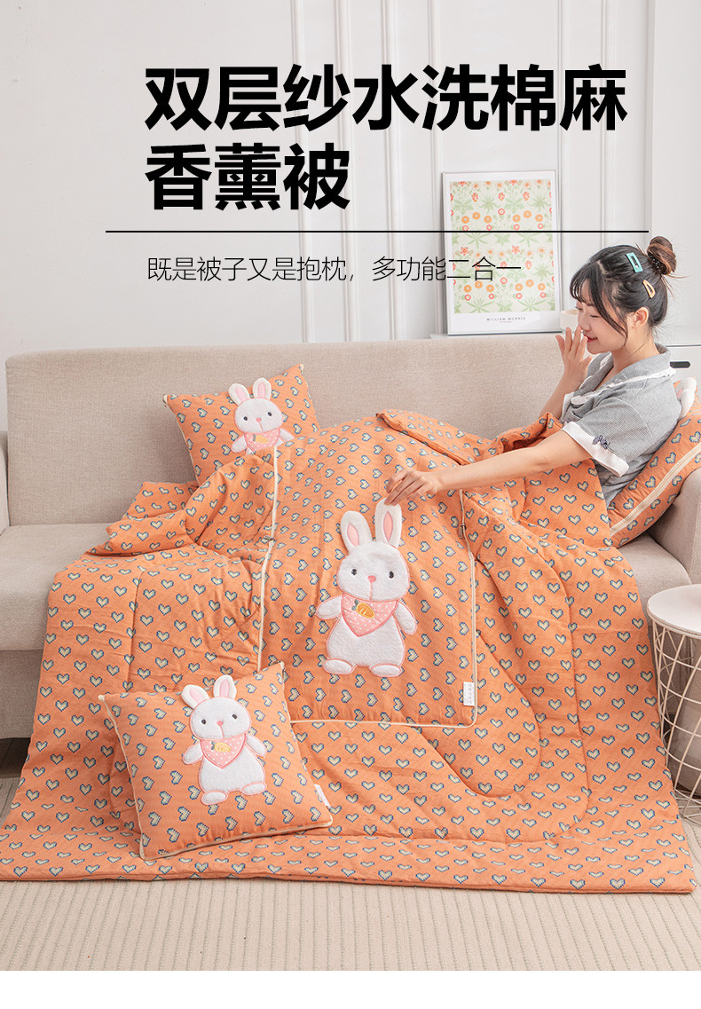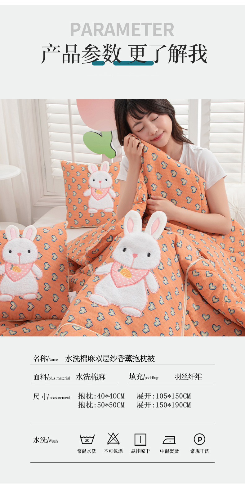 商品名称:翰轩家居 2023新款水洗棉麻植物精油香薰萌萌兔抱枕被 萌萌兔-心动橘