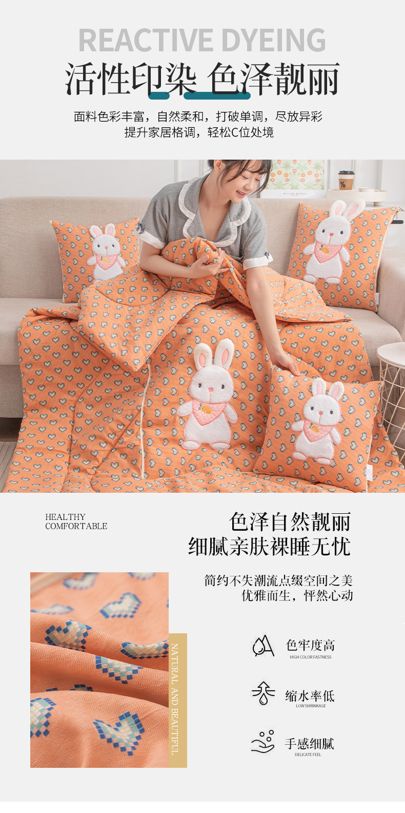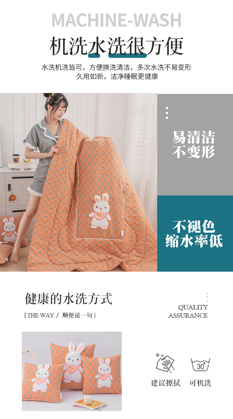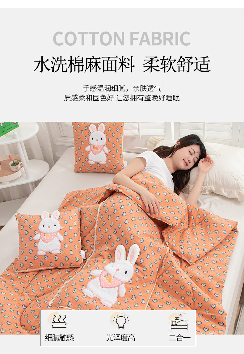 商品名称:翰轩家居 2023新款水洗棉麻植物精油香薰萌萌兔抱枕被 萌萌兔-心动橘