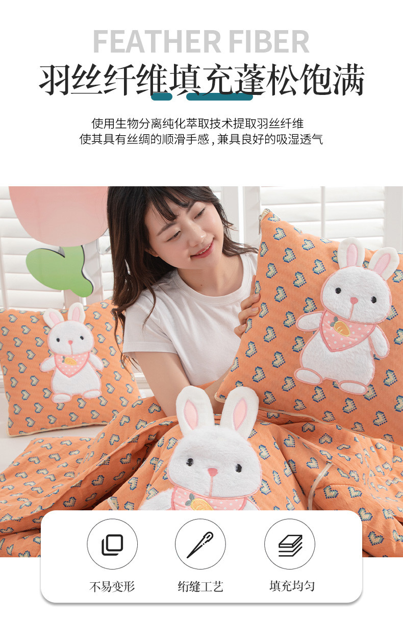 翰轩家居 2023新款水洗棉麻植物精油香薰萌萌兔抱枕被 萌萌兔-心动橘