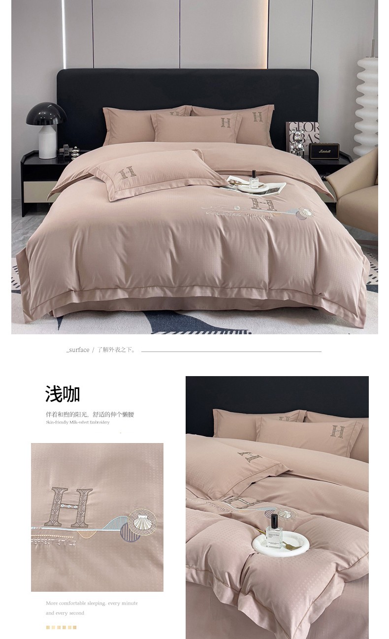 (总)金米诺 2024新款磨毛四件套刺绣系列,豆沙,翡翠绿,抹茶绿,浅姜黄,深蓝,烟灰,烟灰紫
