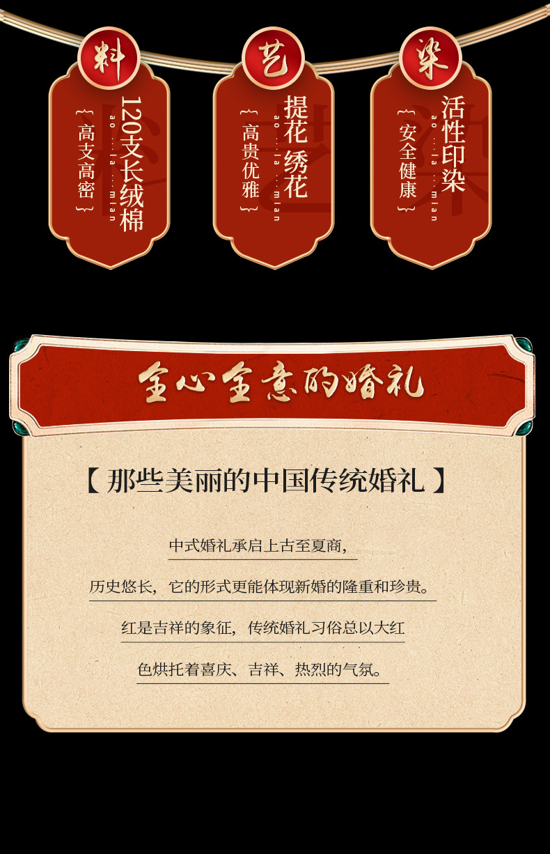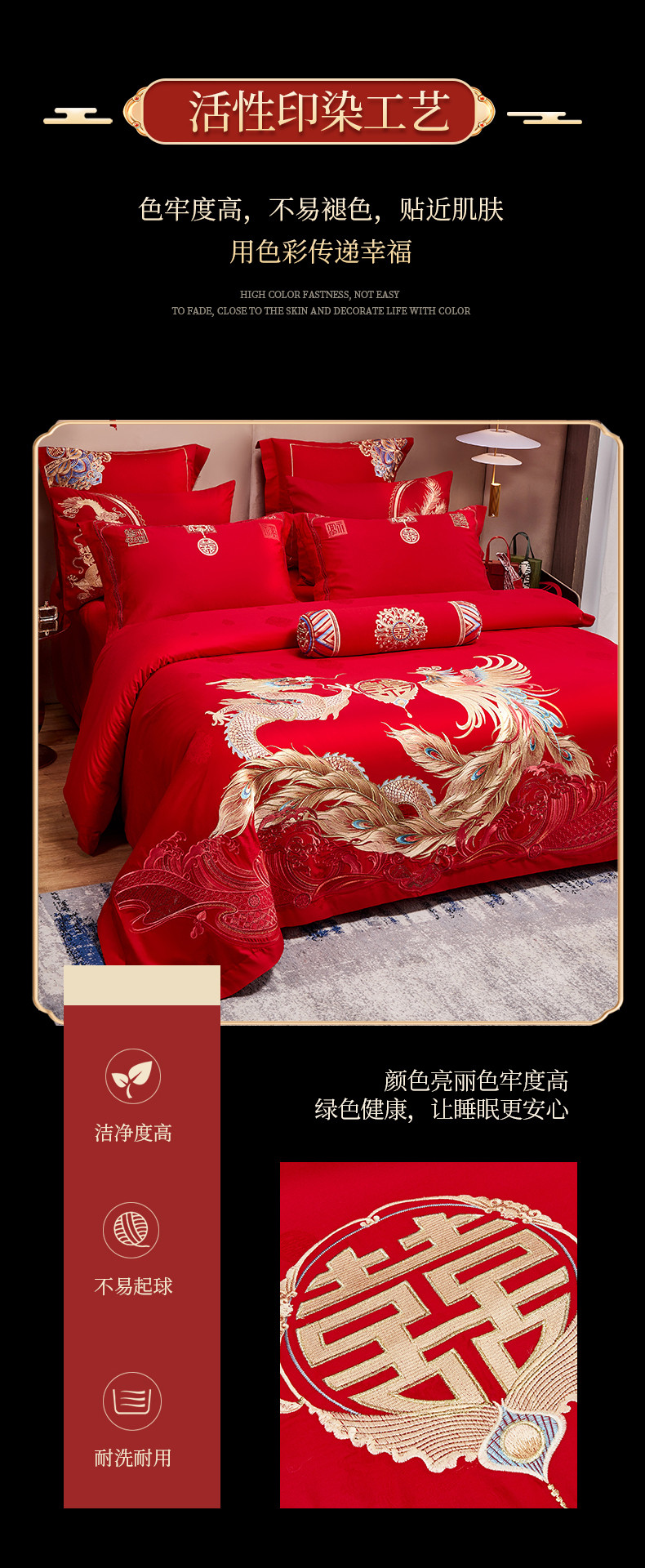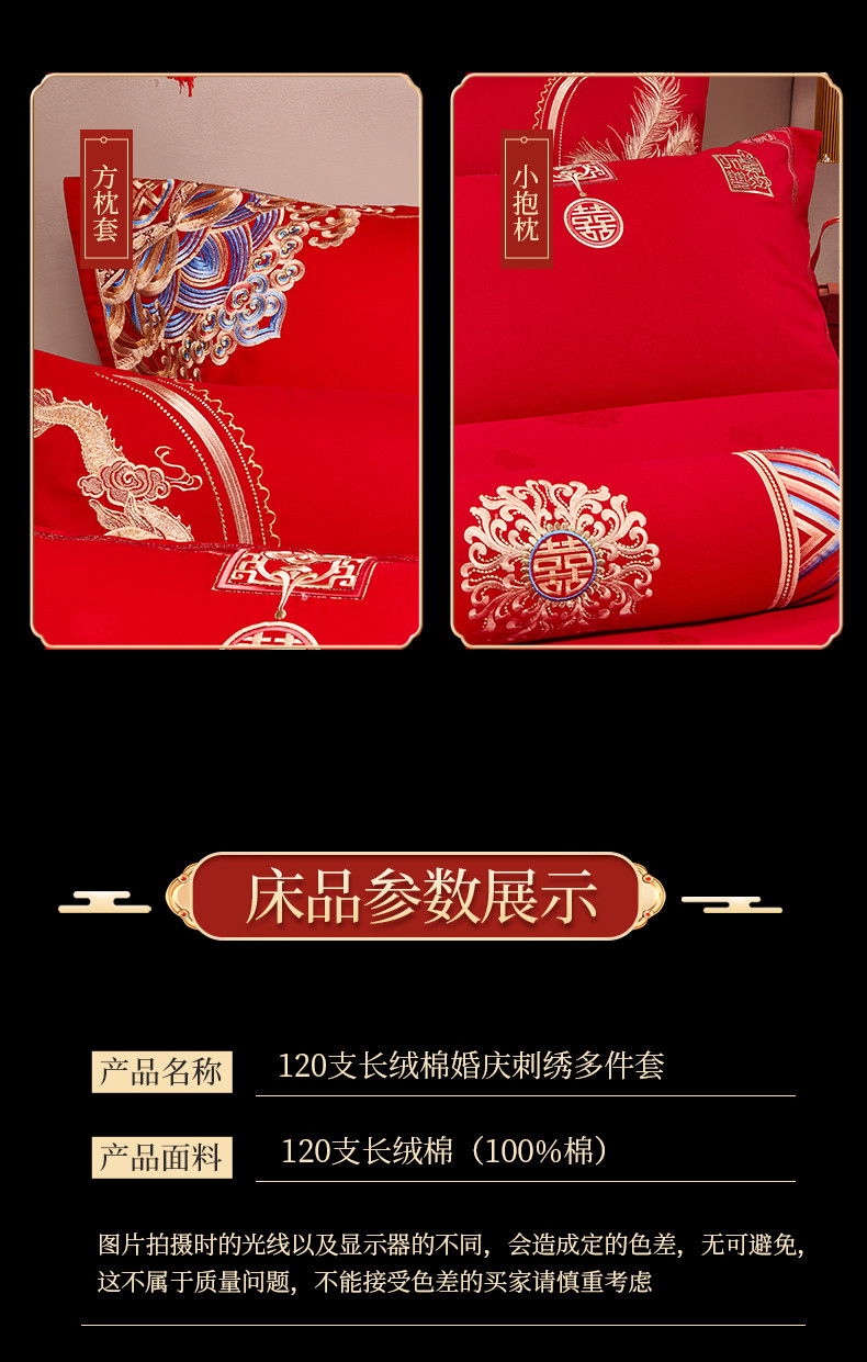当前位置: 91家纺网 > 商品网购 > 床品套件 > 四件套 > 婚庆四件套 > 2025新款120支长绒棉提花刺绣婚庆四件套结婚大红多件套 龙凤奇缘