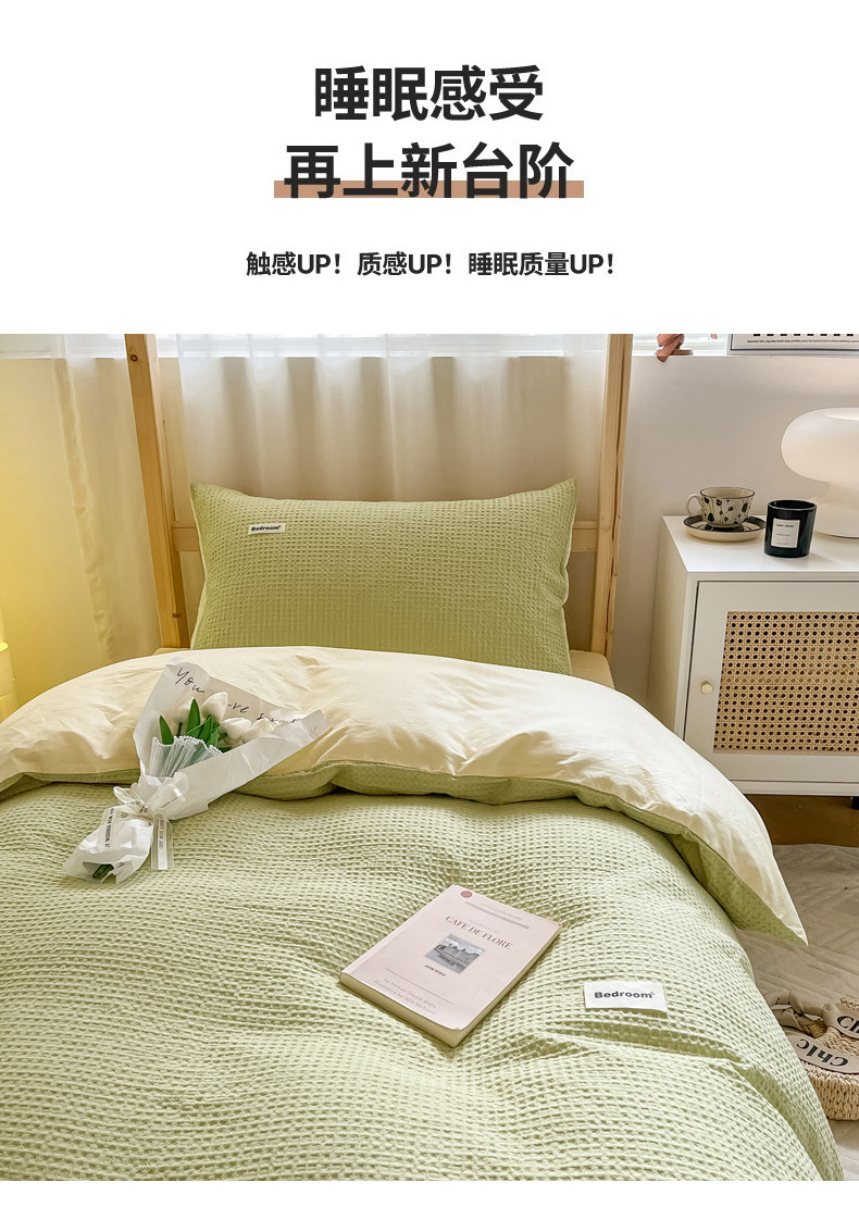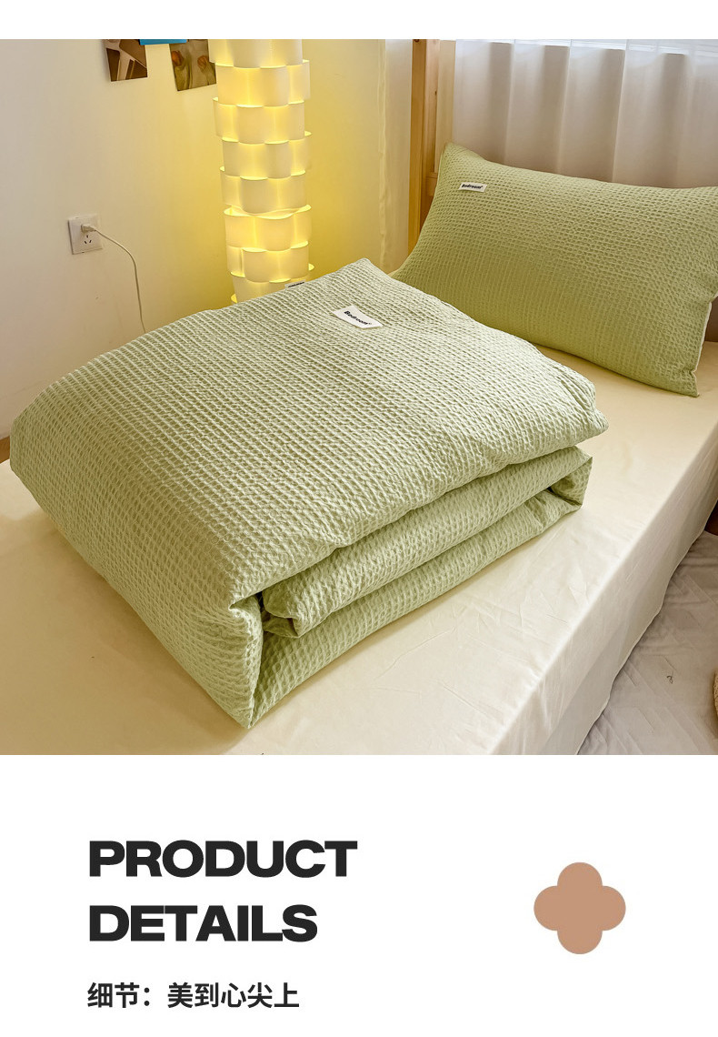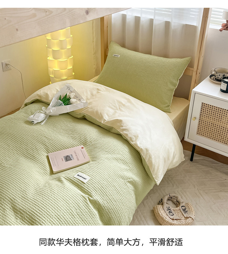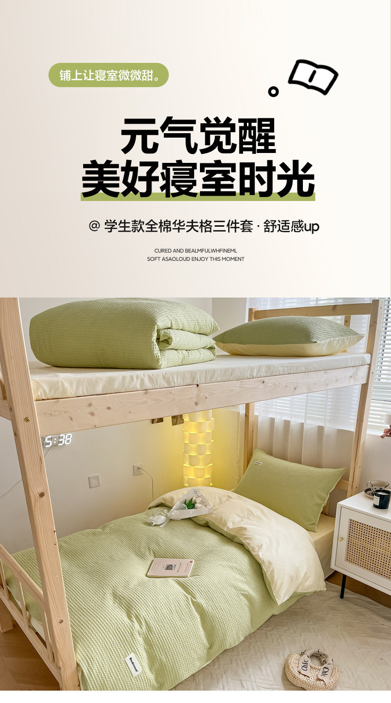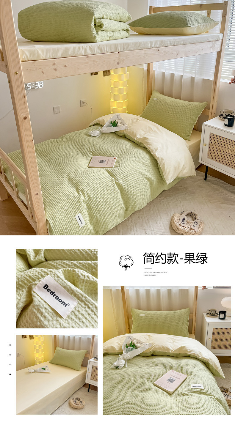 当前位置: 91家纺网 > 商品网购 > 床品套件 > 四件套 > 全棉普通四件套 > 眠博士 2023新款全棉华夫格学生上下铺四件套 简约款-果绿