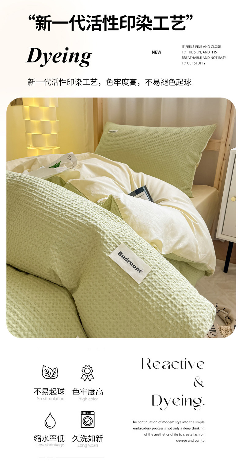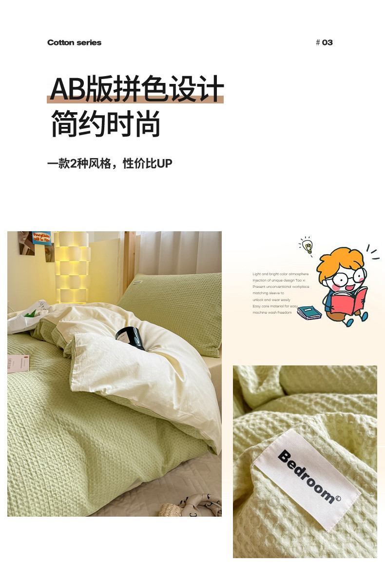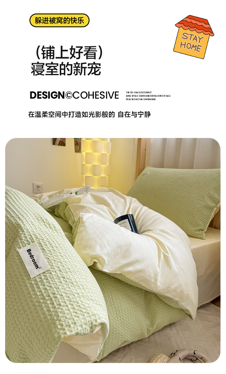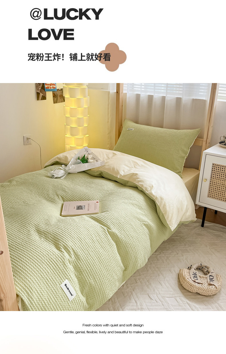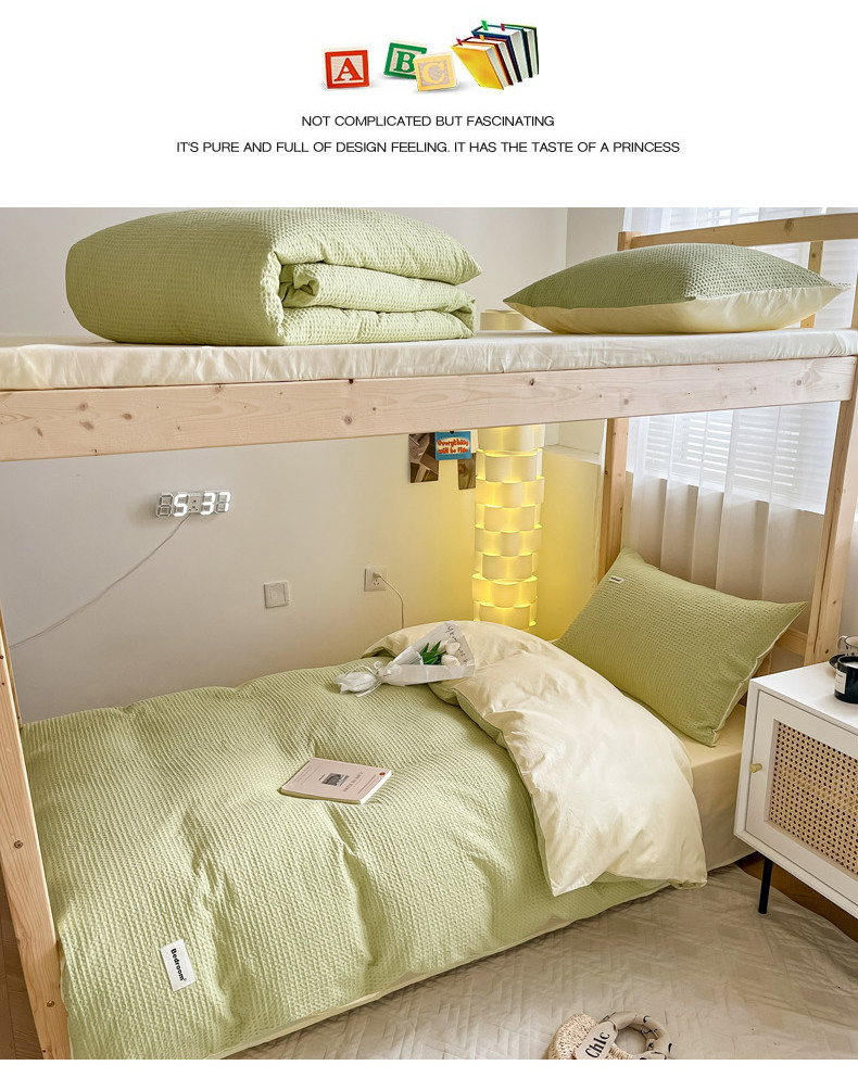当前位置: 91家纺网 > 商品网购 > 床品套件 > 四件套 > 全棉普通四件套 > 眠博士 2023新款全棉华夫格学生上下铺四件套 简约款-果绿