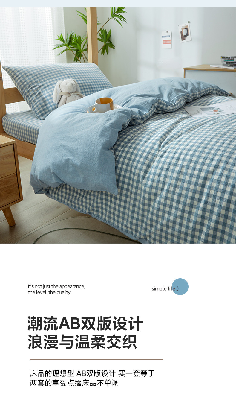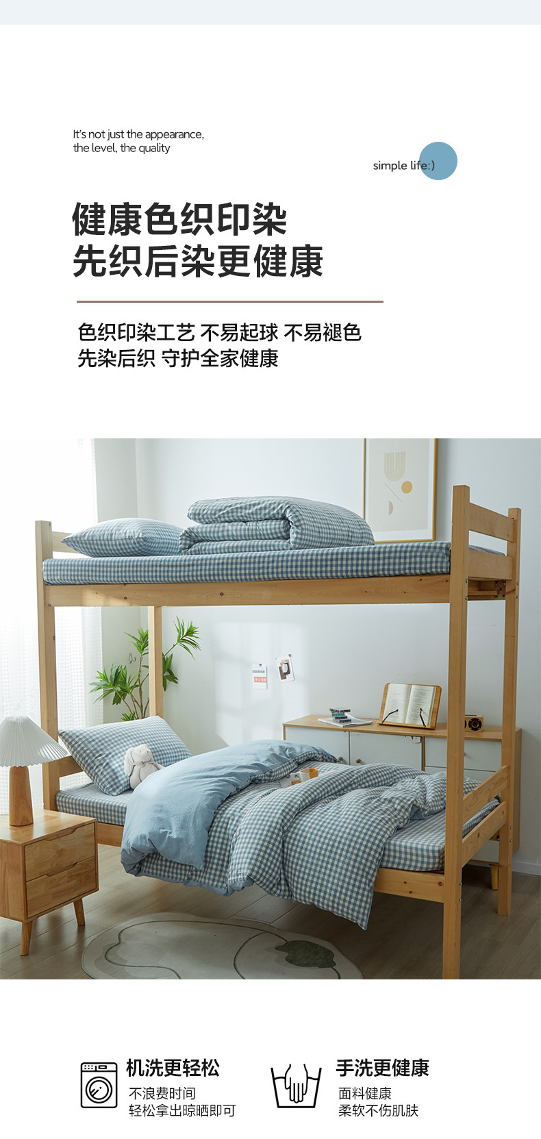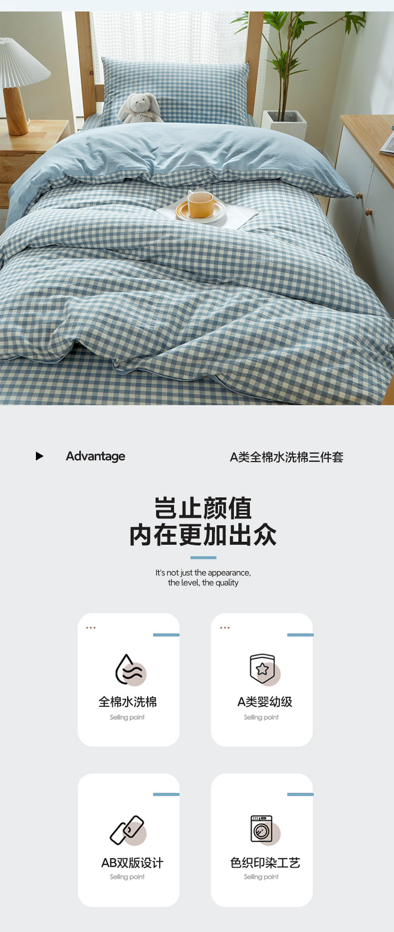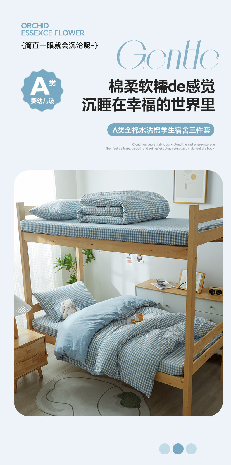 当前位置: 91家纺网 > 商品网购 > 床品套件 > 三件套 > 鸣升家纺 新款A类全棉水洗棉宿舍三件套 浅蓝小格