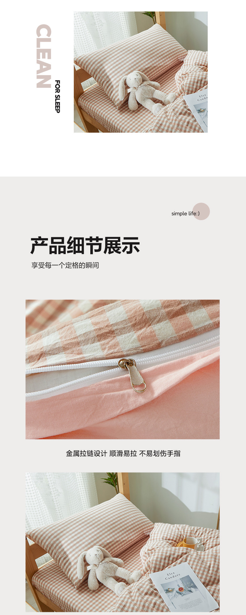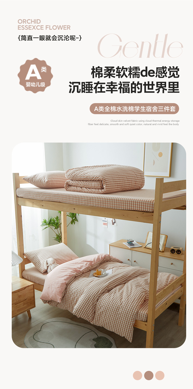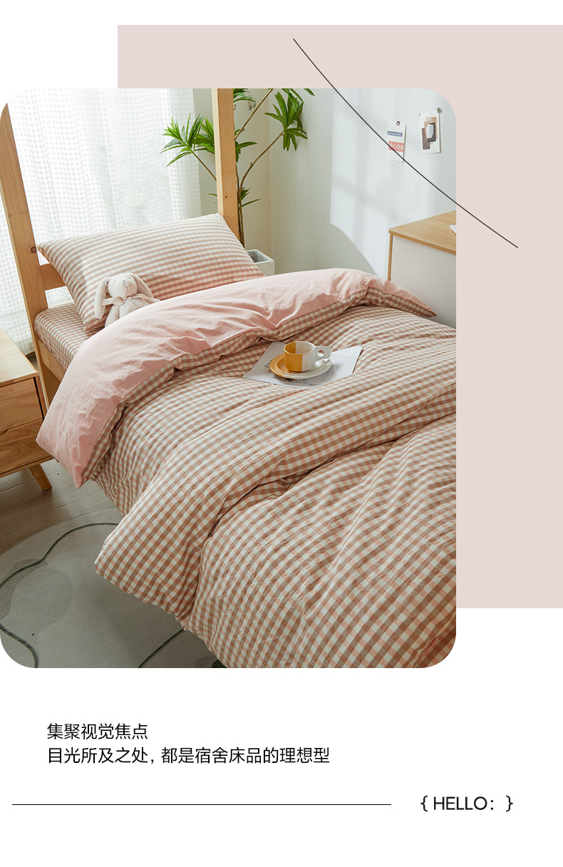 当前位置: 91家纺网 > 商品网购 > 床品套件 > 三件套 > 九沐良品 新款A类全棉水洗棉宿舍三件套 粉小格