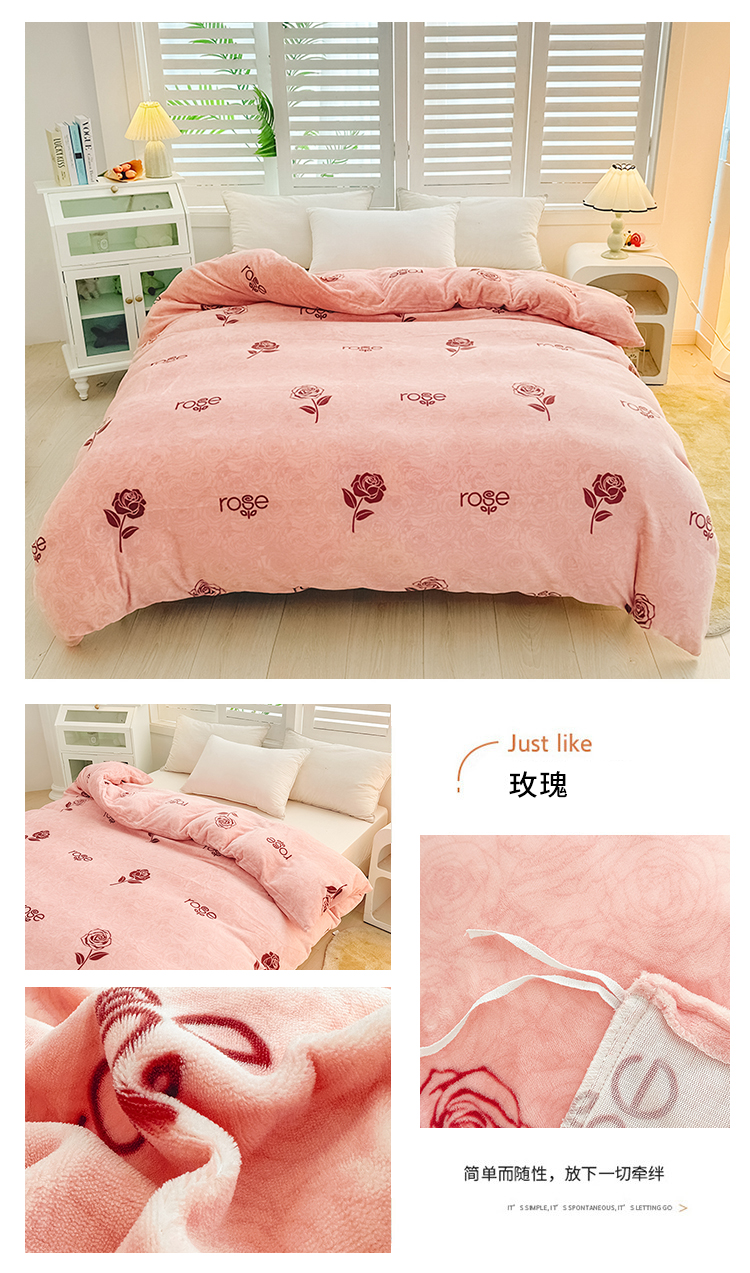 • 91家纺网 家纺一手货源 找家纺 新款230克高克重印花牛奶绒单被套定制定做尺寸 玫瑰