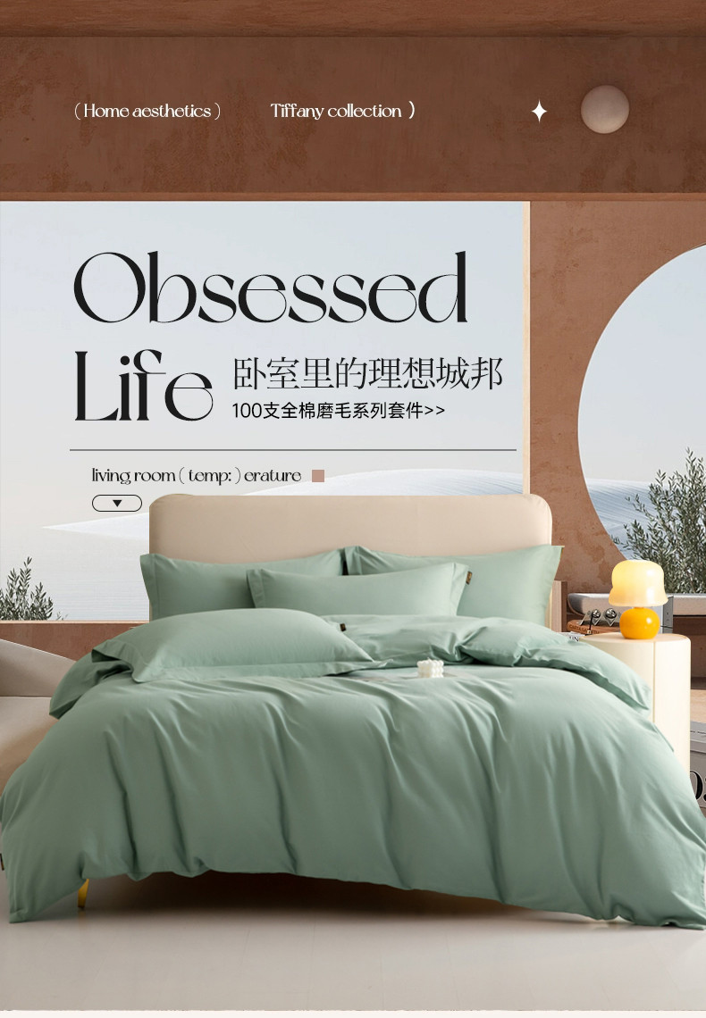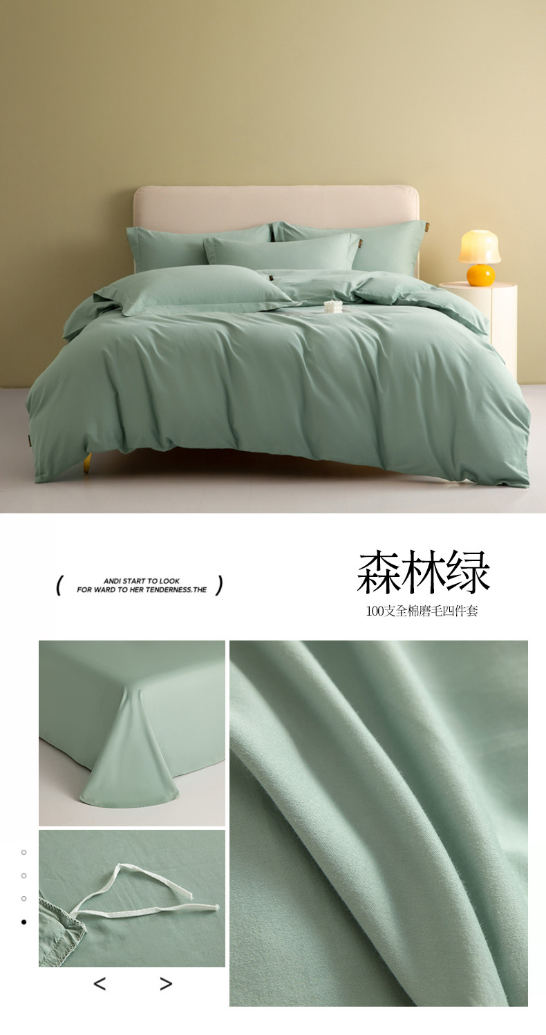 当前位置: 91家纺网 > 商品网购 > 床品套件 > 四件套 > 普通磨毛四件套 > 莱阁亿 2023新款高支高密全棉磨毛四件套 森林绿