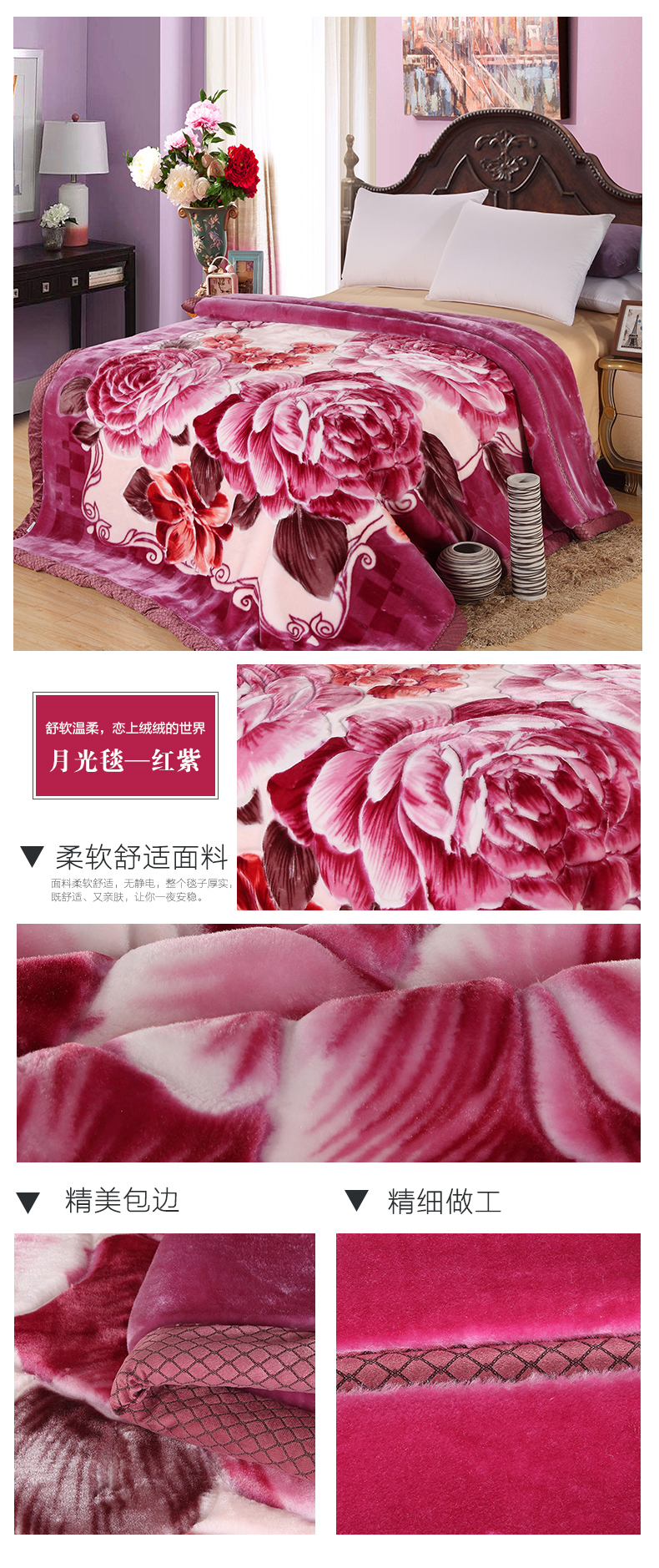 商品名称:新月家纺(锦威郎) 2023新款雕花数码印花月光毯 1129红紫