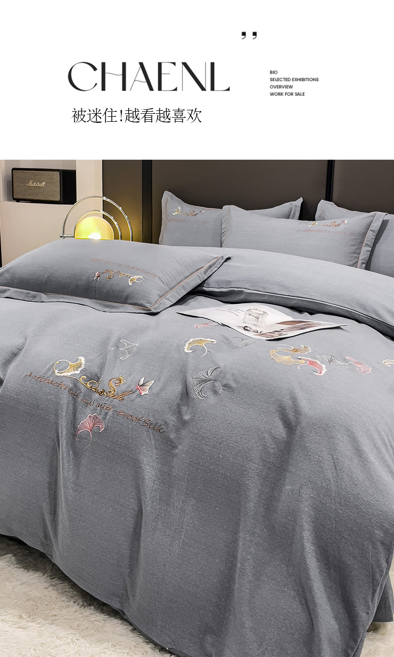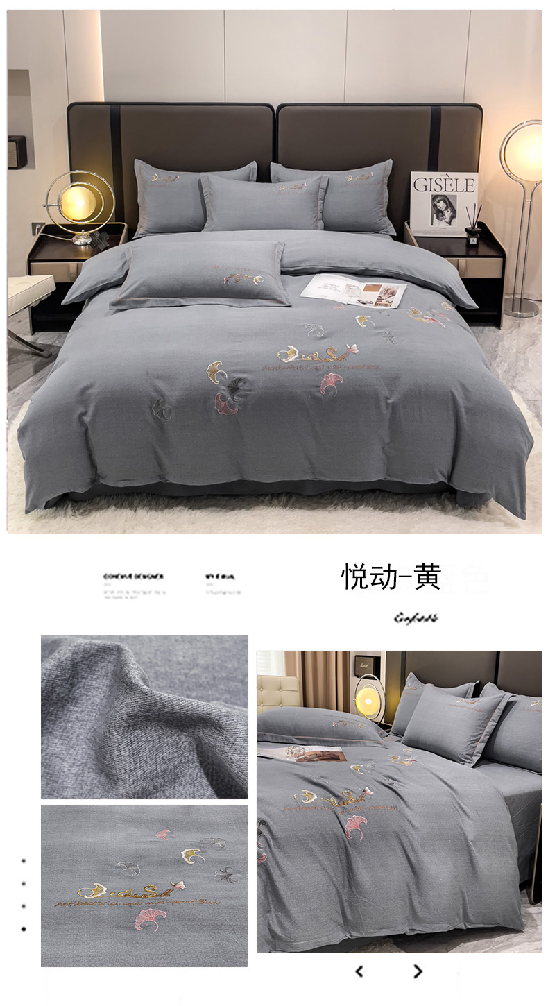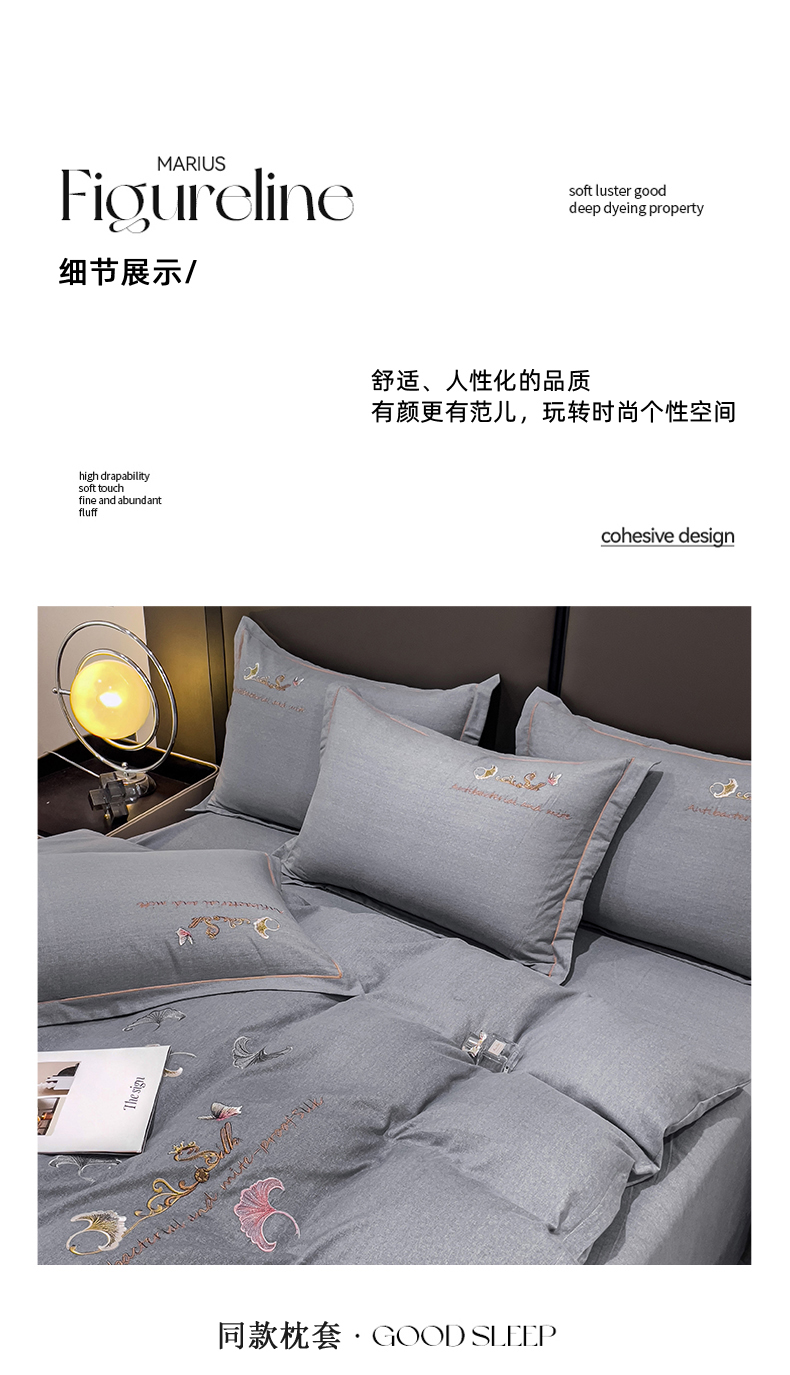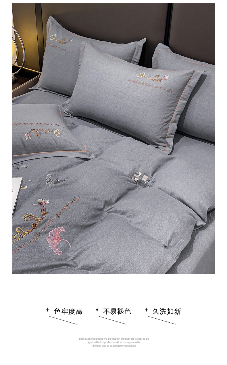 商品名称:云锦2023新款全棉磨毛绣花四件套系列 悦动灰色