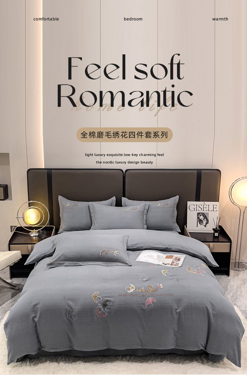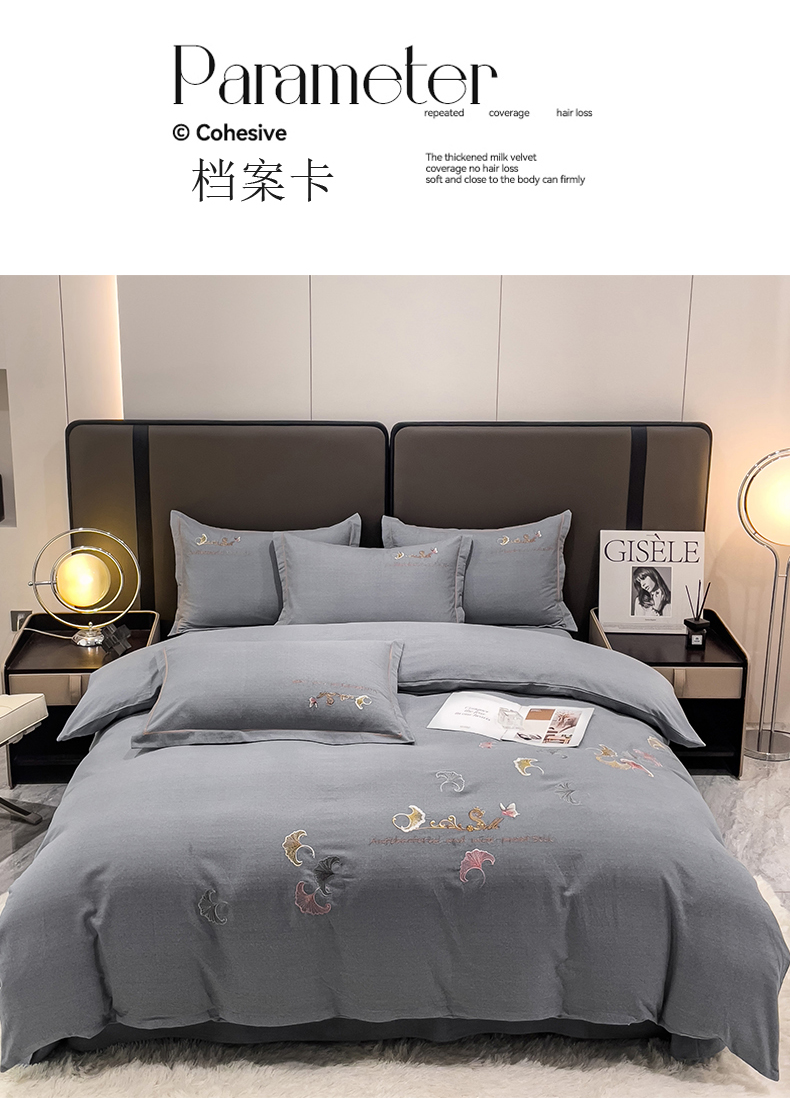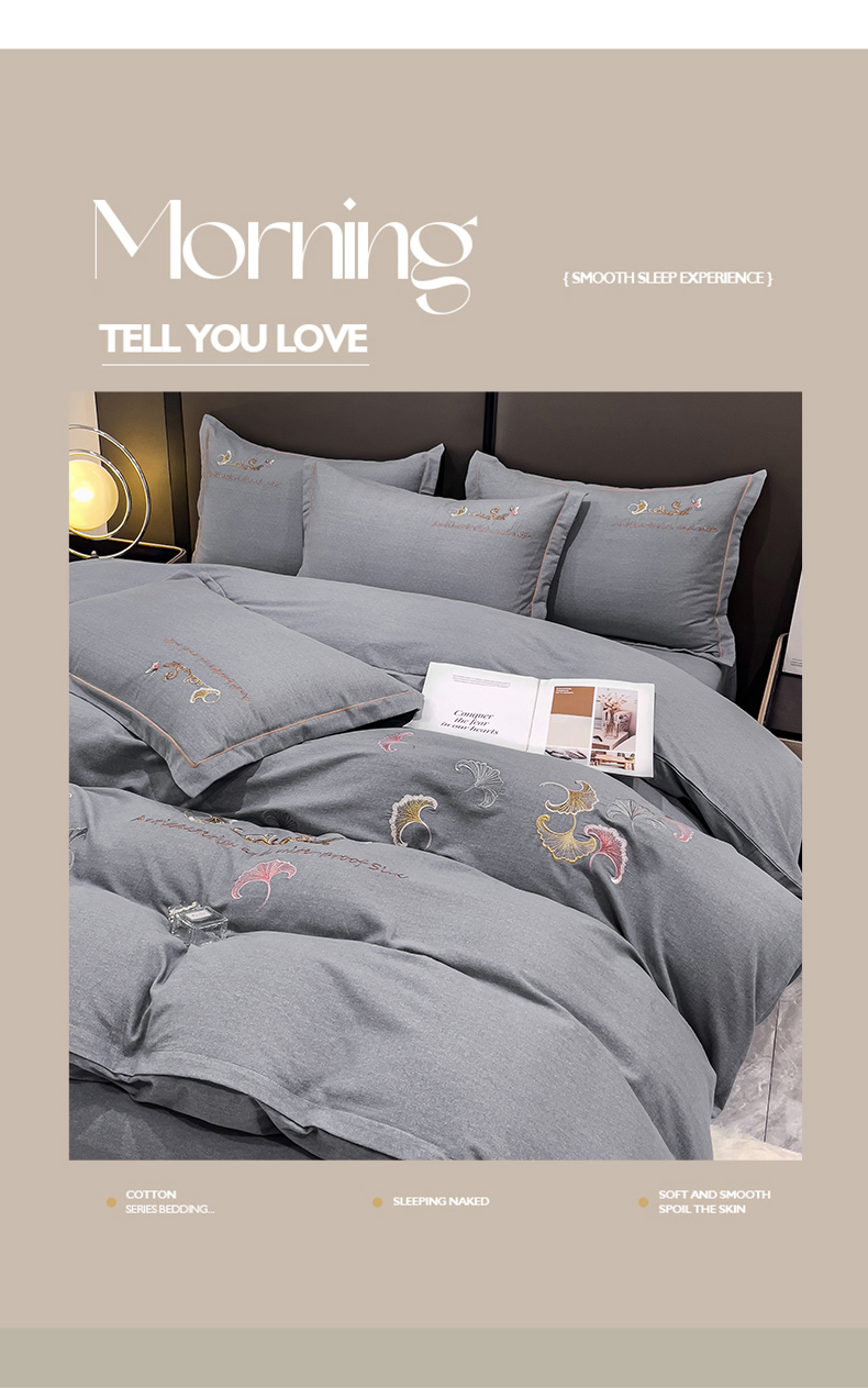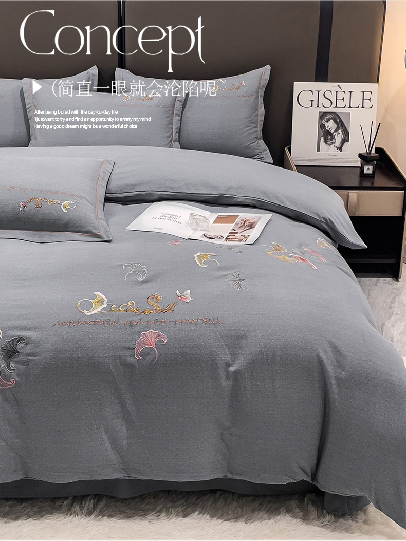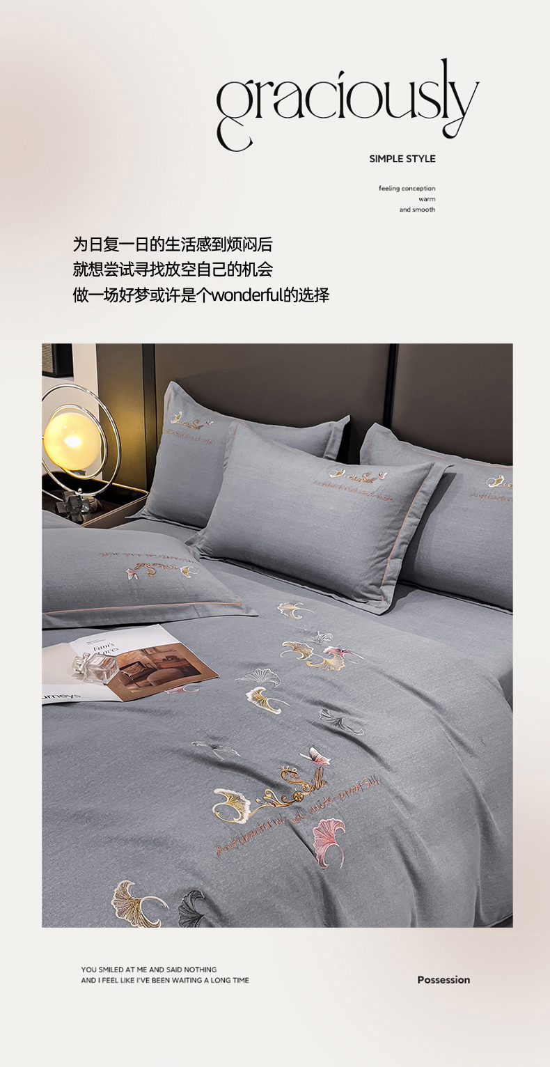 云锦2023新款全棉磨毛绣花四件套系列 悦动灰色