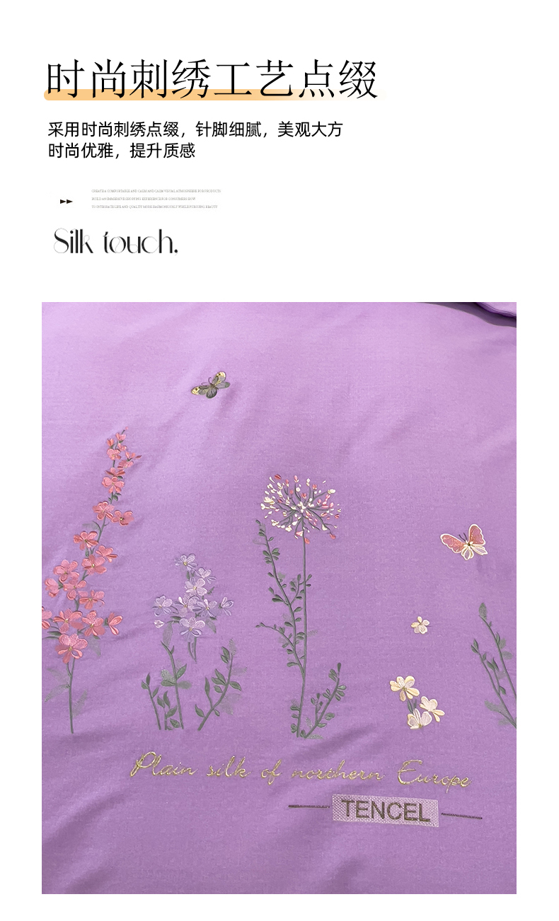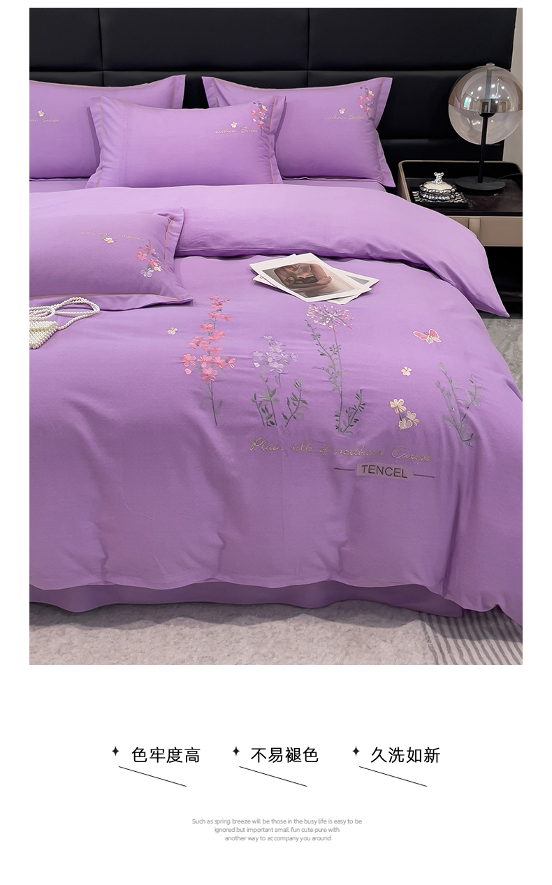 商品名称:云锦2023新款全棉磨毛绣花四件套系列 漫野花香紫色