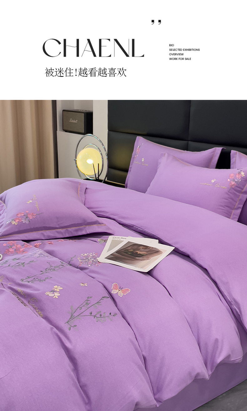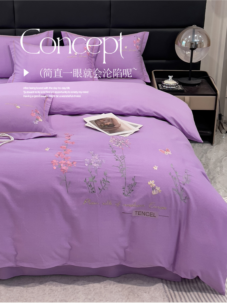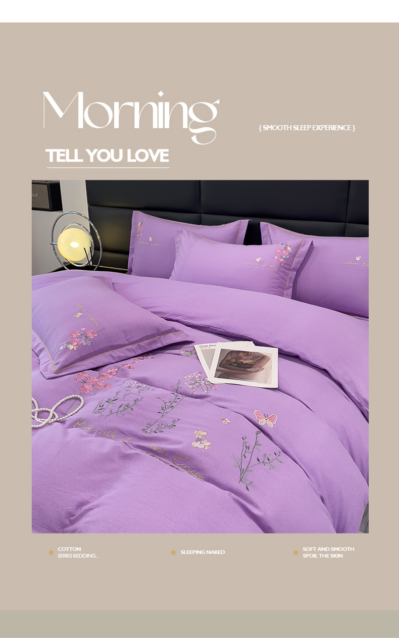 云锦2023新款全棉磨毛绣花四件套系列 漫野花香紫色