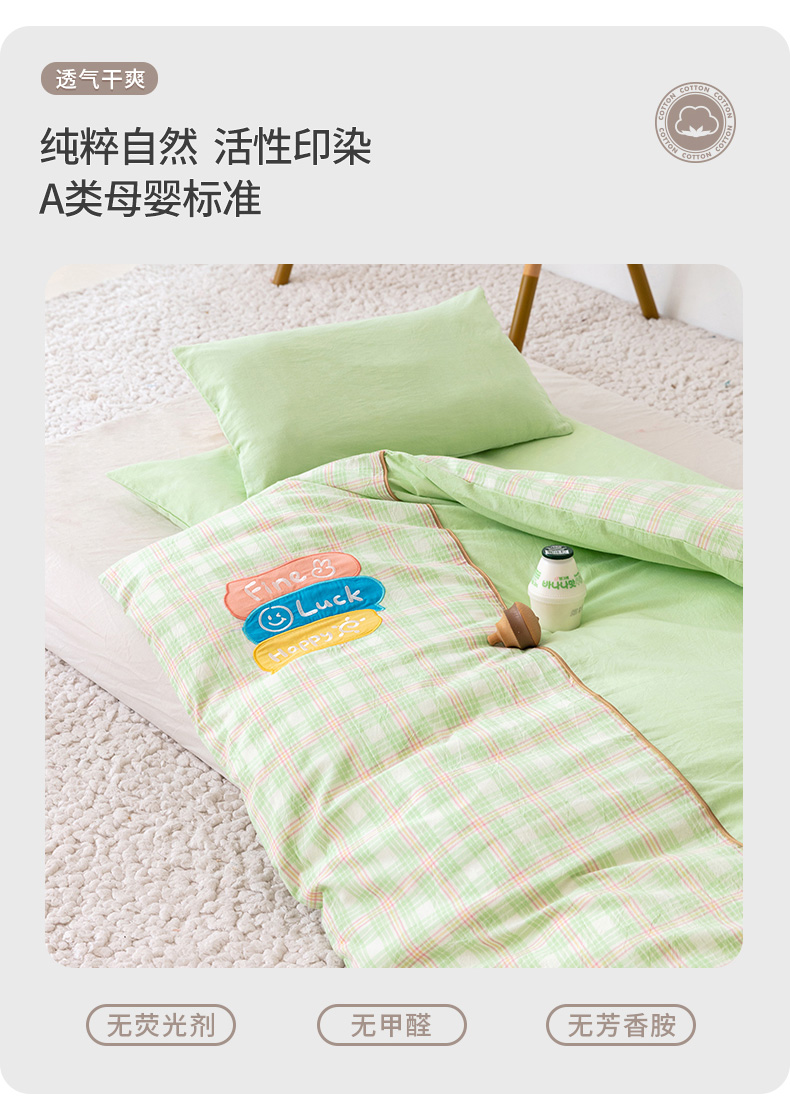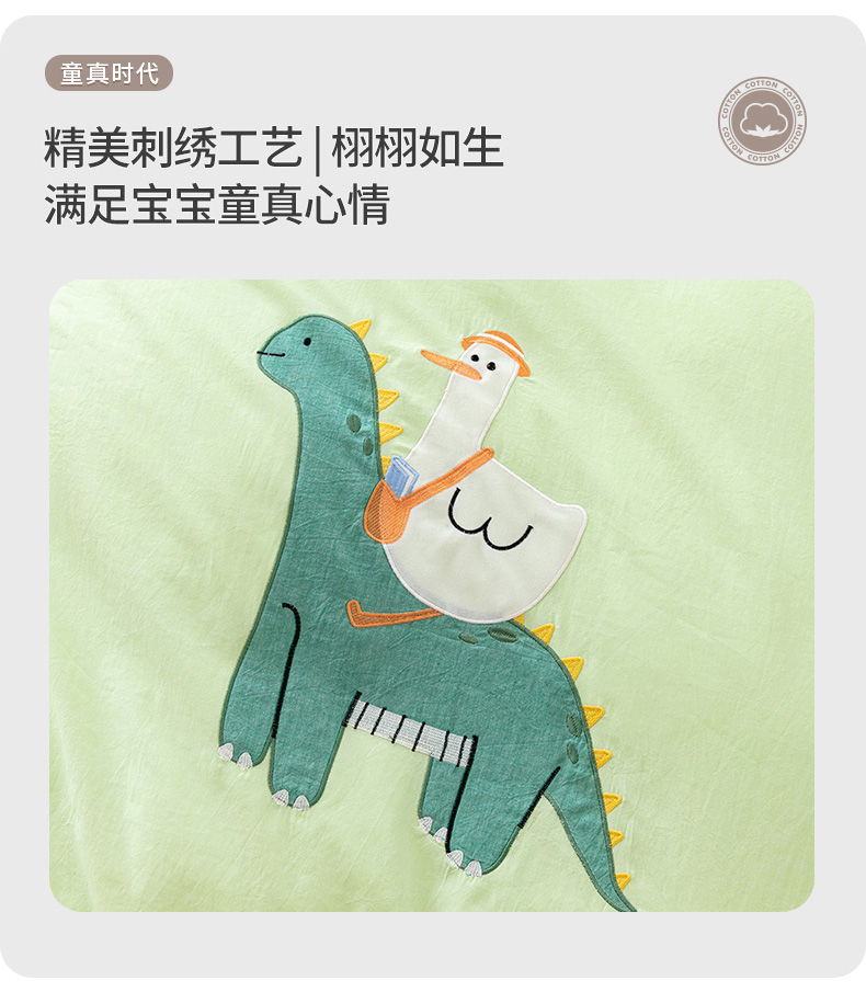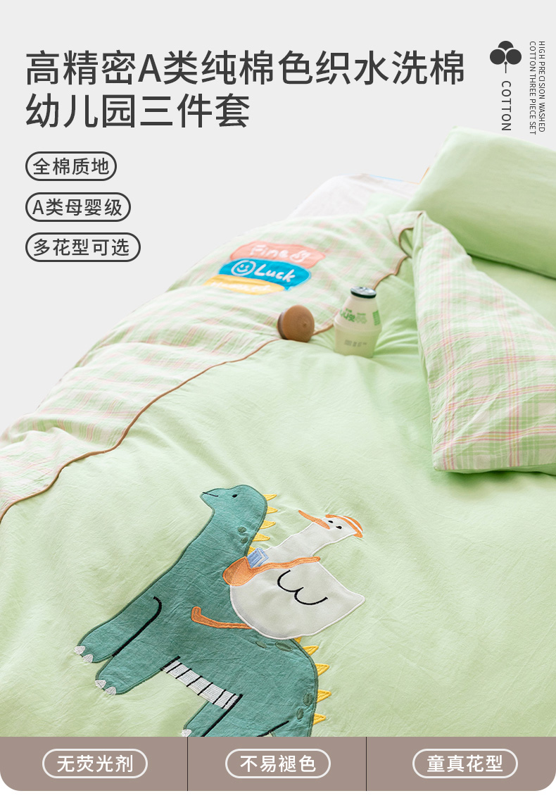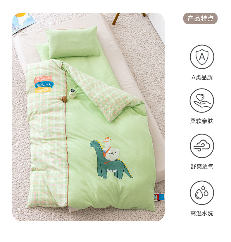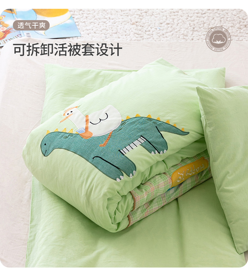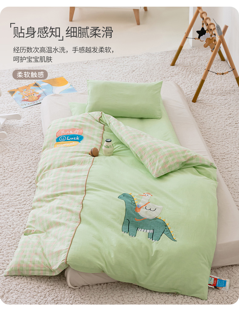 当前位置: 91家纺网 > 商品网购 > 床品套件 > 三件套 > 喜多兔儿童家纺 2023新款小心动幼儿园三件套 绿色心动骑士鸭