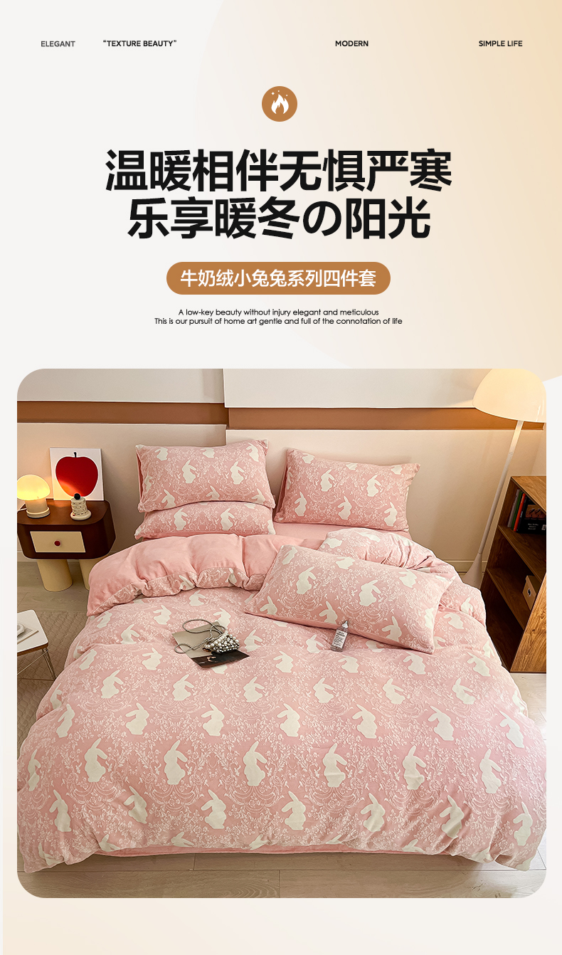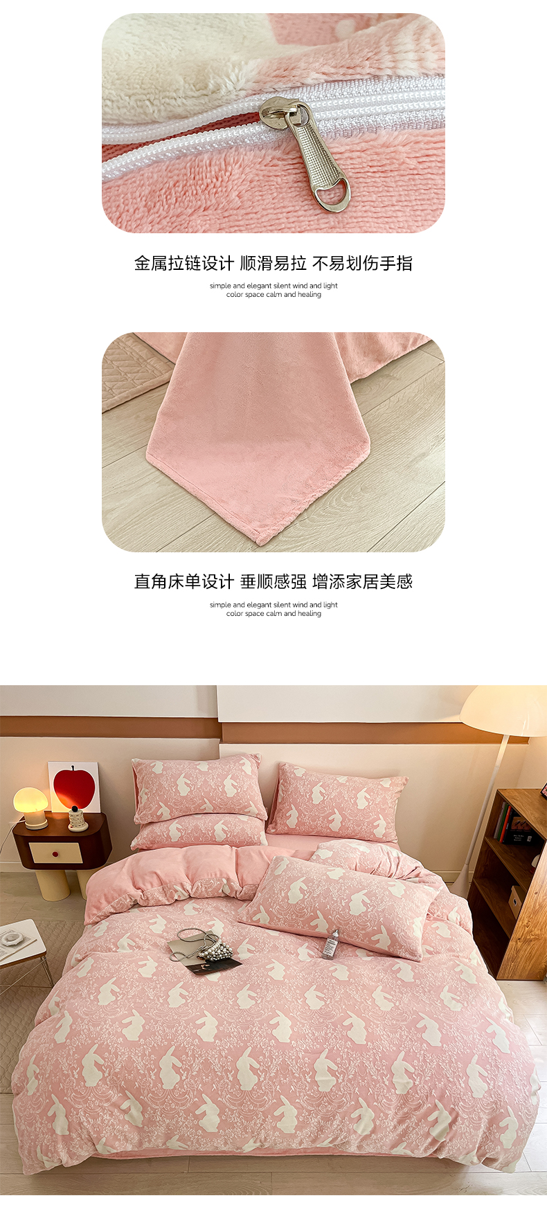 商品名称:雅居纺 2023新款200克立体雕花烂花绒四件套-小兔兔系列 小兔兔-粉