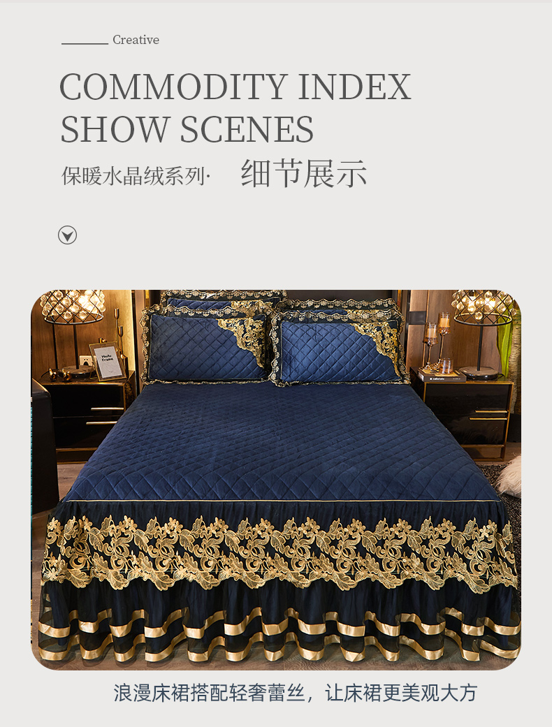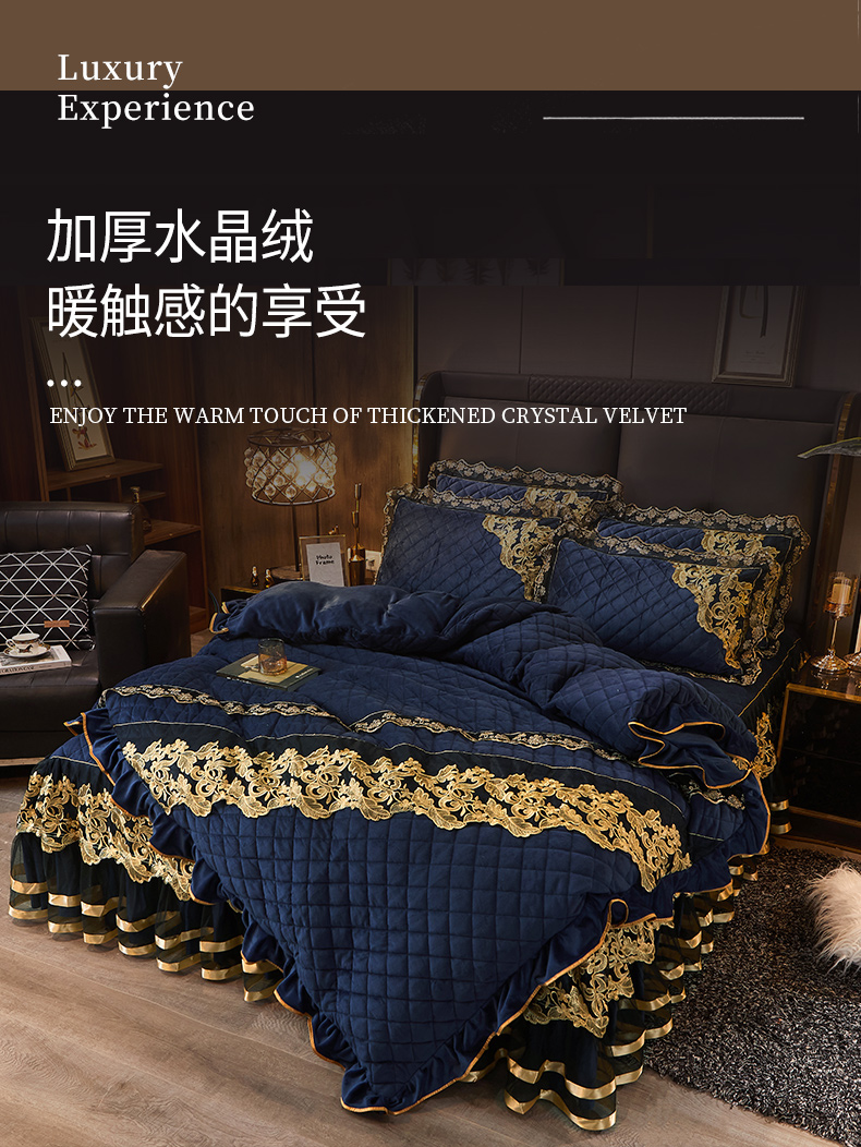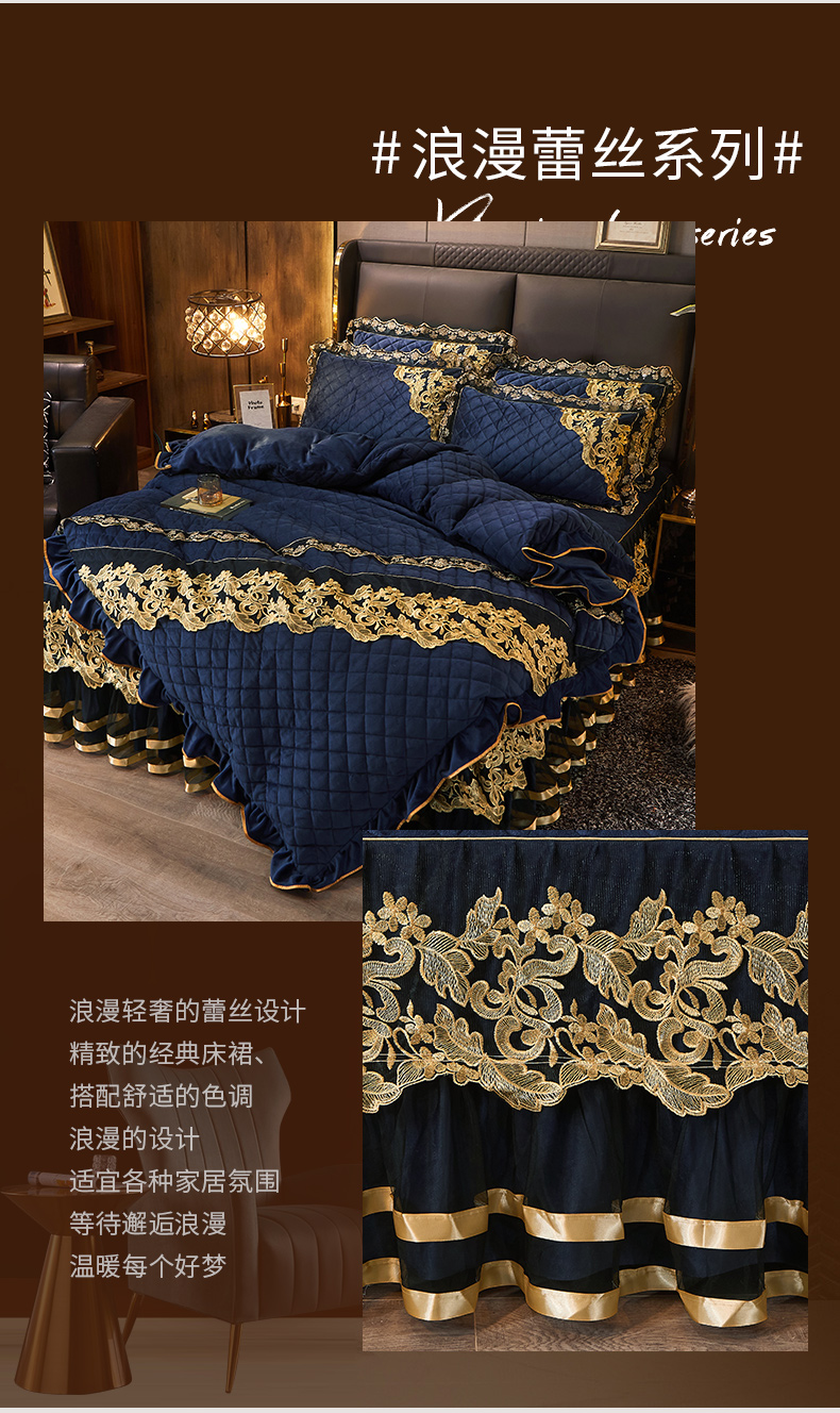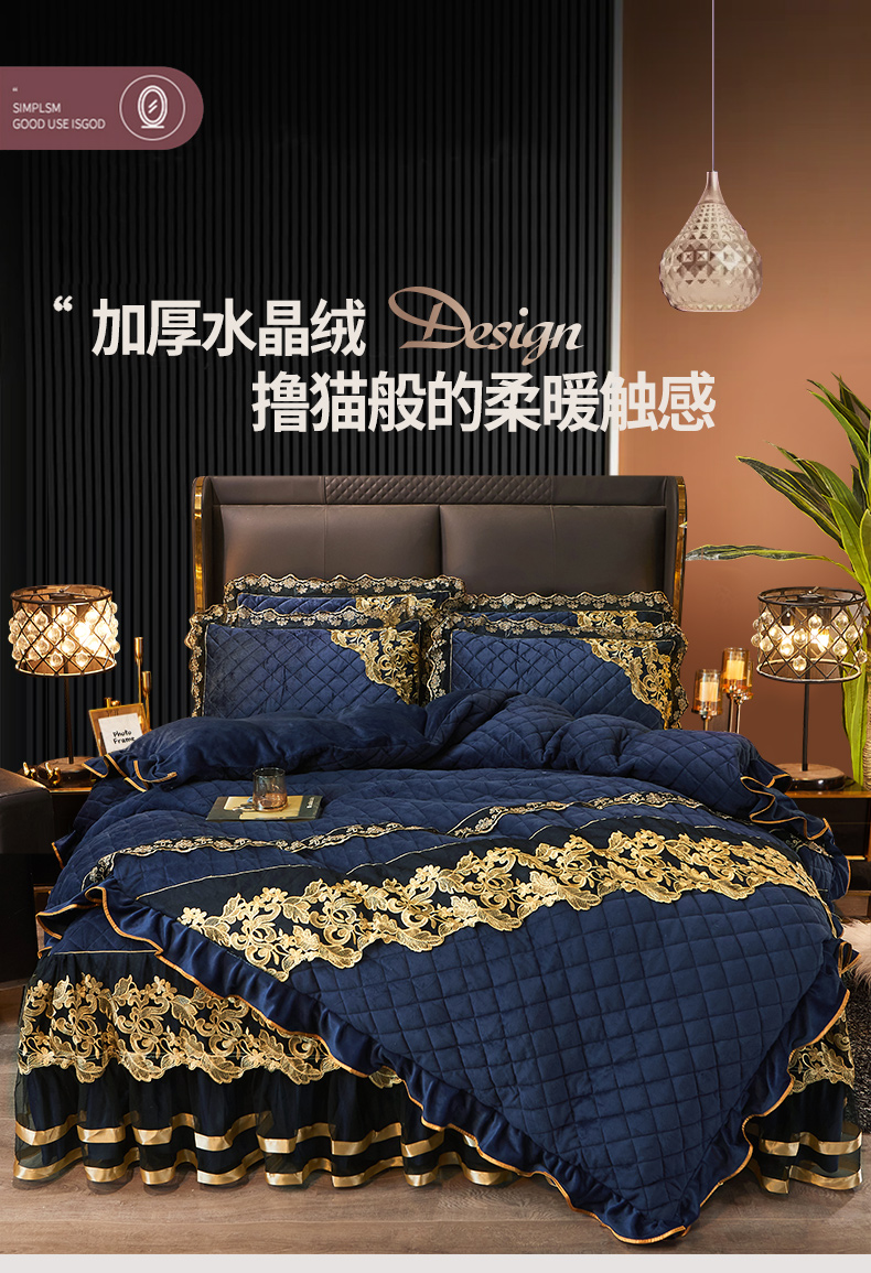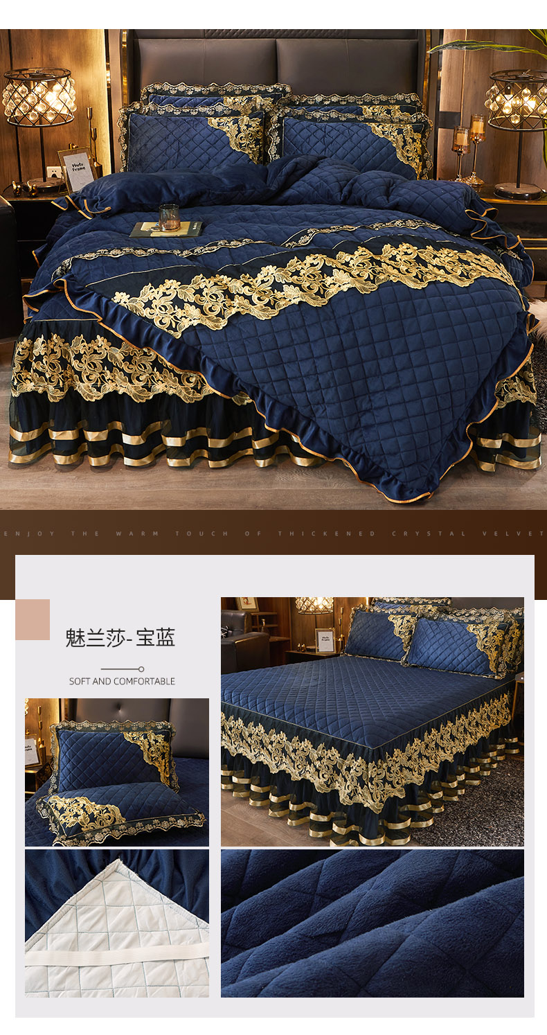 当前位置: 91家纺网 > 商品网购 > 床品套件 > 四件套 > 水晶绒四件套 > 恋尚2023新款魅兰莎水晶绒系列被套夹棉床裙四件套 宝蓝