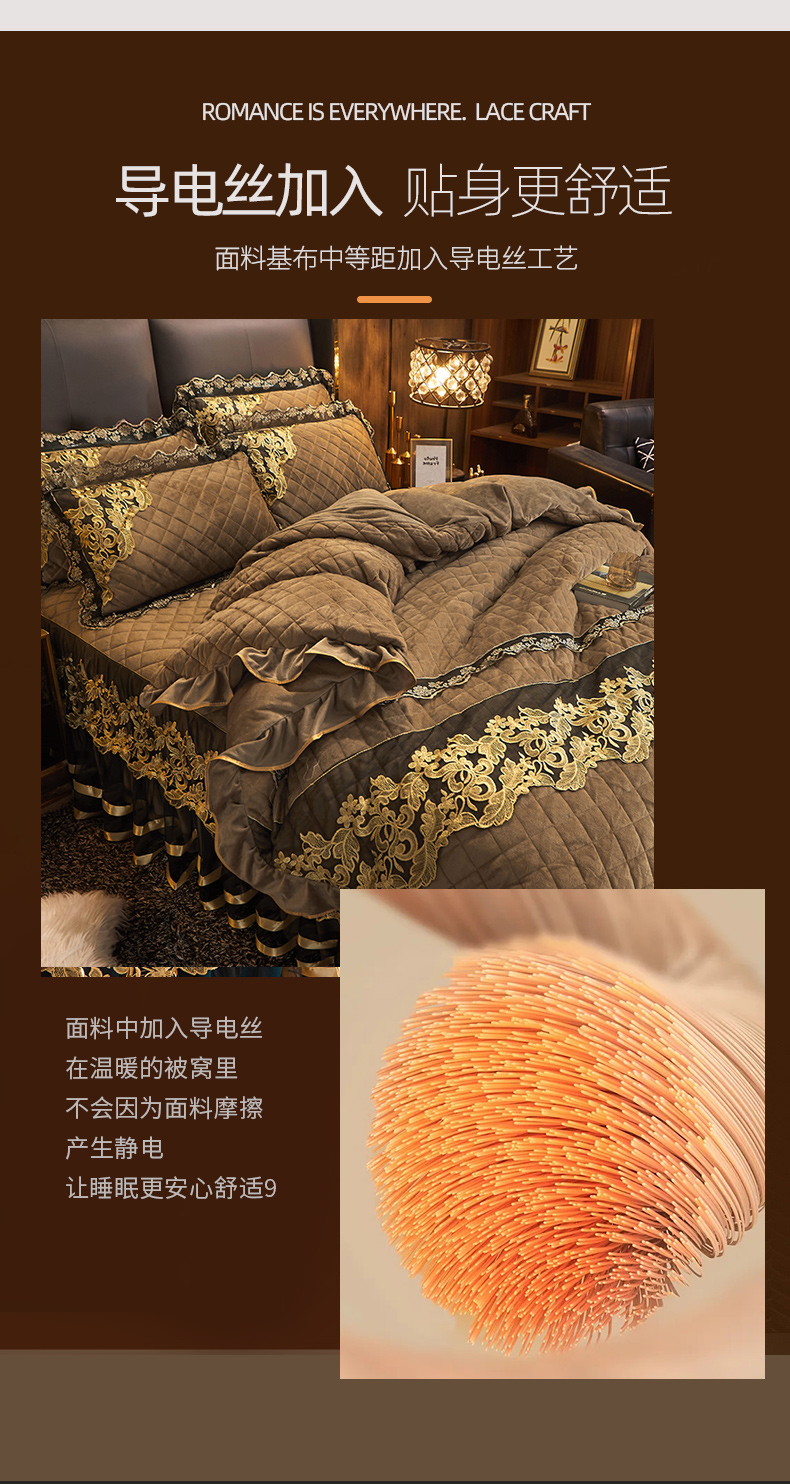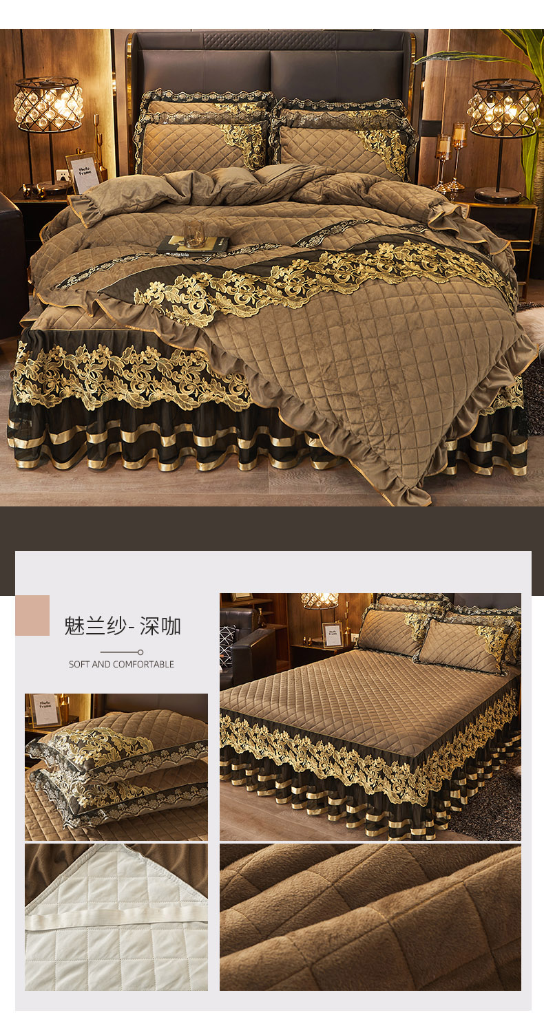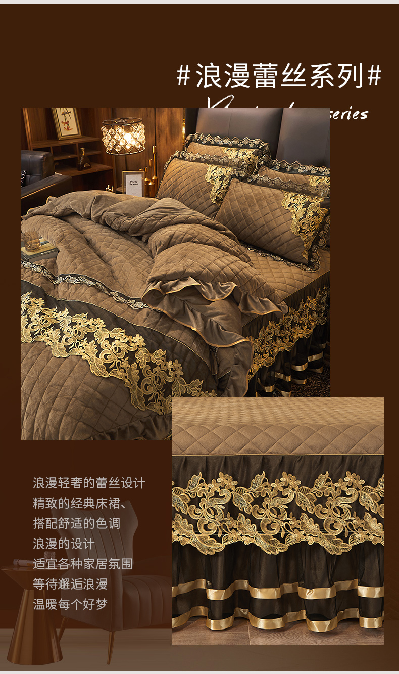 当前位置: 91家纺网 > 商品网购 > 床品套件 > 四件套 > 水晶绒四件套 > 恋尚2023新款魅兰莎水晶绒系列被套夹棉床裙四件套 深咖