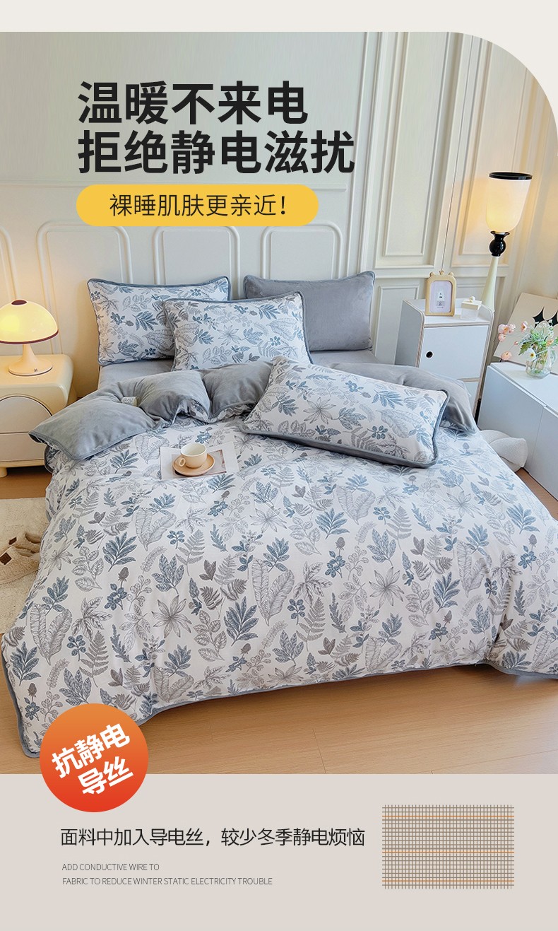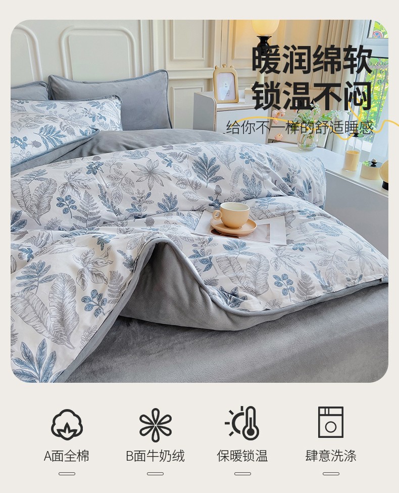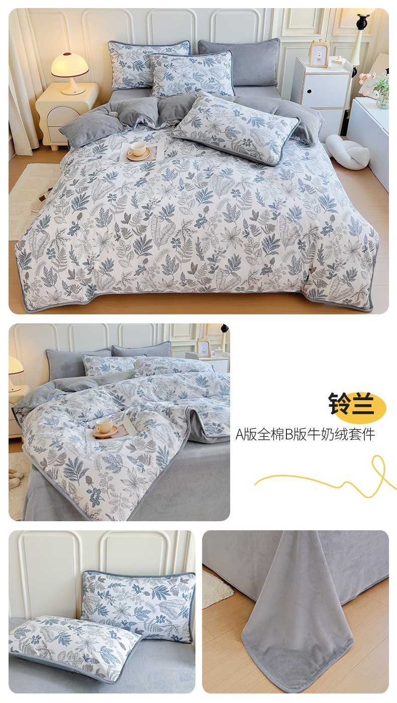 当前位置: 91家纺网 > 商品网购 > 床品套件 > 四件套 > 牛奶绒四件套 > 琪琪阁 2023新款A棉B绒棉加绒牛奶绒四件套单被套 铃兰