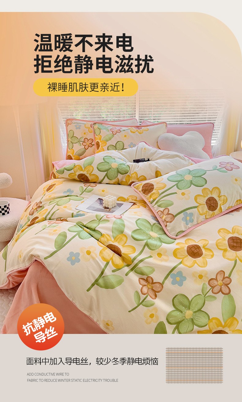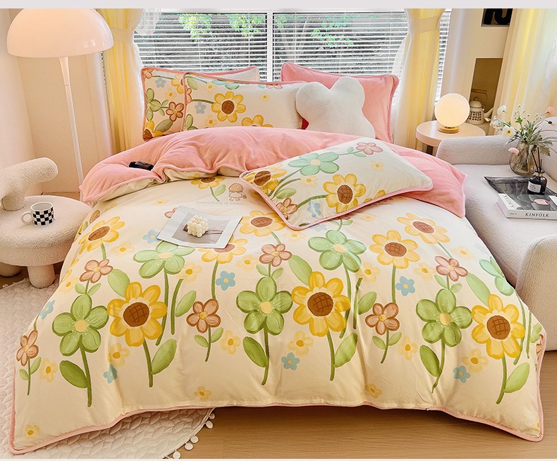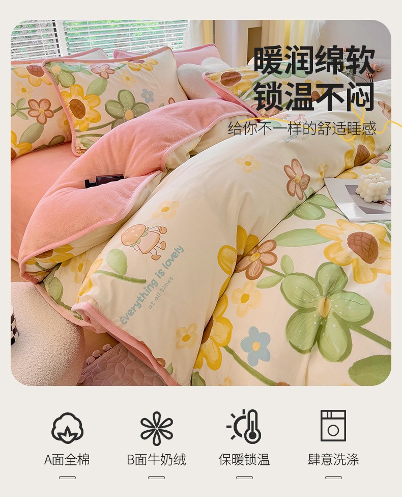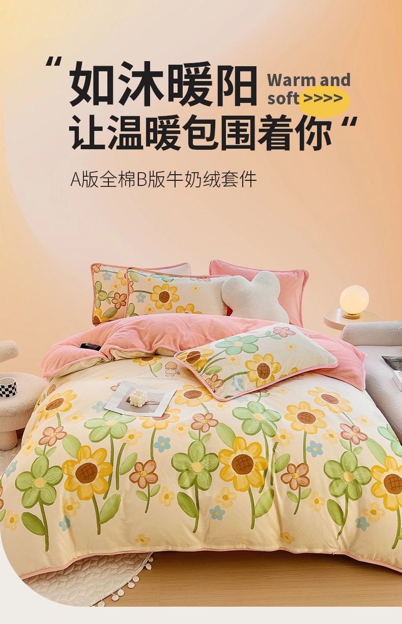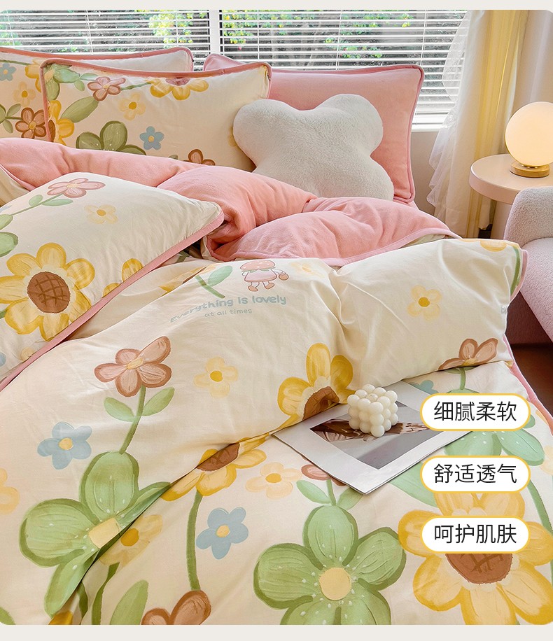 当前位置: 91家纺网 > 商品网购 > 床品套件 > 四件套 > 牛奶绒四件套 > 琪琪阁 2023新款A棉B绒棉加绒牛奶绒四件套单被套 向阳花开