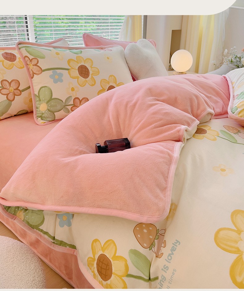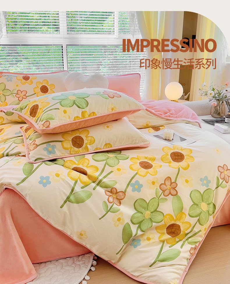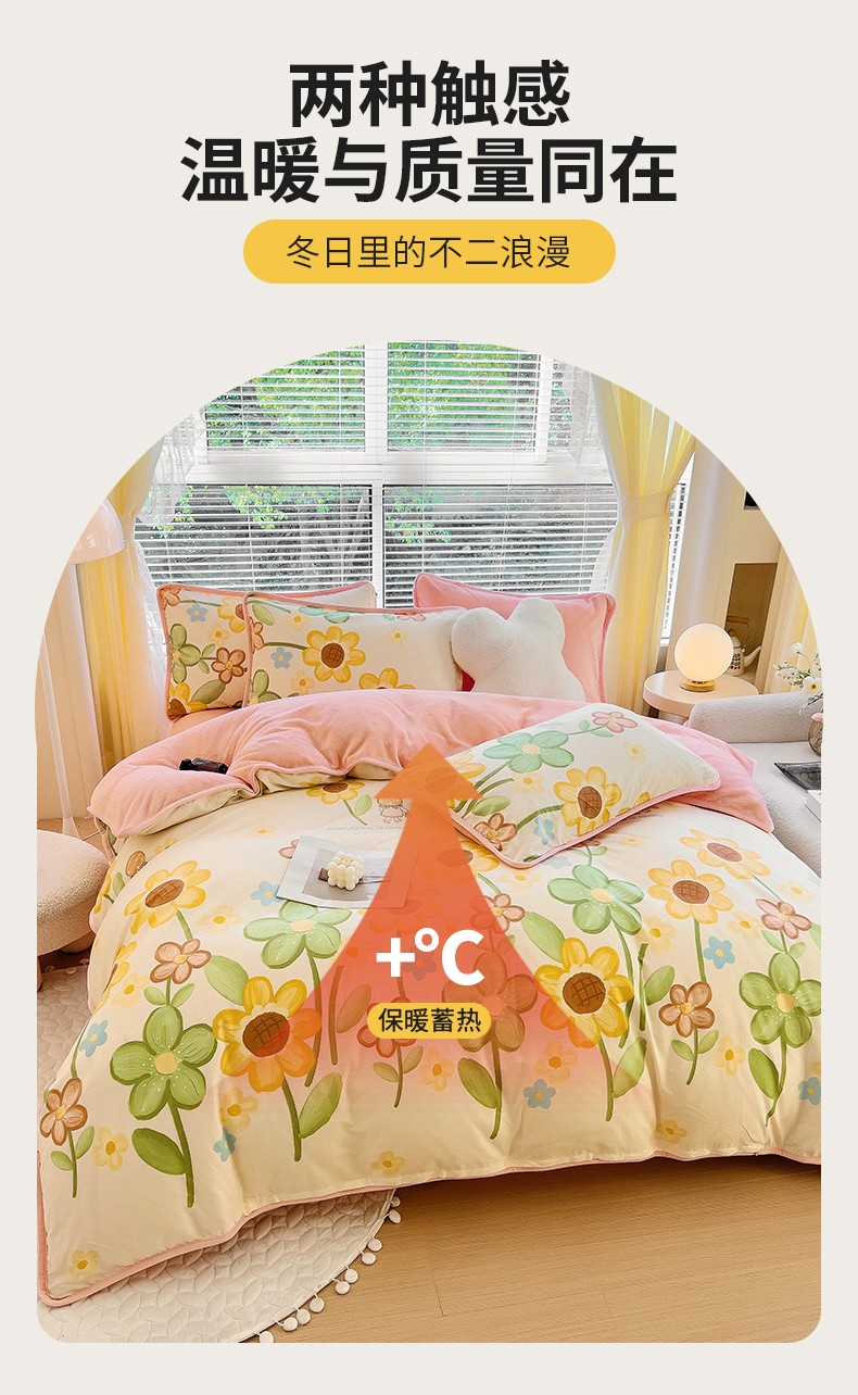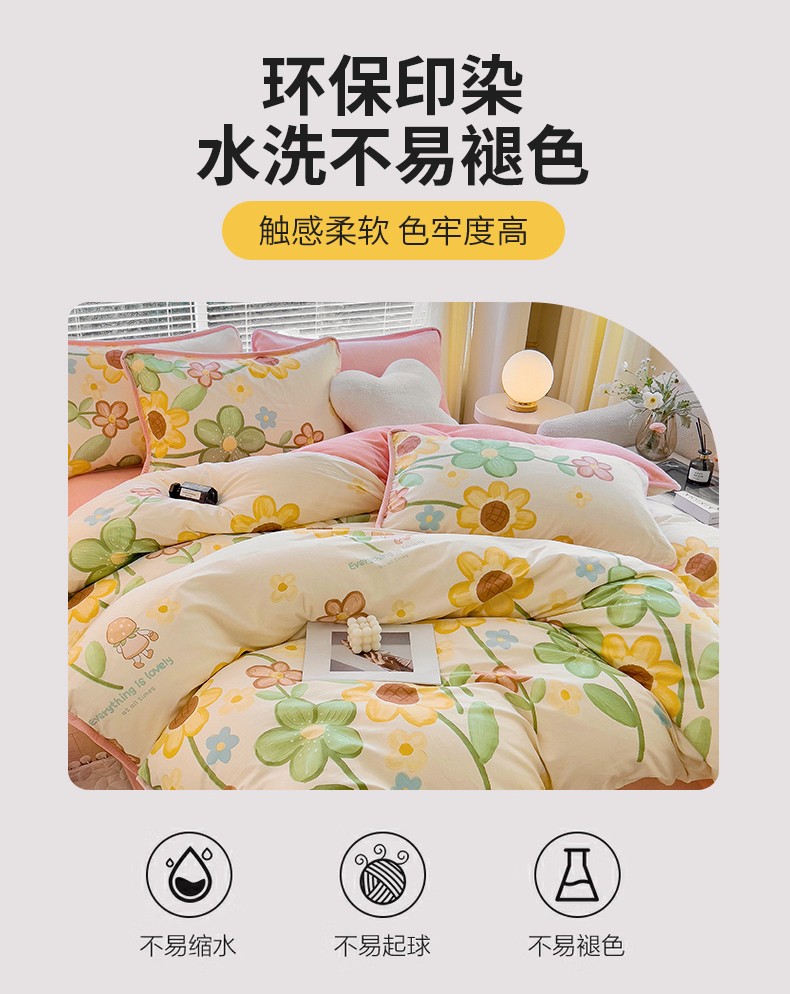 当前位置: 91家纺网 > 商品网购 > 床品套件 > 四件套 > 牛奶绒四件套 > 琪琪阁 2023新款A棉B绒棉加绒牛奶绒四件套单被套 向阳花开