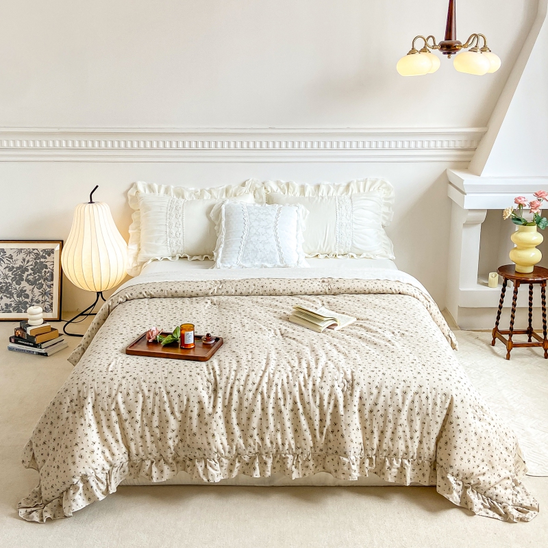 (总)上喜 2026新款多功能夏被床盖四件套浪漫生活,浪漫生活-白色,浪漫生活-米色