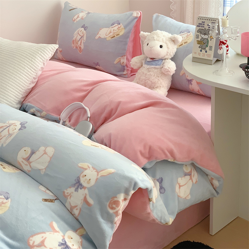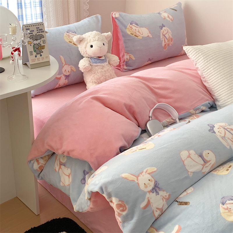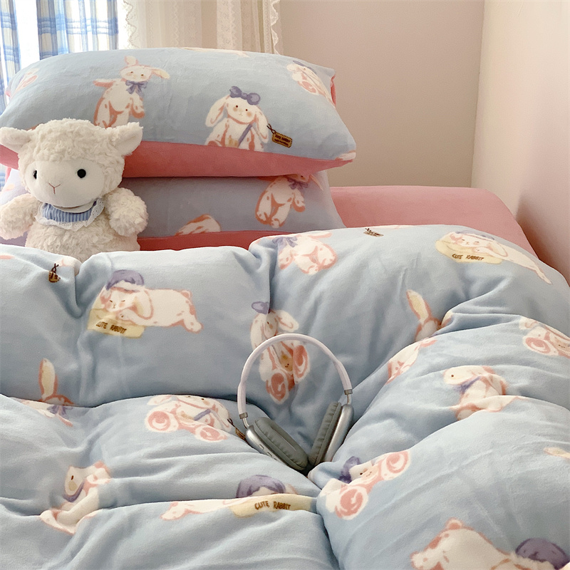 美乐迪家纺 2023秋冬新款保暖牛奶绒四件套 菲比兔