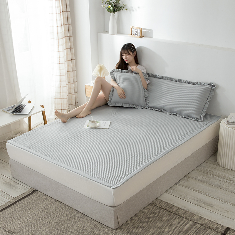 (总)紫碧螺家纺 2025新款冰感针织空调垫凉席席子,浅灰色,淡蓝色,嫩绿色,咖色