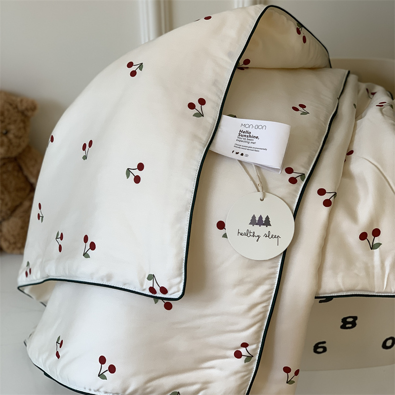 (总)汇庭 2025新款秋冬胖胖樱桃春秋被+樱桃菲菲床盖三件套,组合图下单仅供展示不可下单,粉色,绿色,米色
