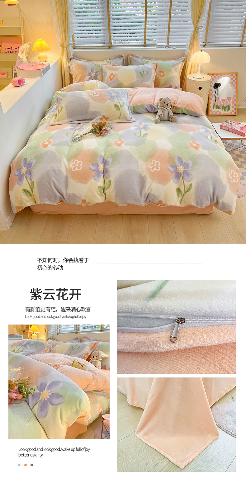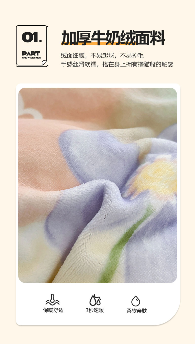 商品名称:康纳利 2023新款印花牛奶绒单被套 紫云花开