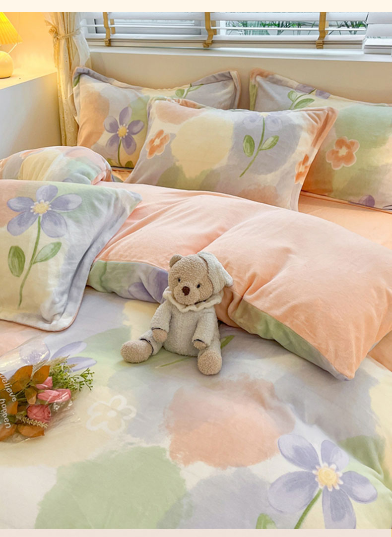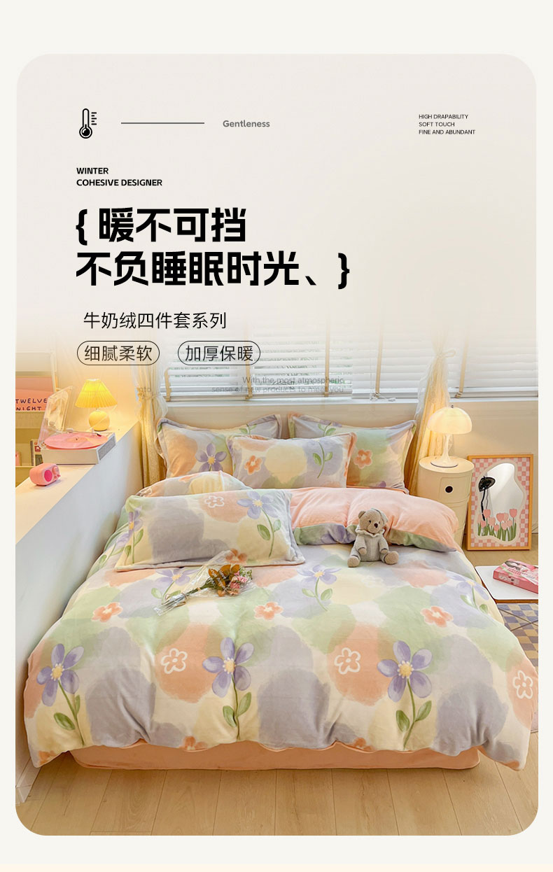 (总)康纳利 2025新款亲舒适加厚牛奶绒花边四件套,KT花园,布丁,粉萌兔,花眠语,幻蝶-白,幻蝶-粉,礼物小咪,凝夜紫