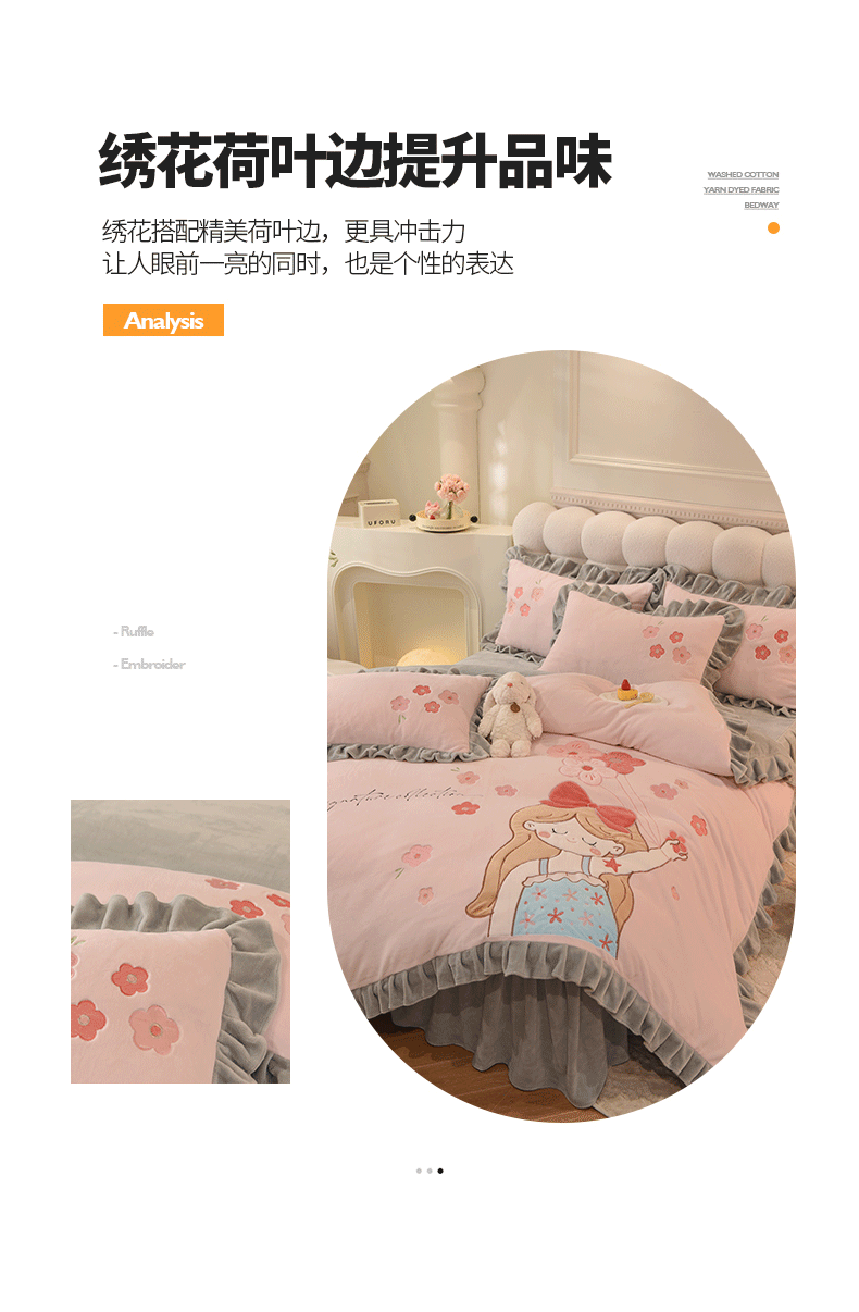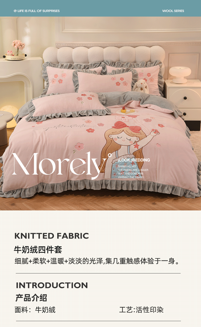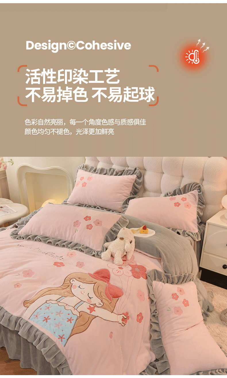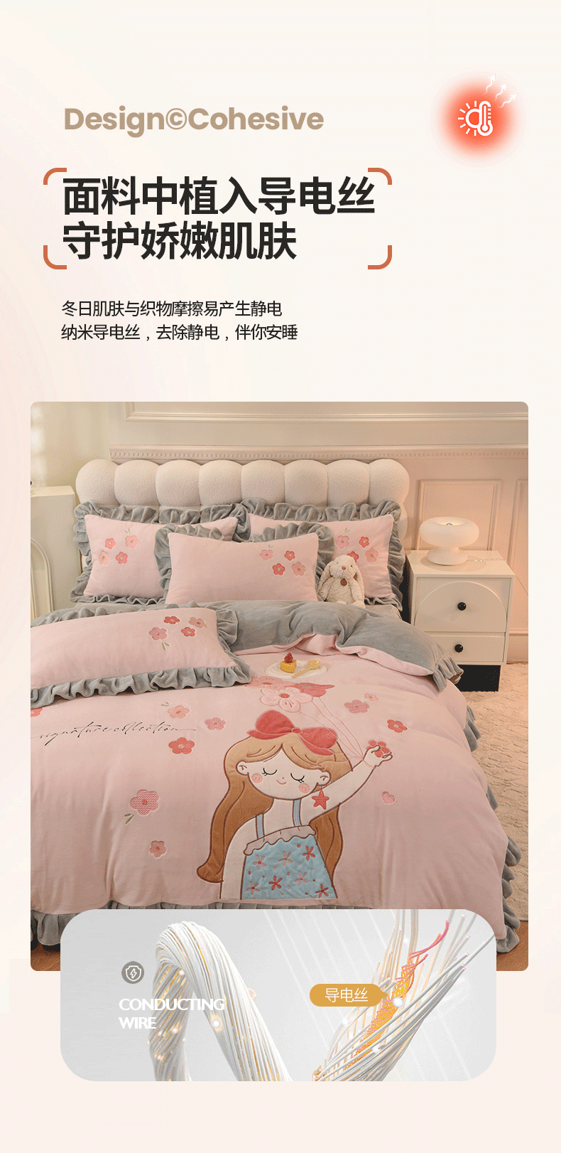 (总)丝印良品 2023新款高档贴布绣甜心公主牛奶绒四件套