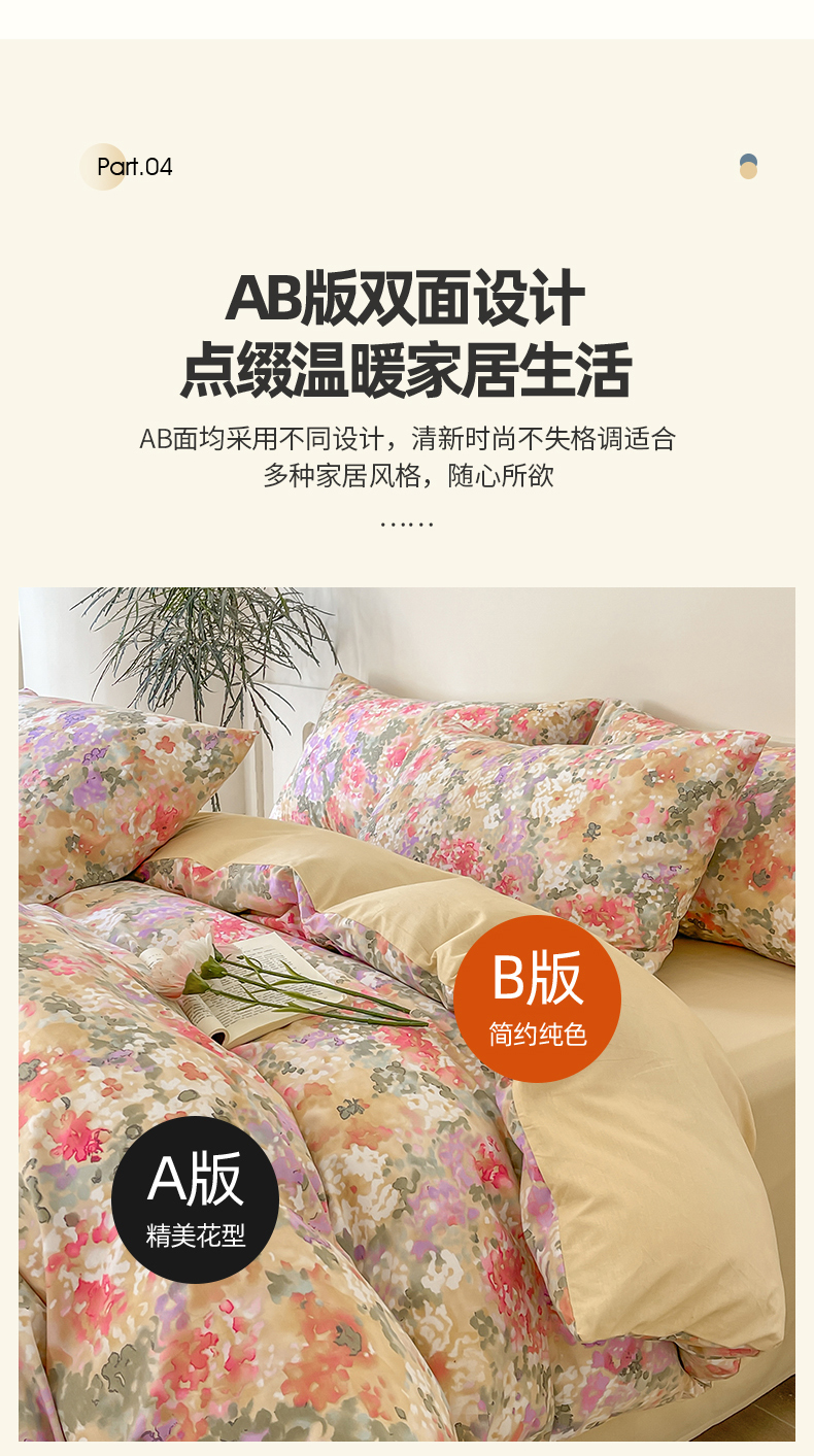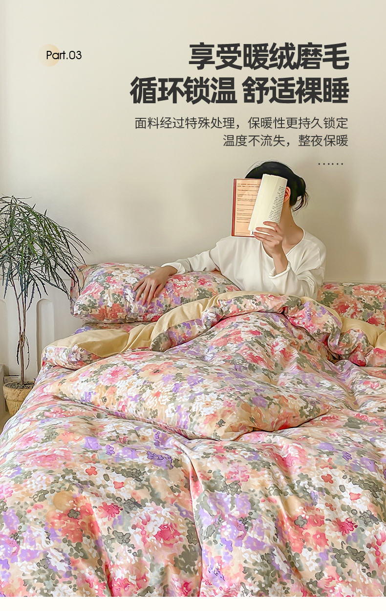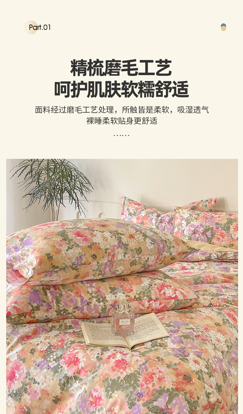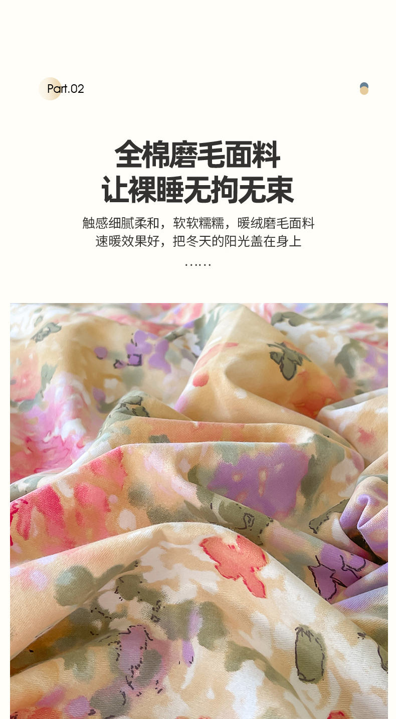 • 91家纺网 家纺一手货源 找家纺 棉乐町家居 2025新款全棉长绒棉磨毛四件套 莫奈花园