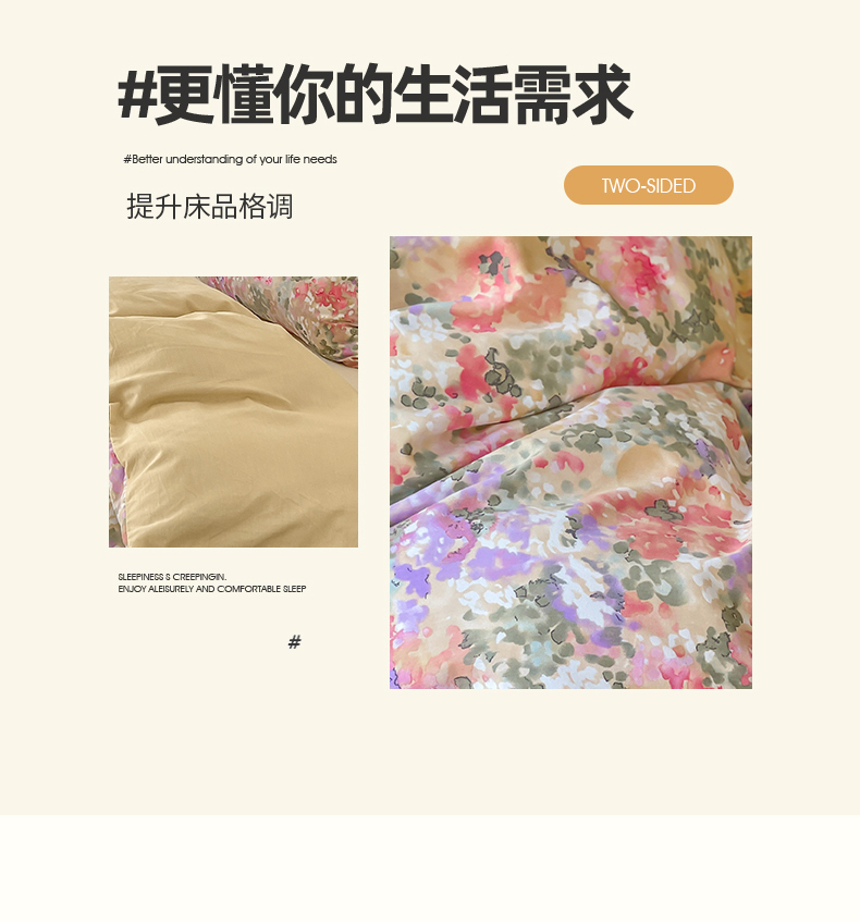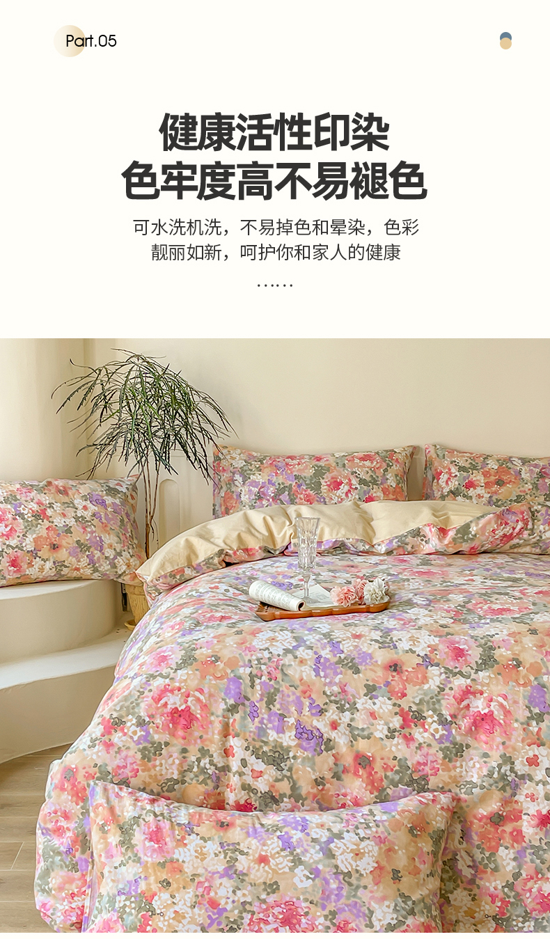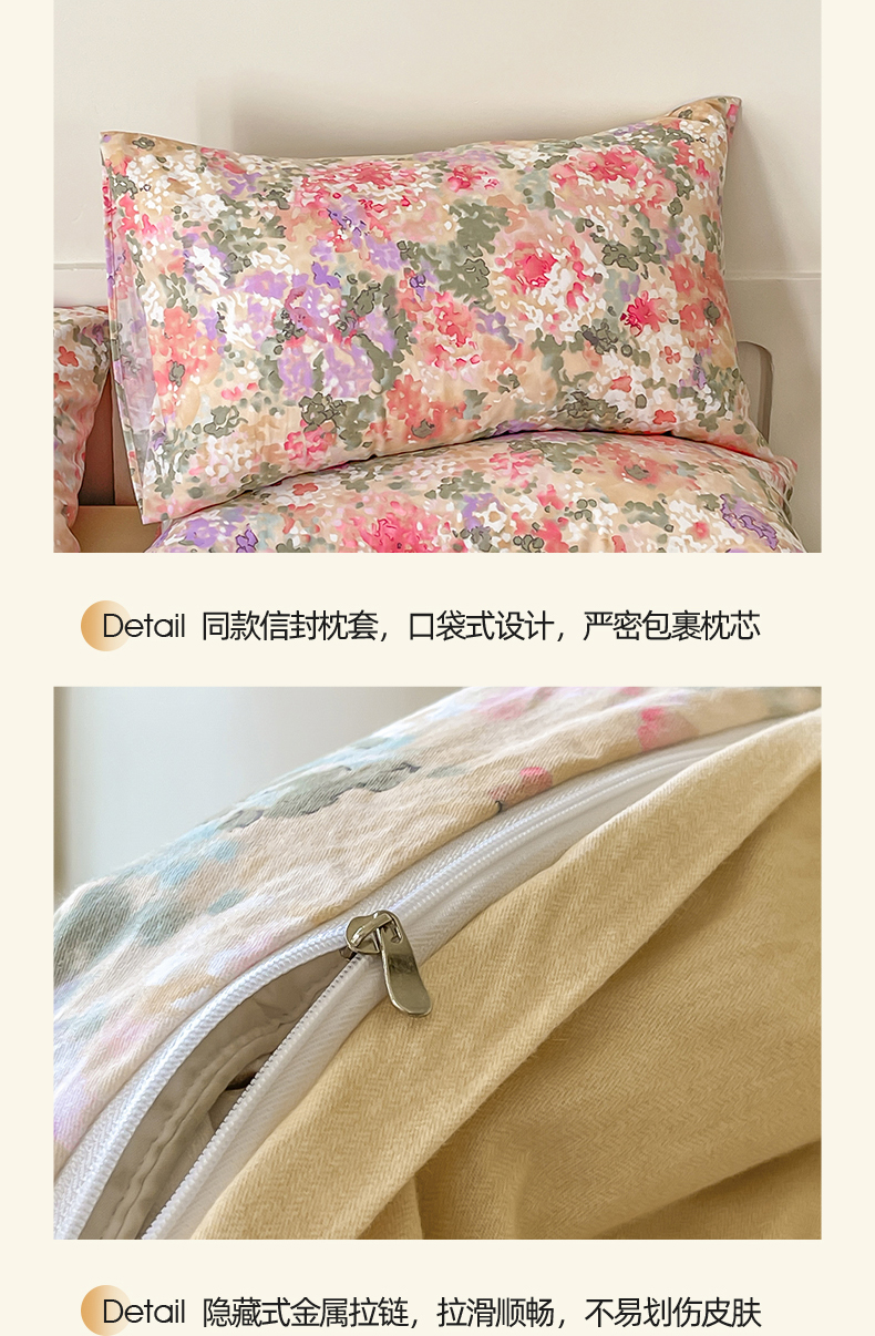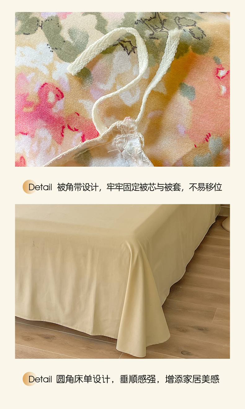 • 91家纺网 家纺一手货源 找家纺 棉乐町家居 2025新款全棉长绒棉磨毛四件套 莫奈花园
