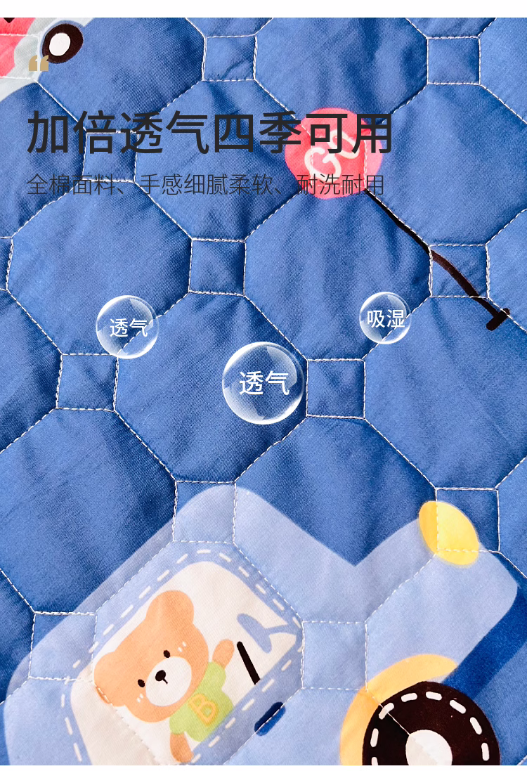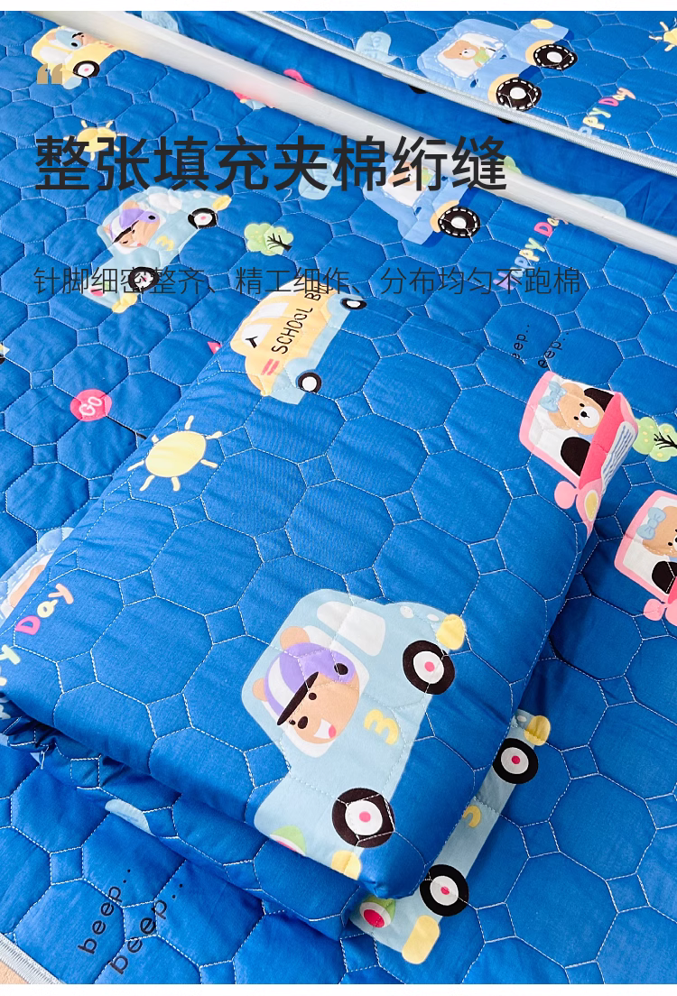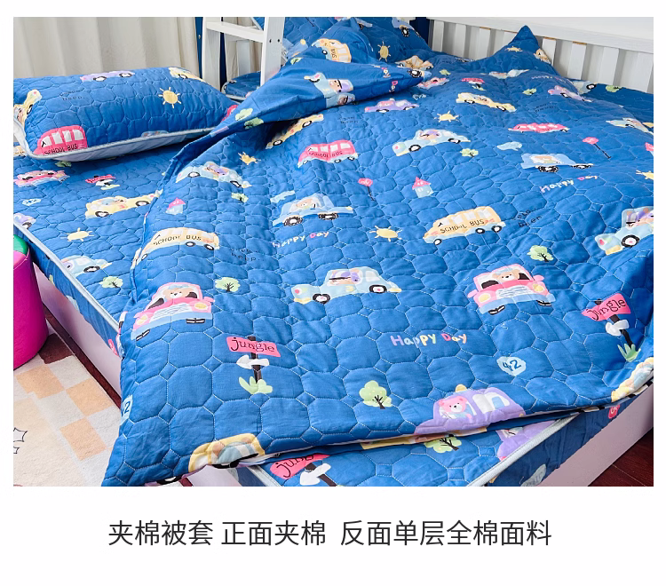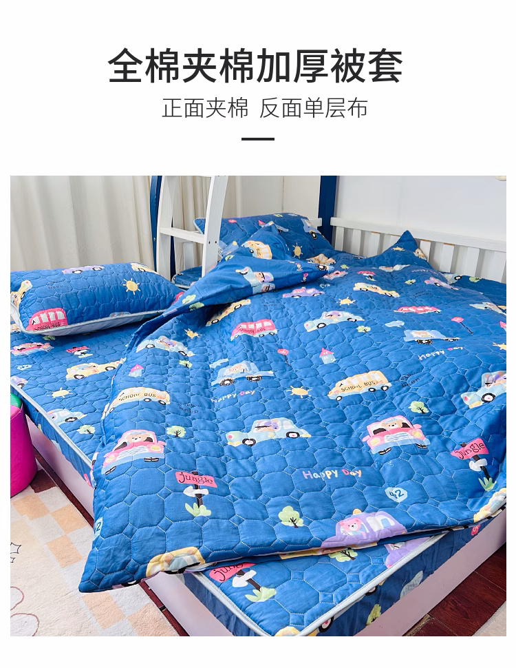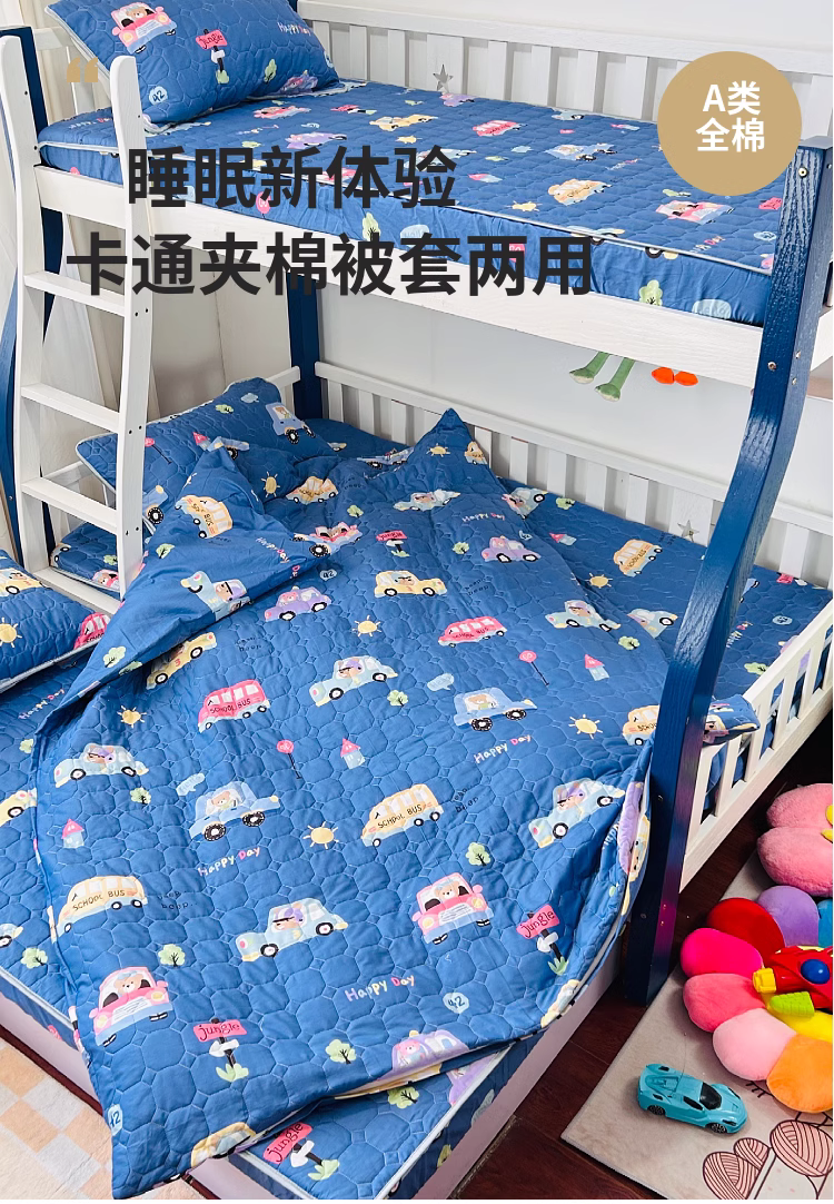 小虾米 2023新款全棉卡通上下床夹棉系列被套 宝宝巴士蓝