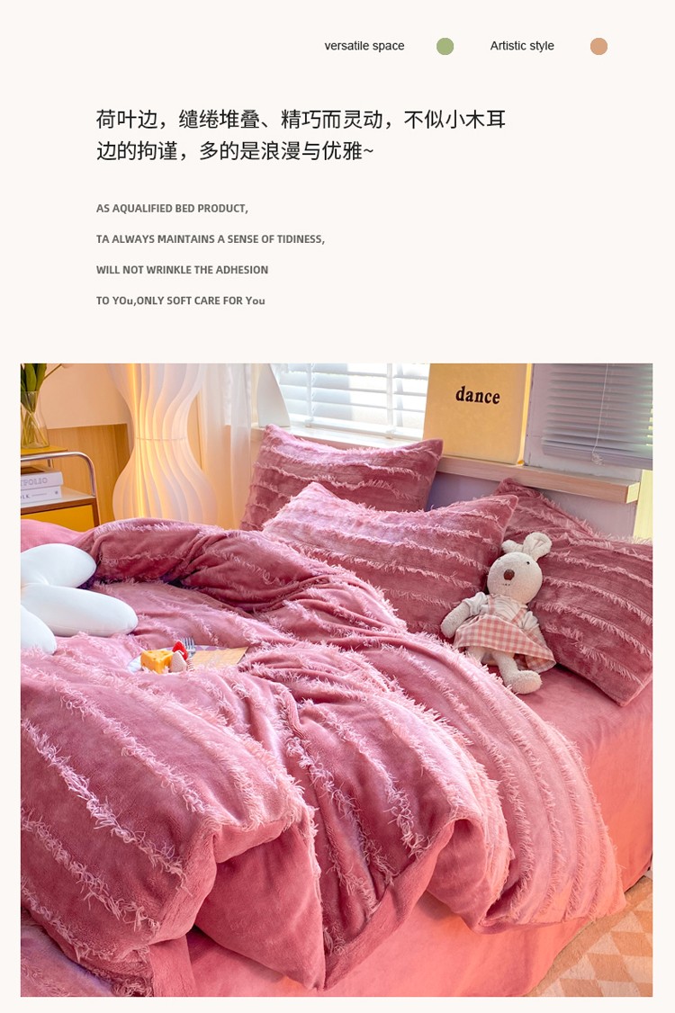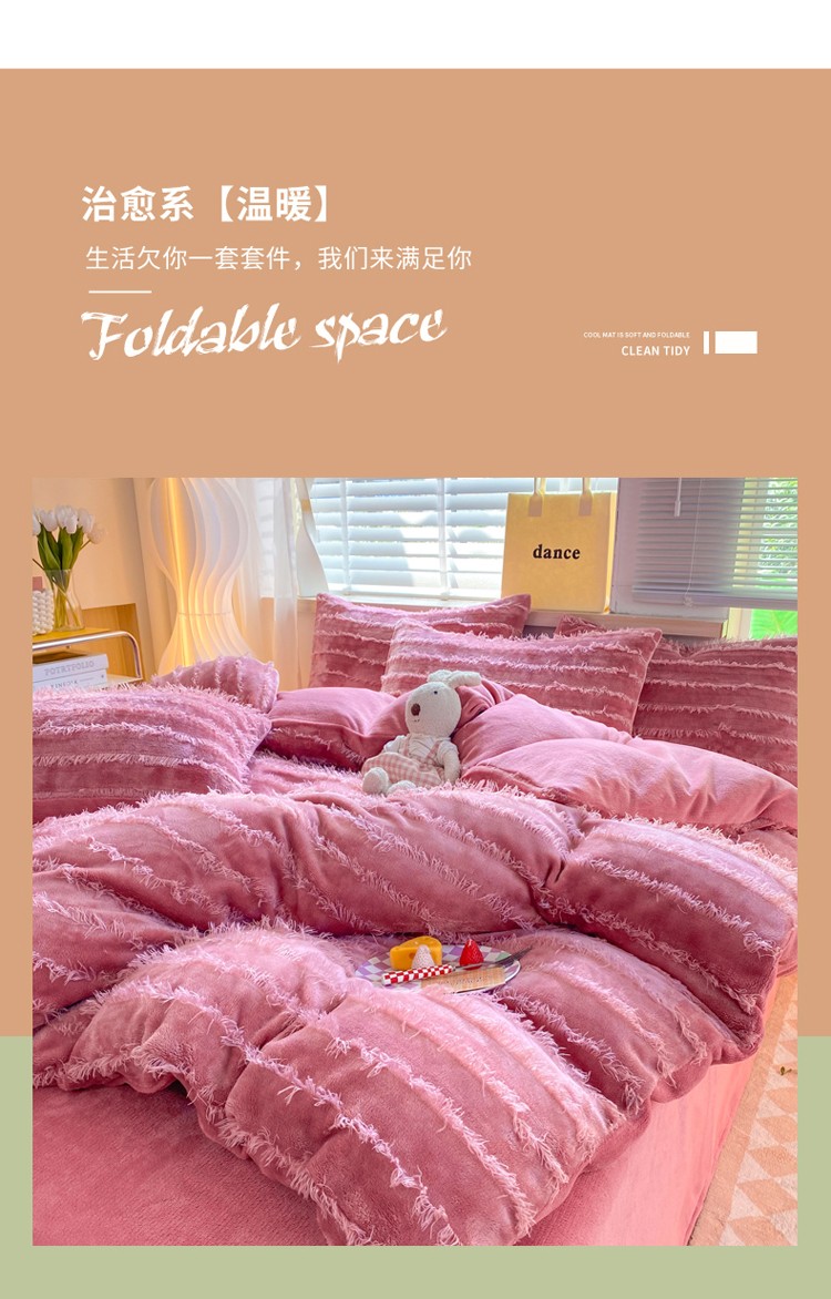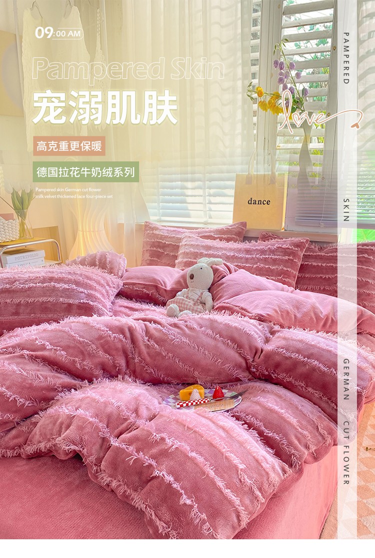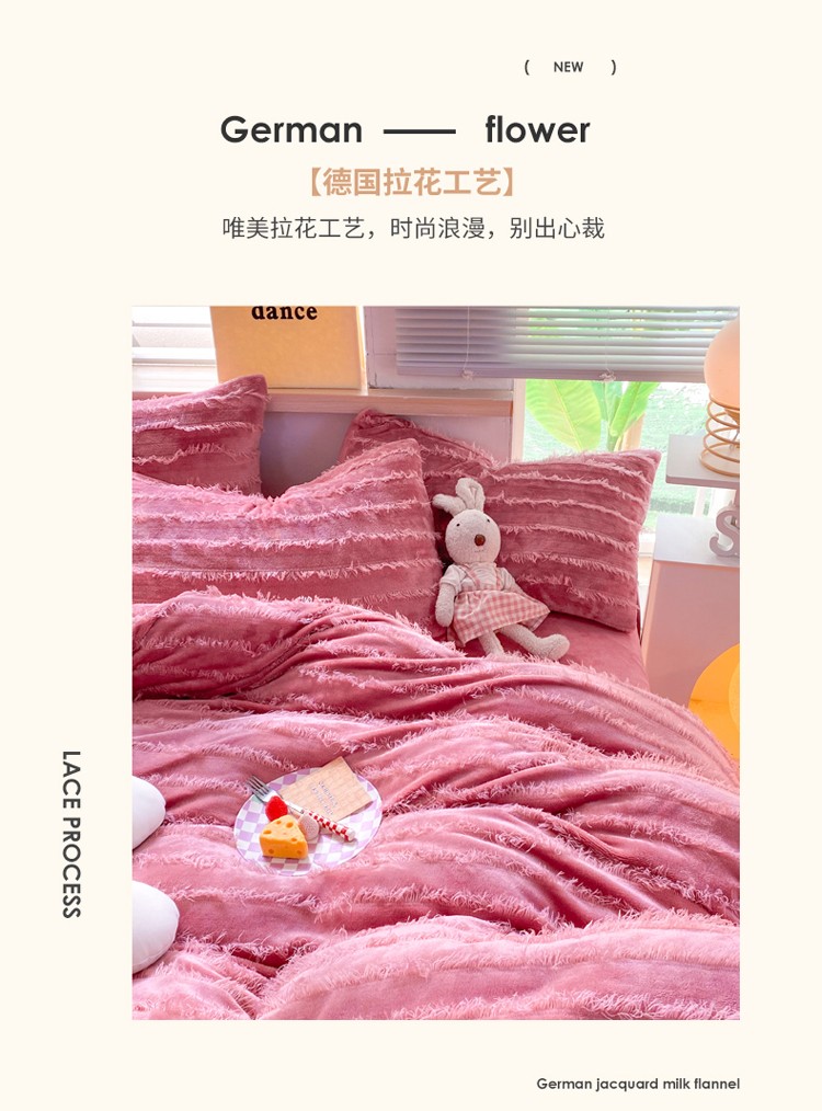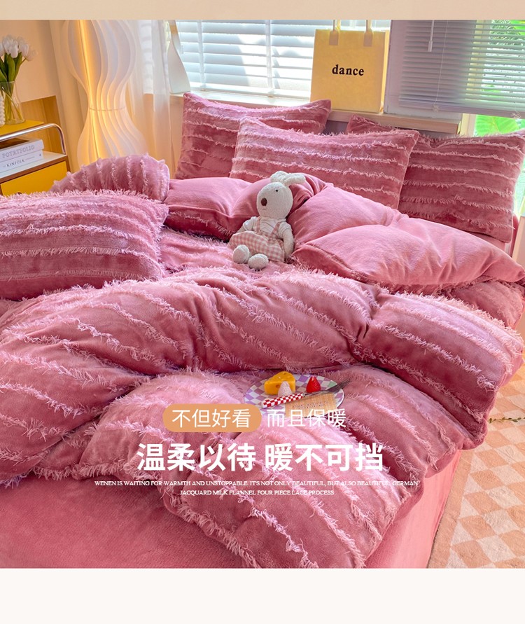 商品名称:欧冠 2023秋冬新款牛奶绒提花简约款牛奶绒四件套 豆沙色