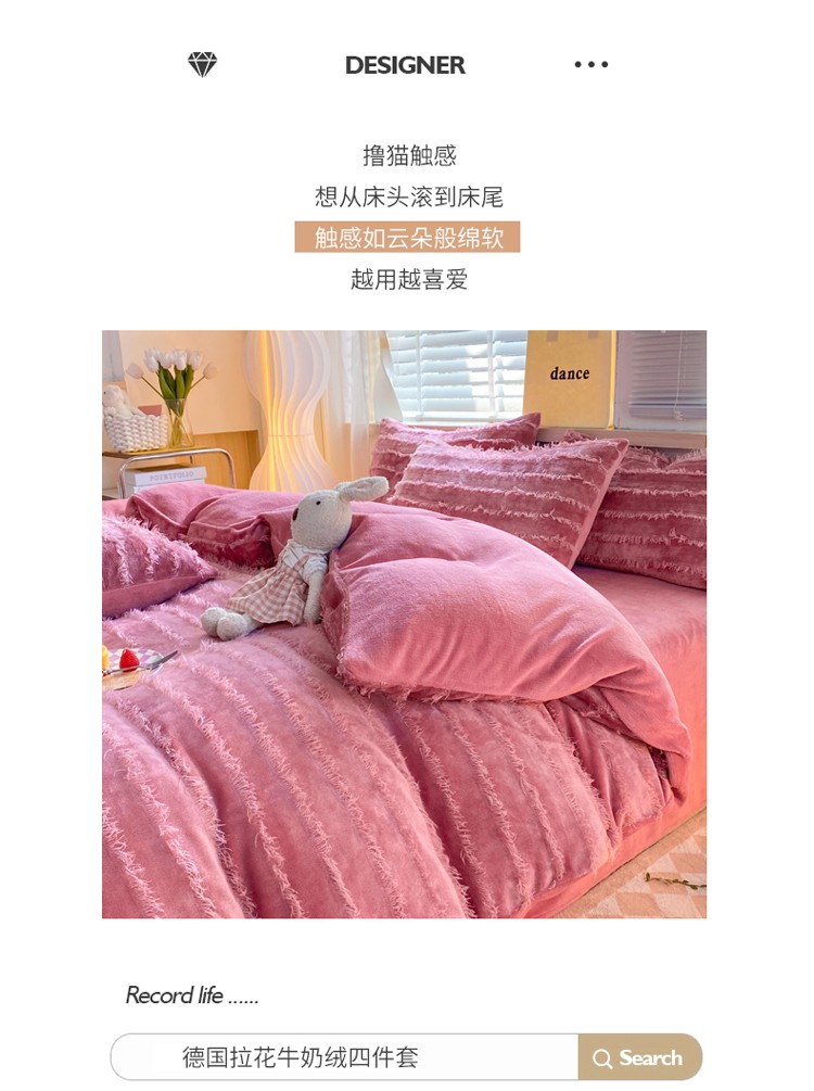 (总)欧冠家纺 2025新款加厚兔绒提花牛奶绒四件套系列,礼物-豆沙,爱心-粉,爱心-梧桐灰,礼物-灰,礼物-卡其,礼物-紫,玫瑰-豆沙,玫瑰-卡其,樱桃-粉白,樱桃-紫