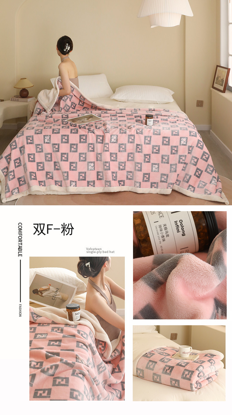 商品名称:麻依 2023新款欧棉绒双层520克加厚毛毯牛奶绒毯子 双F-粉