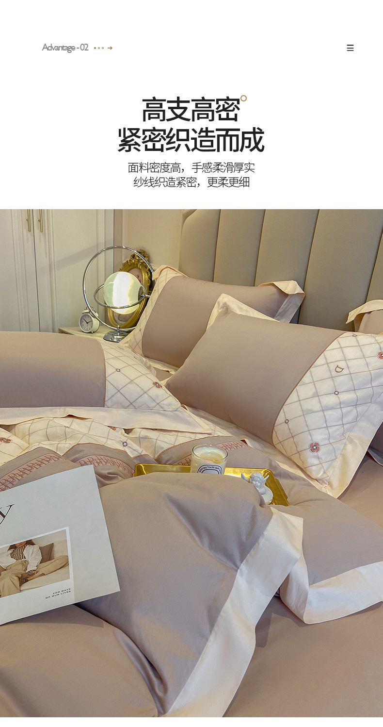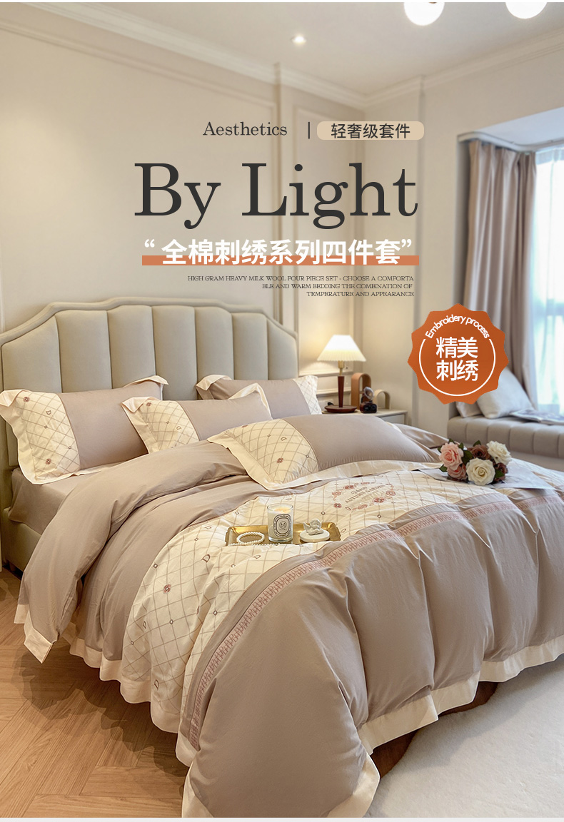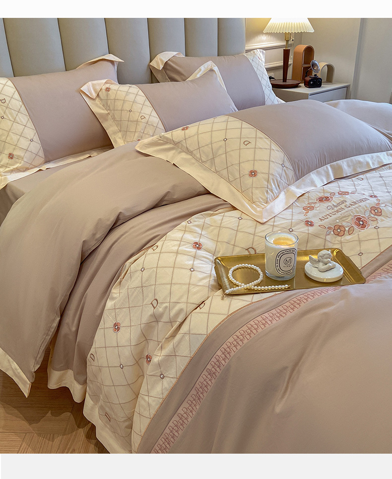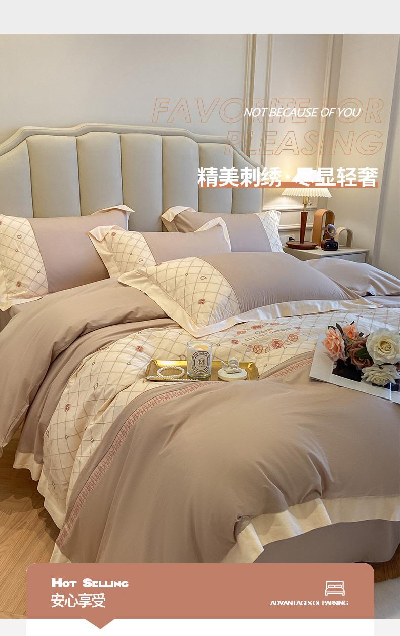 丝印良品 2023秋冬保暖60S全棉刺绣拼接菲曼系列四件套 菲曼-奶咖色