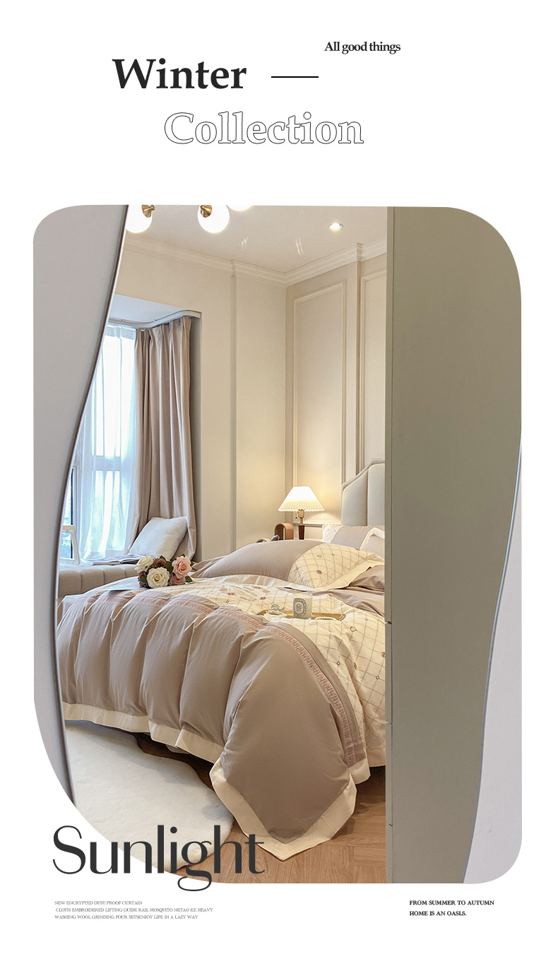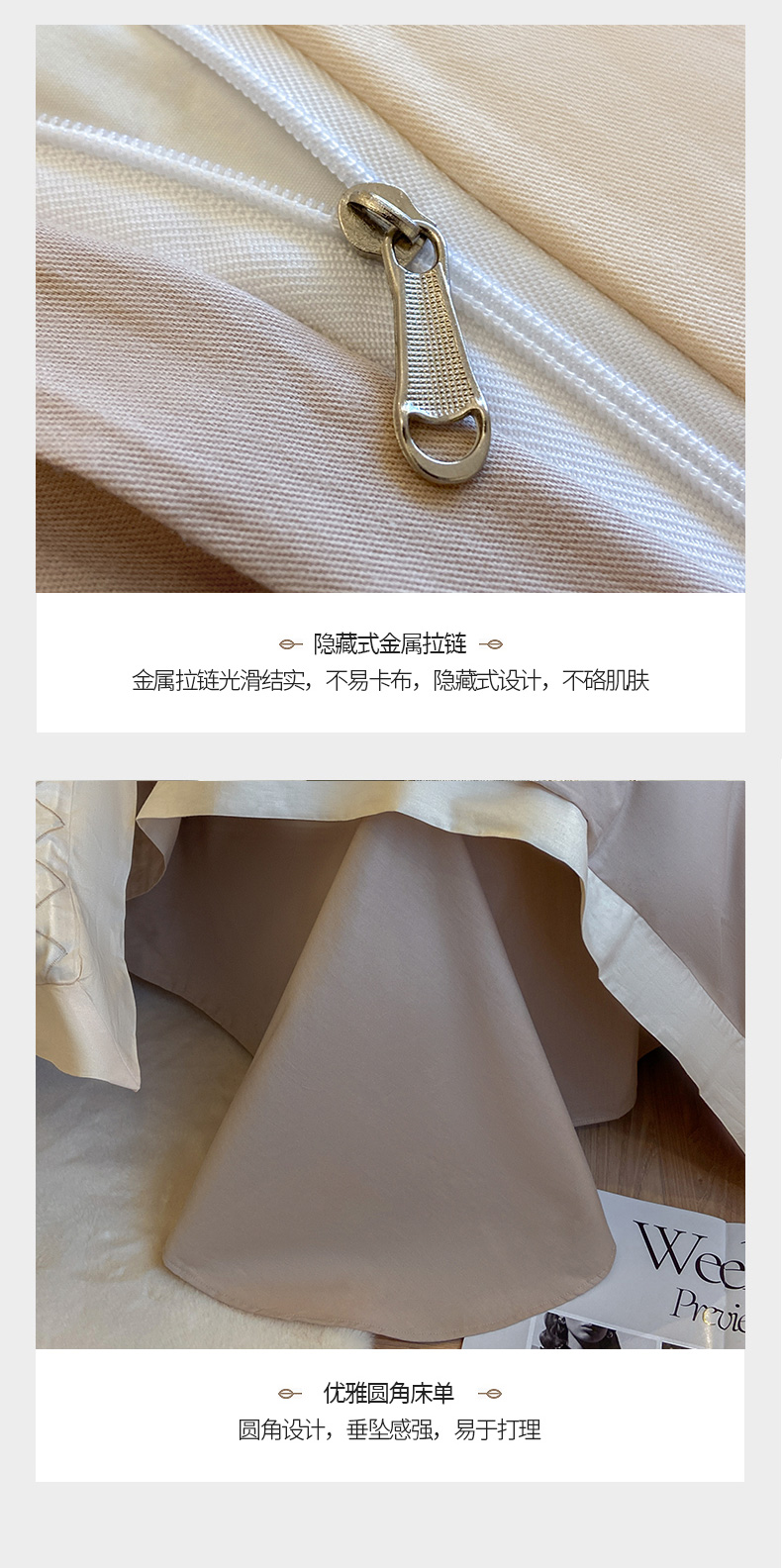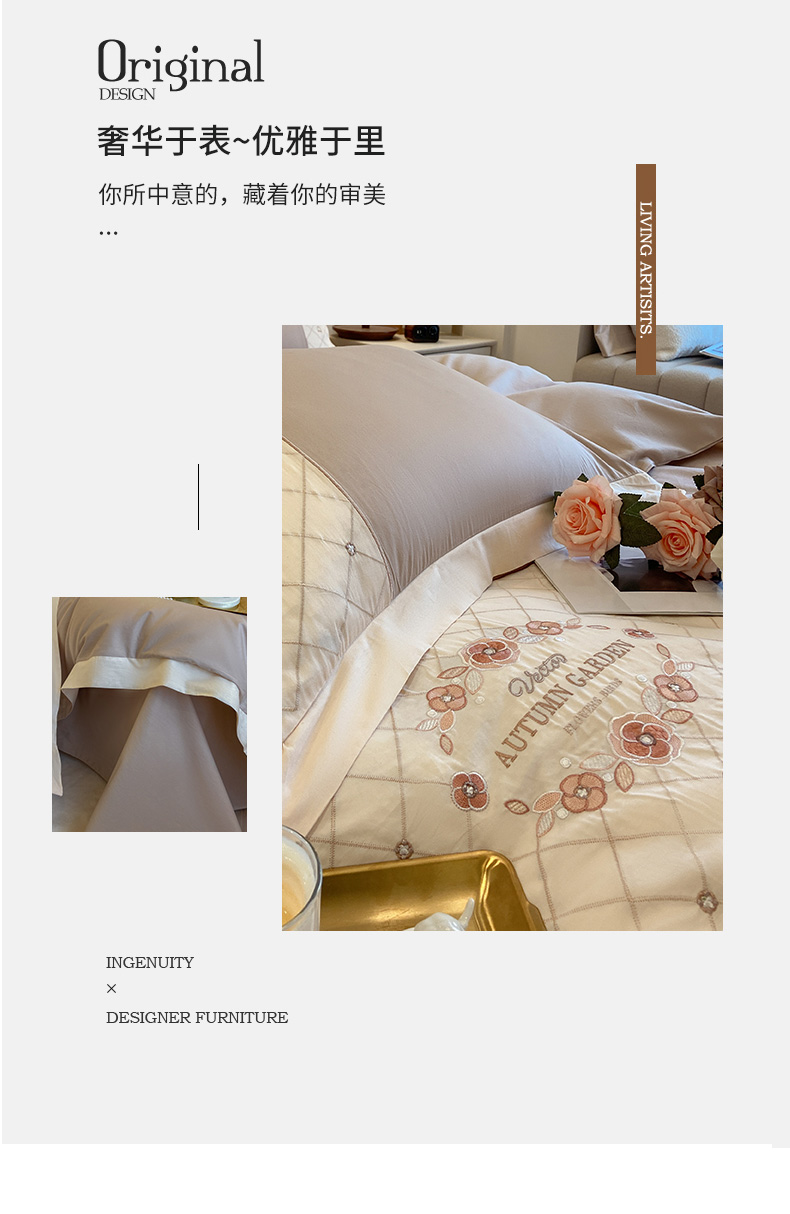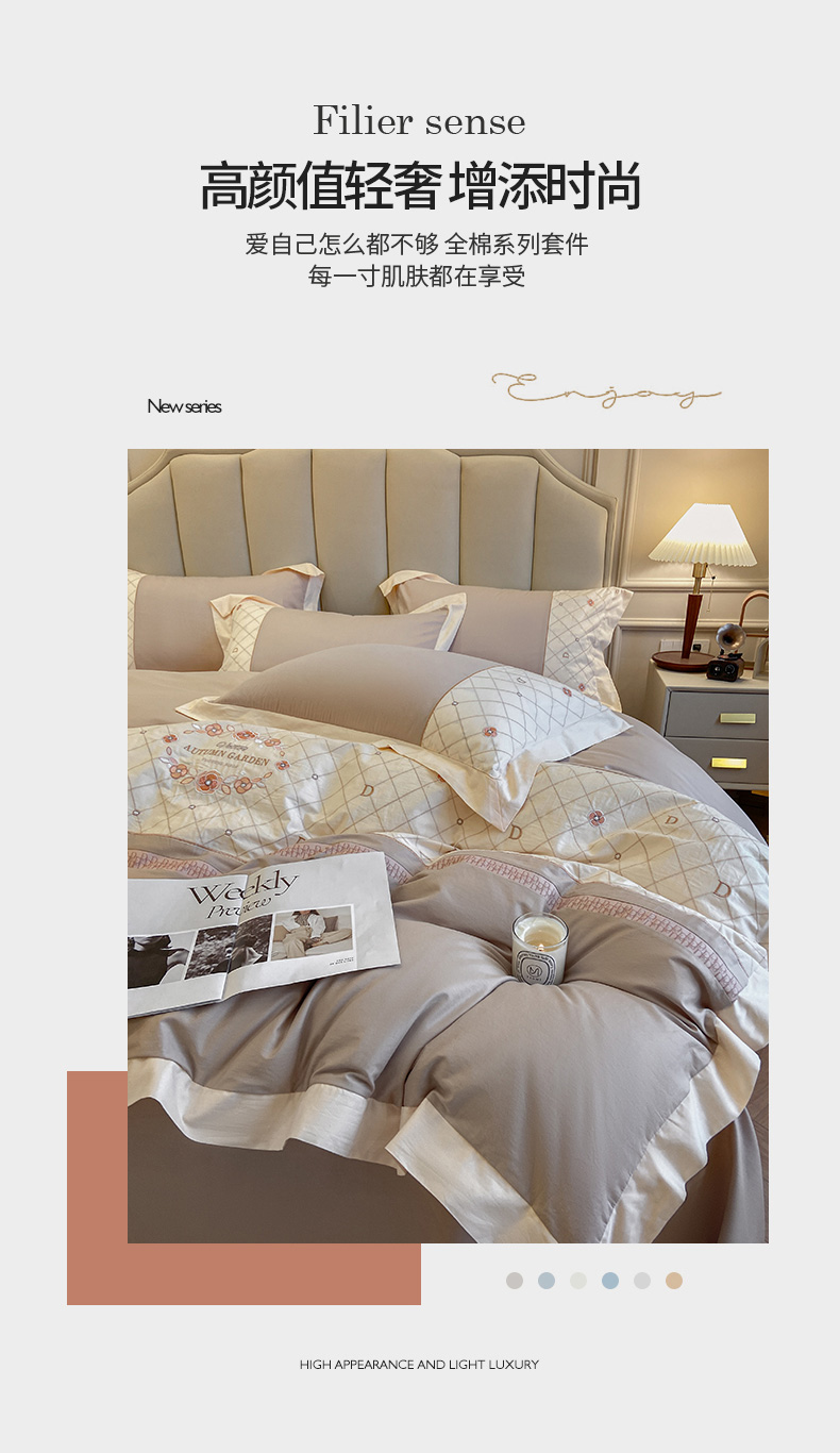 丝印良品 2023秋冬保暖60S全棉刺绣拼接菲曼系列四件套 菲曼-奶咖色